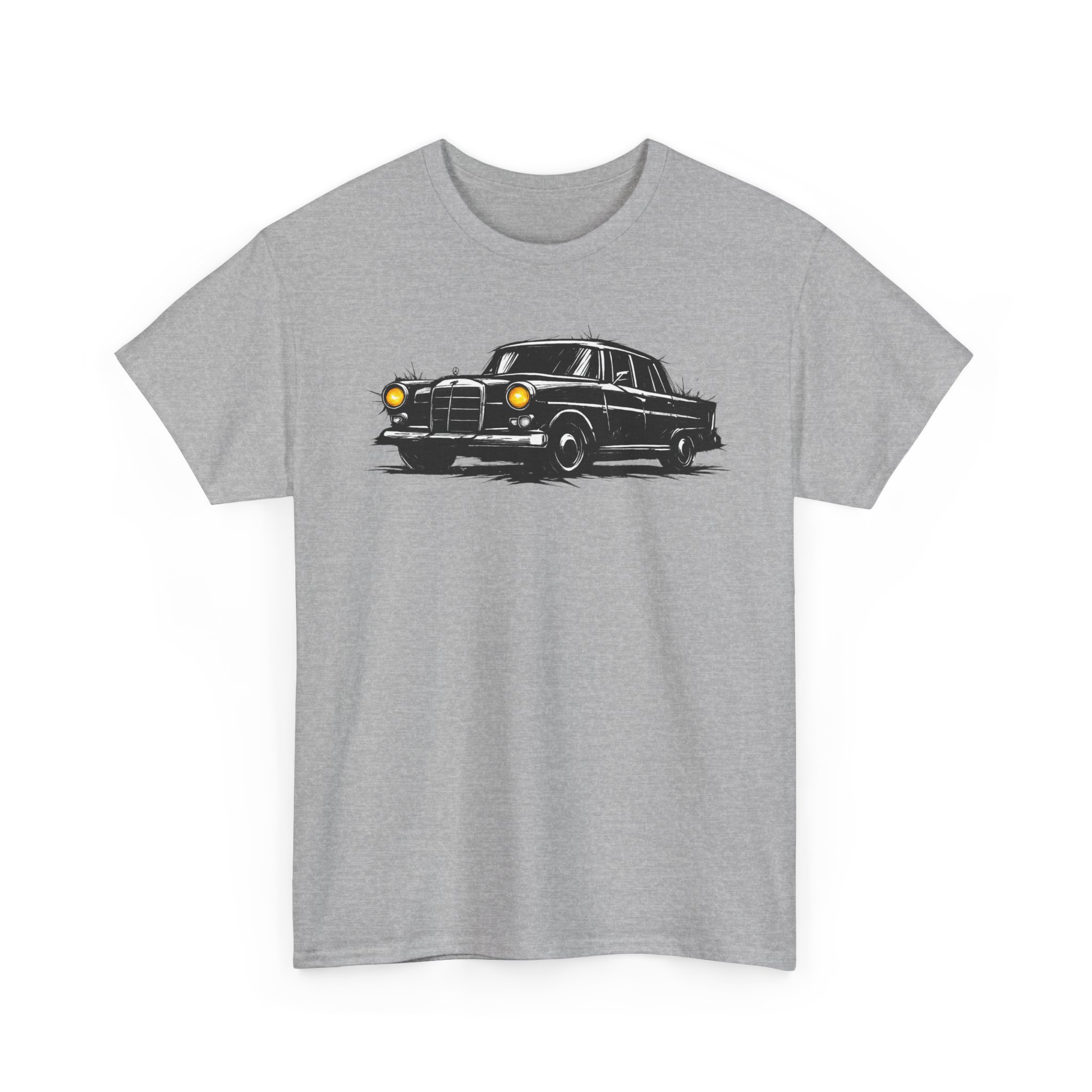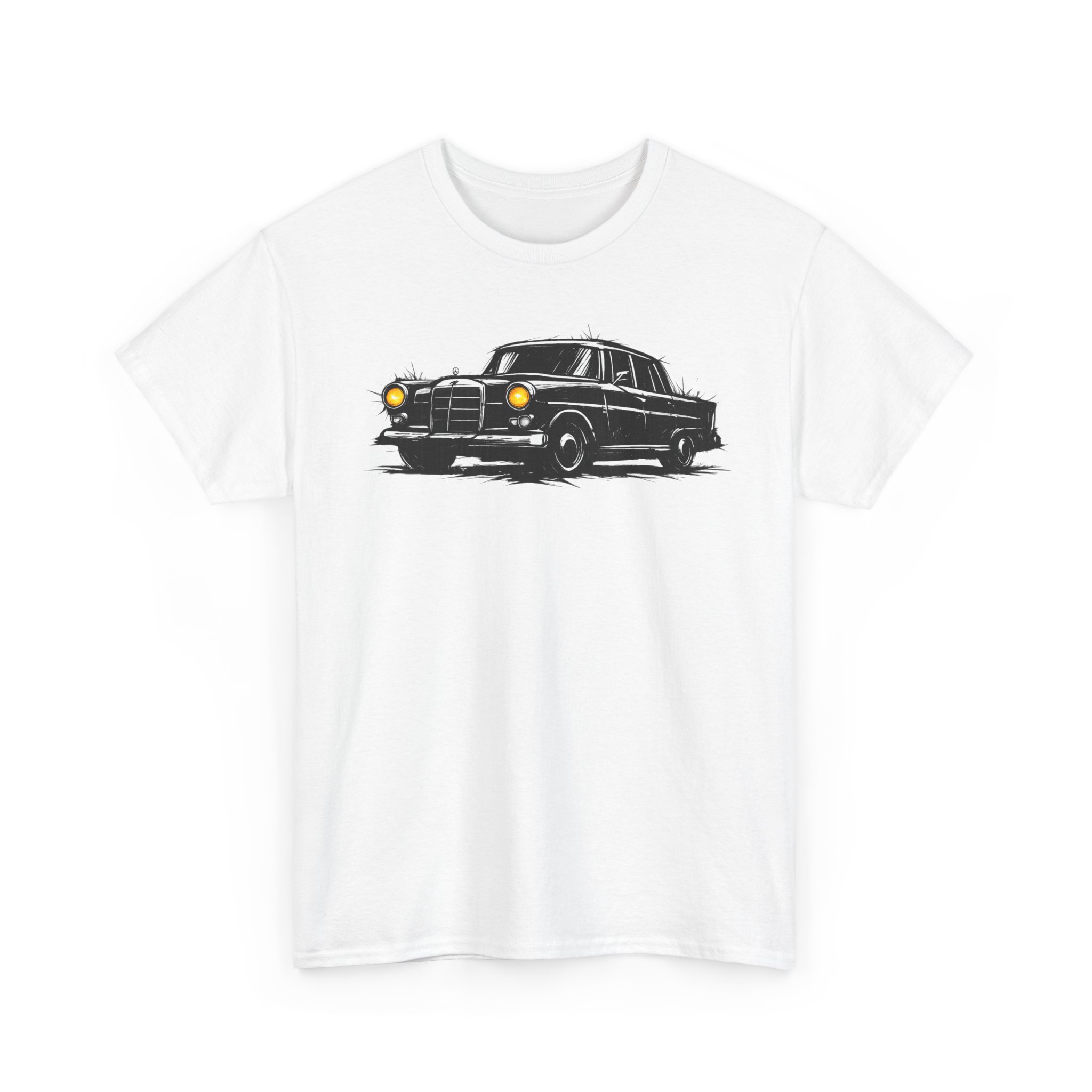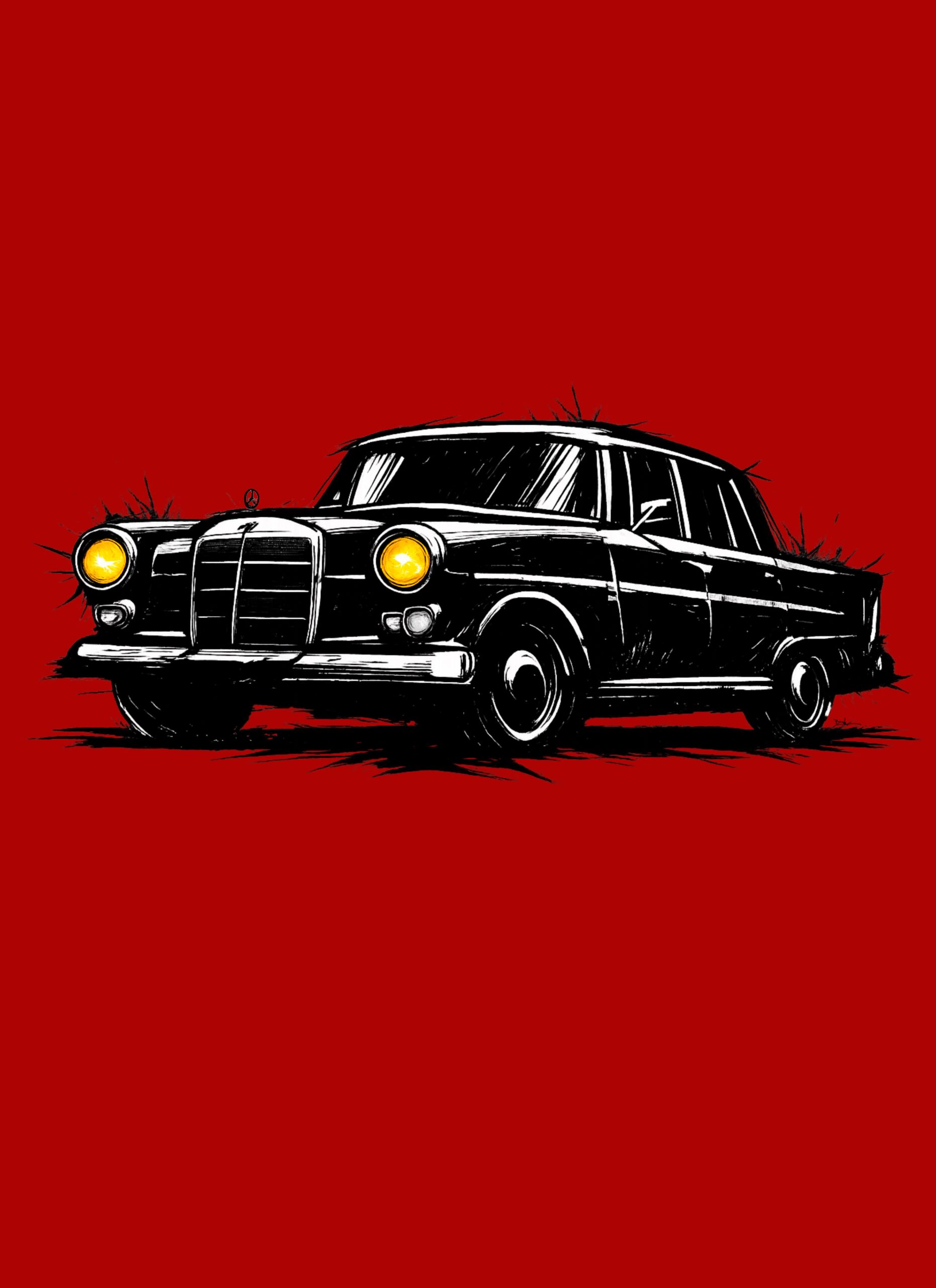 T-Shirt, Mercedes Heckflosse W110, Kritzel-Kratzel-Auto, großer feiner Druck