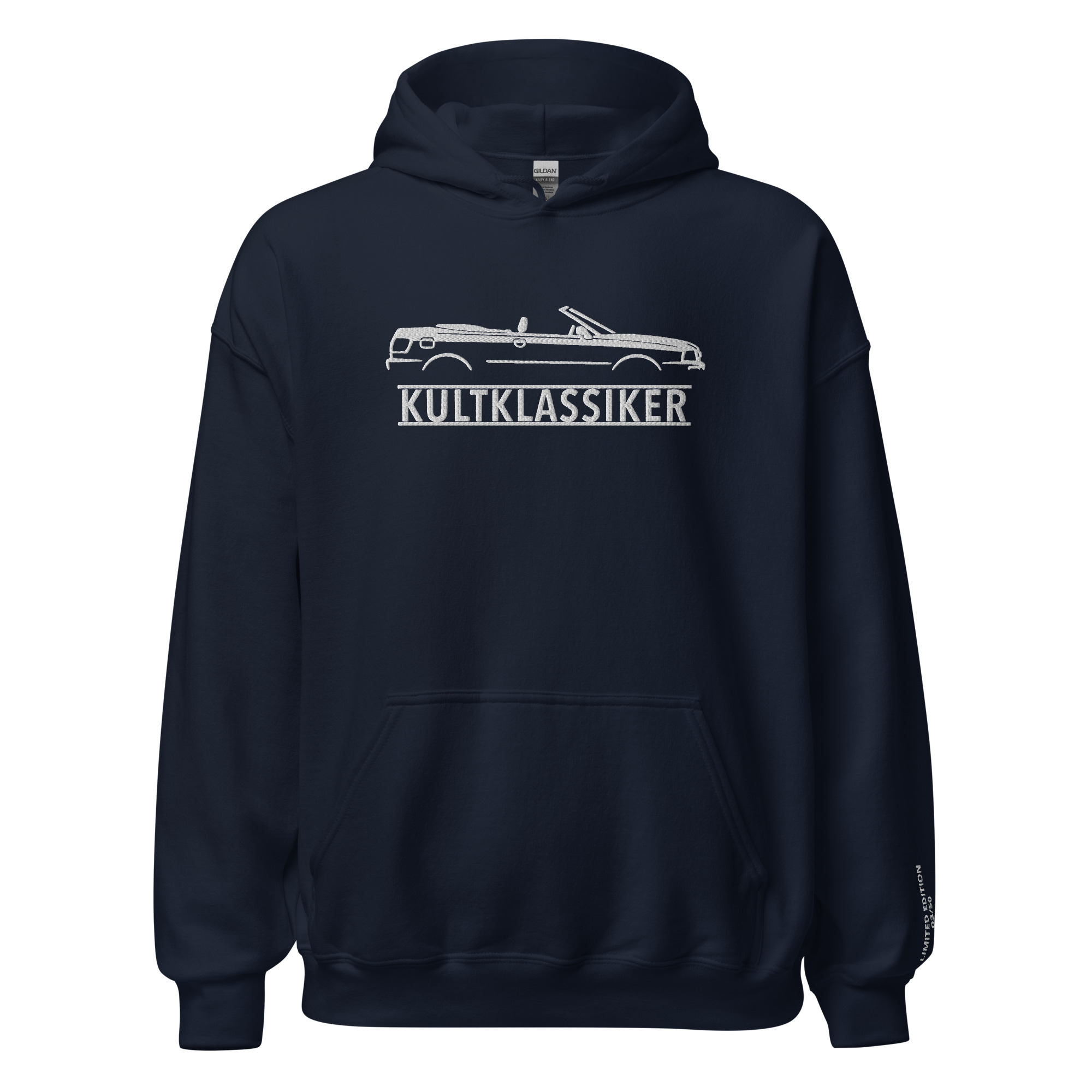 Es ist streng auf nur 50 Exemplare limitiert. Dies weist der edle gestickte Schriftzug am linken Unterarm nach. Hier ist neben dem Text KULTKLASSIKER die Nummer des jeweiligen Exemplars, sowie die Gesamtzahl vermerkt. Die laufenden Nummern werden dem Bestellungseingang entsprechend vergeben.