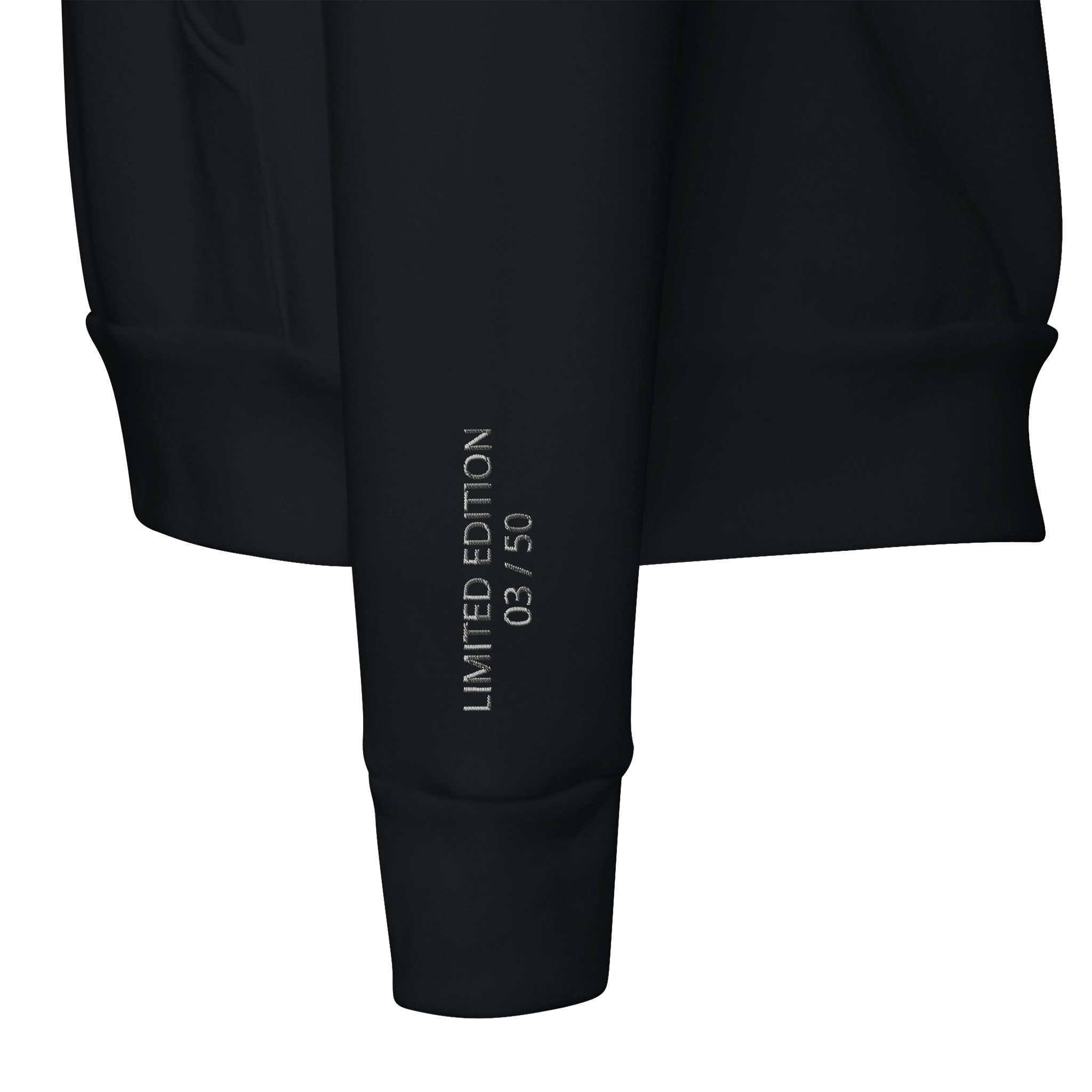 Es ist streng auf nur 50 Exemplare limitiert. Dies weist der edle gestickte Schriftzug am linken Unterarm nach. Hier ist die Nummer des jeweiligen Exemplars, sowie die Gesamtzahl vermerkt. Die laufenden Nummern werden dem Bestellungseingang entsprechend vergeben.