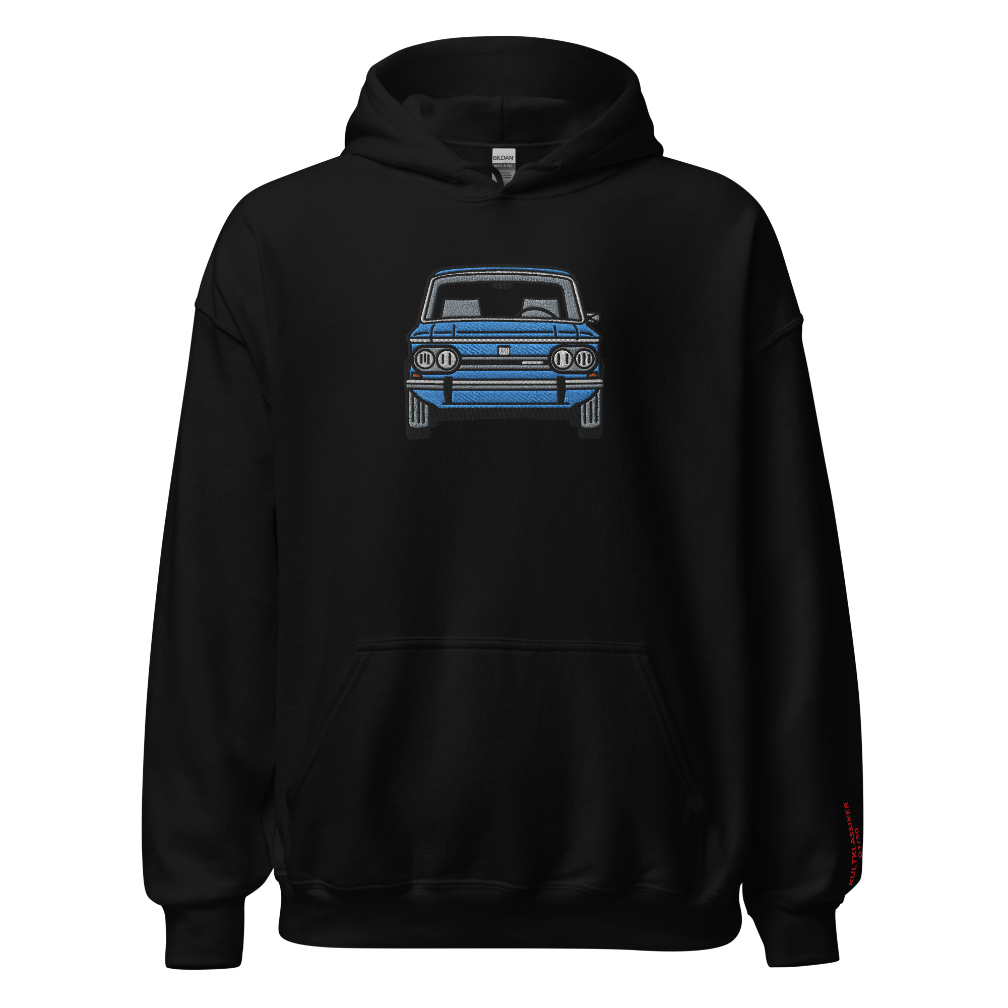Das hochwertige Hoodie mit der großen Stickerei des NSU ist ein echter Hingucker.