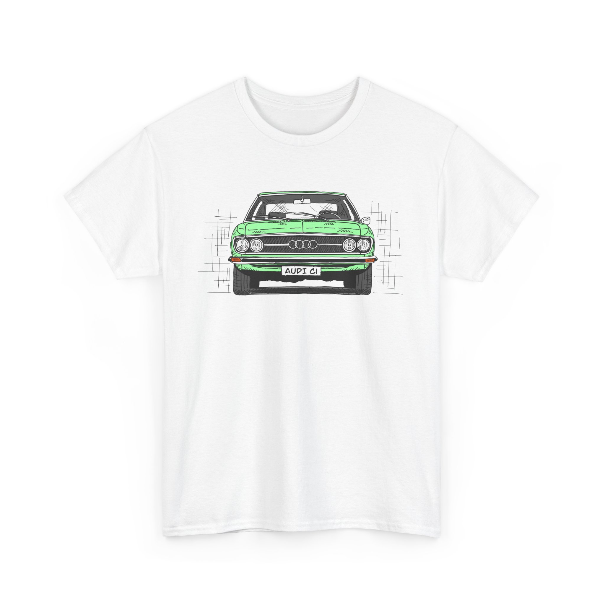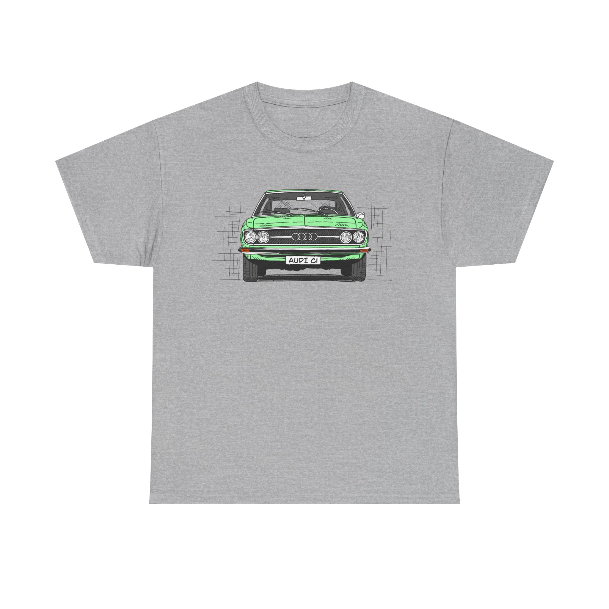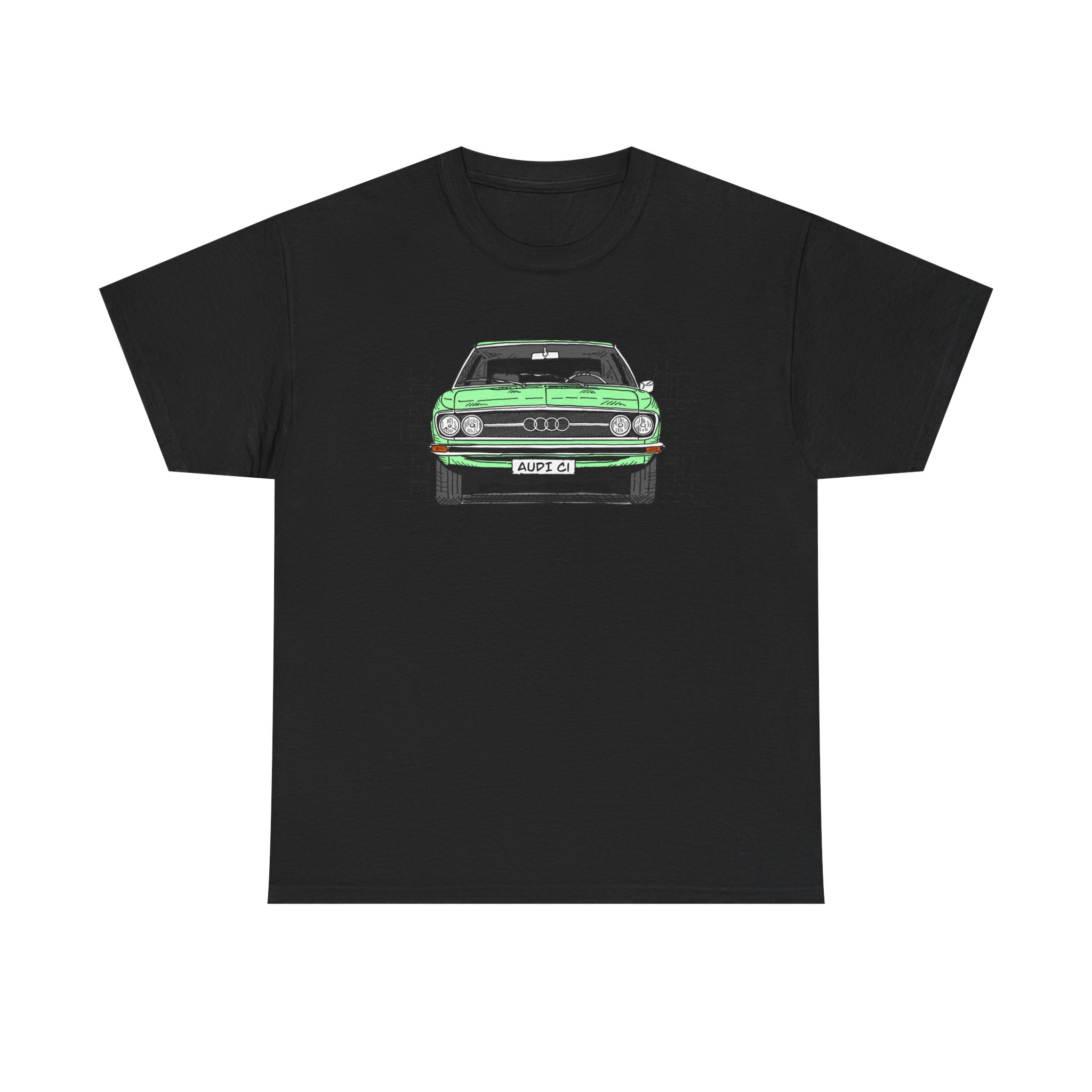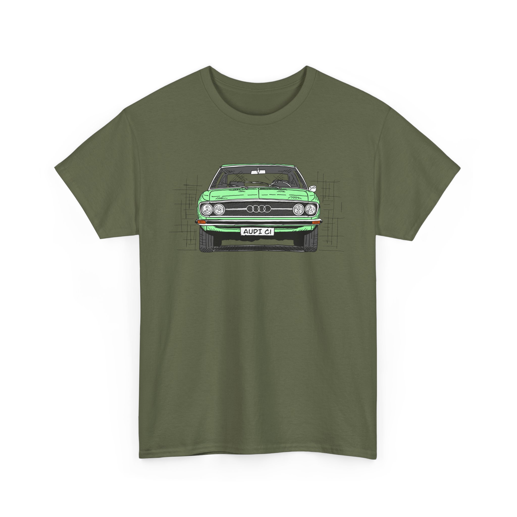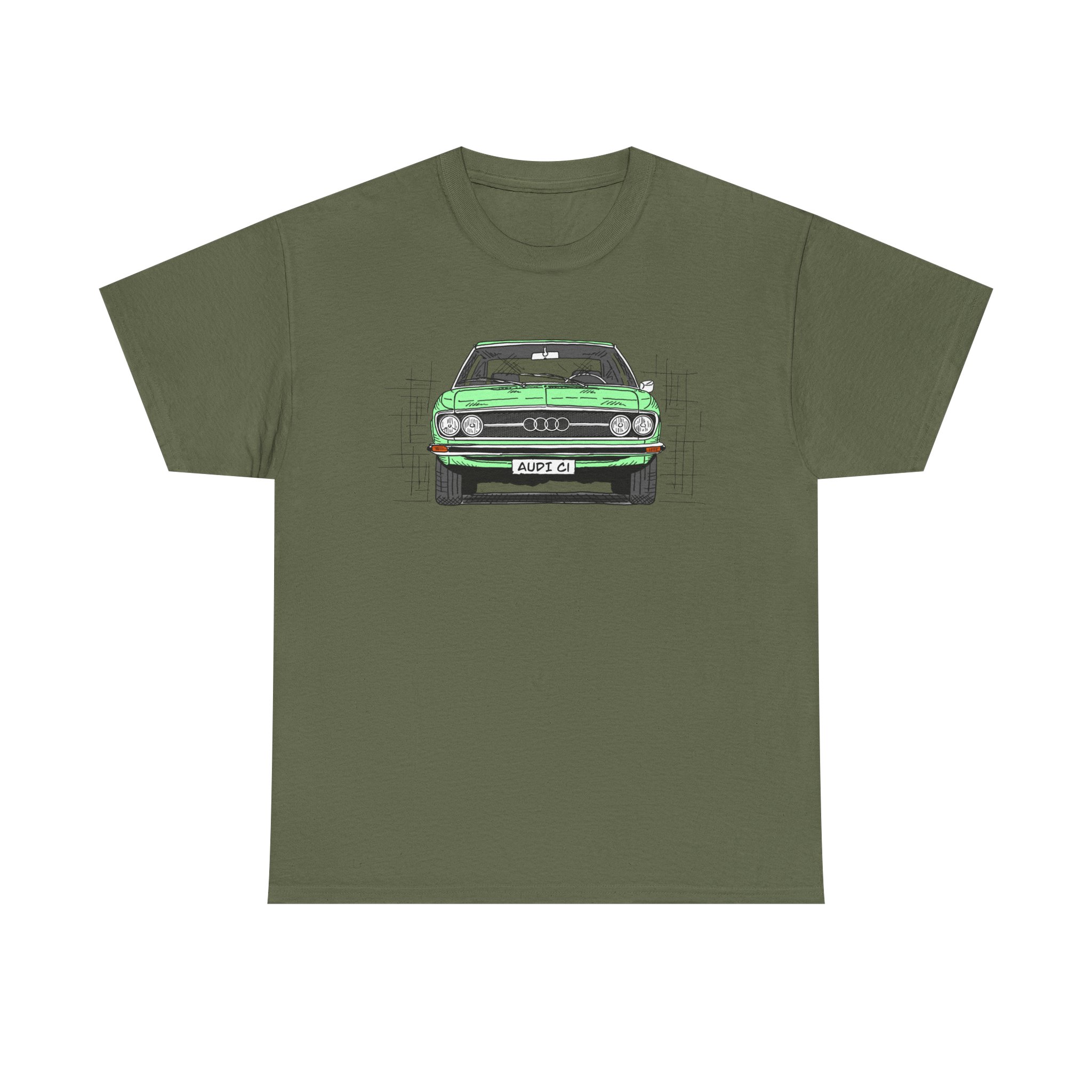 T-Shirt, Audi 100 C1, Strichzeichnung, Grün, personalisierbar