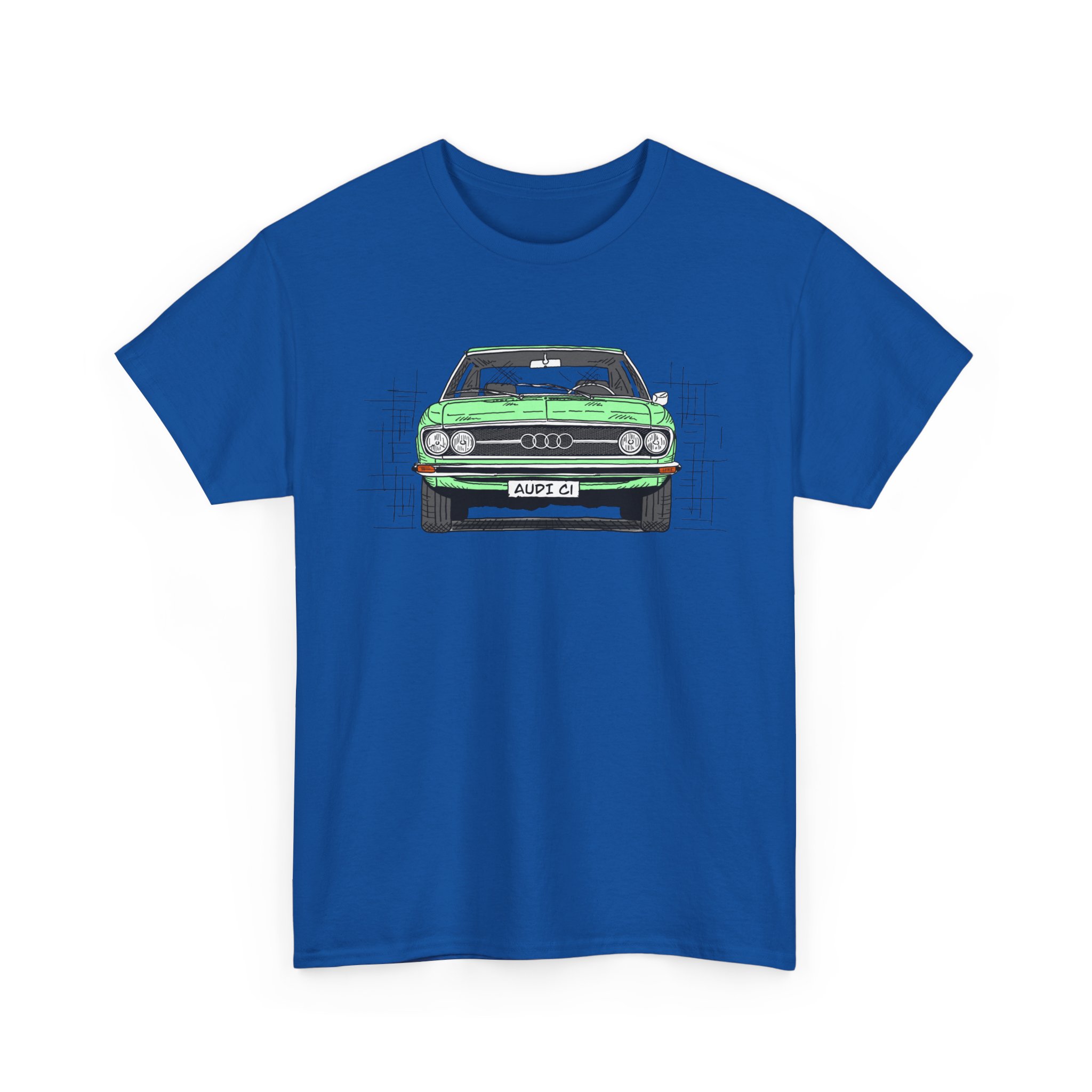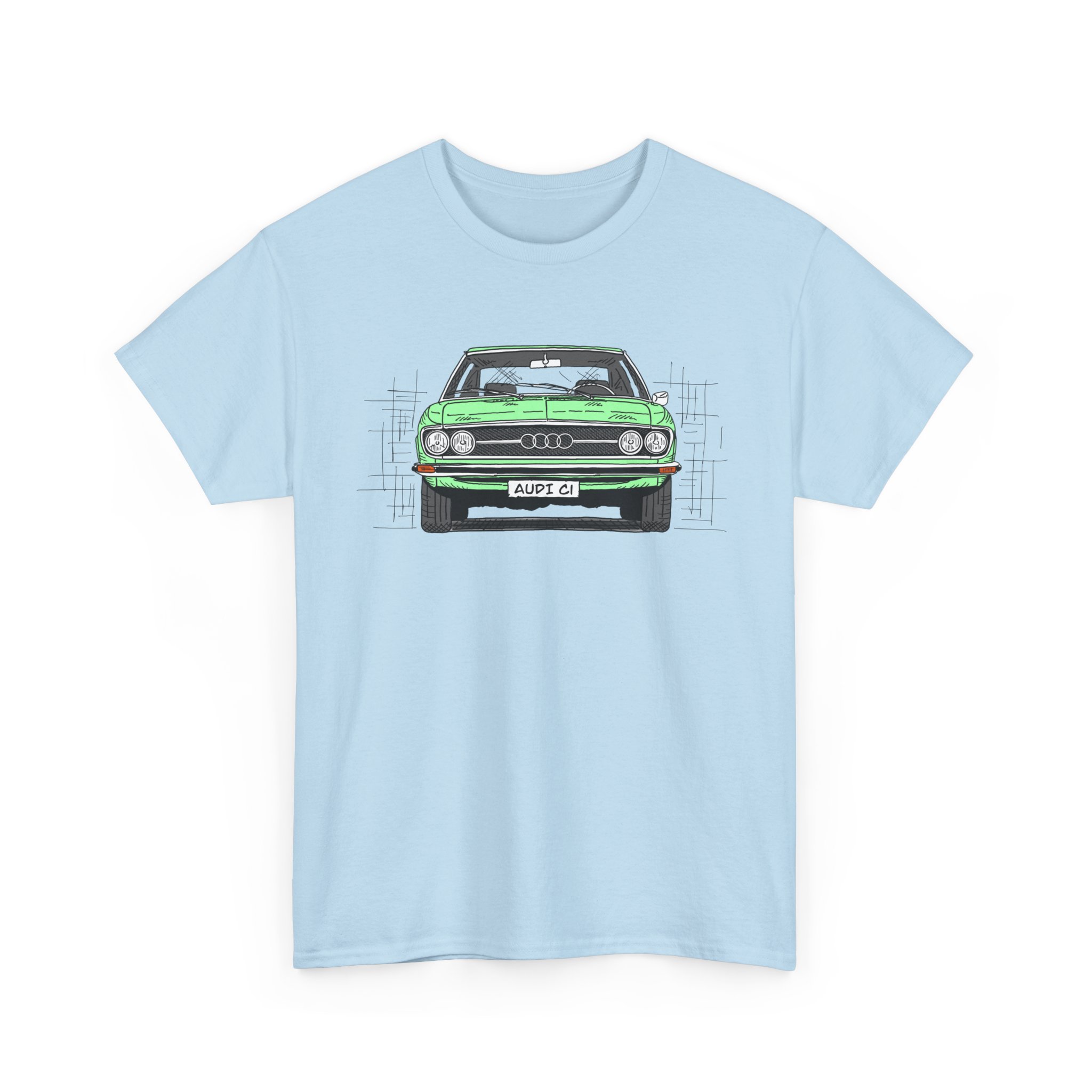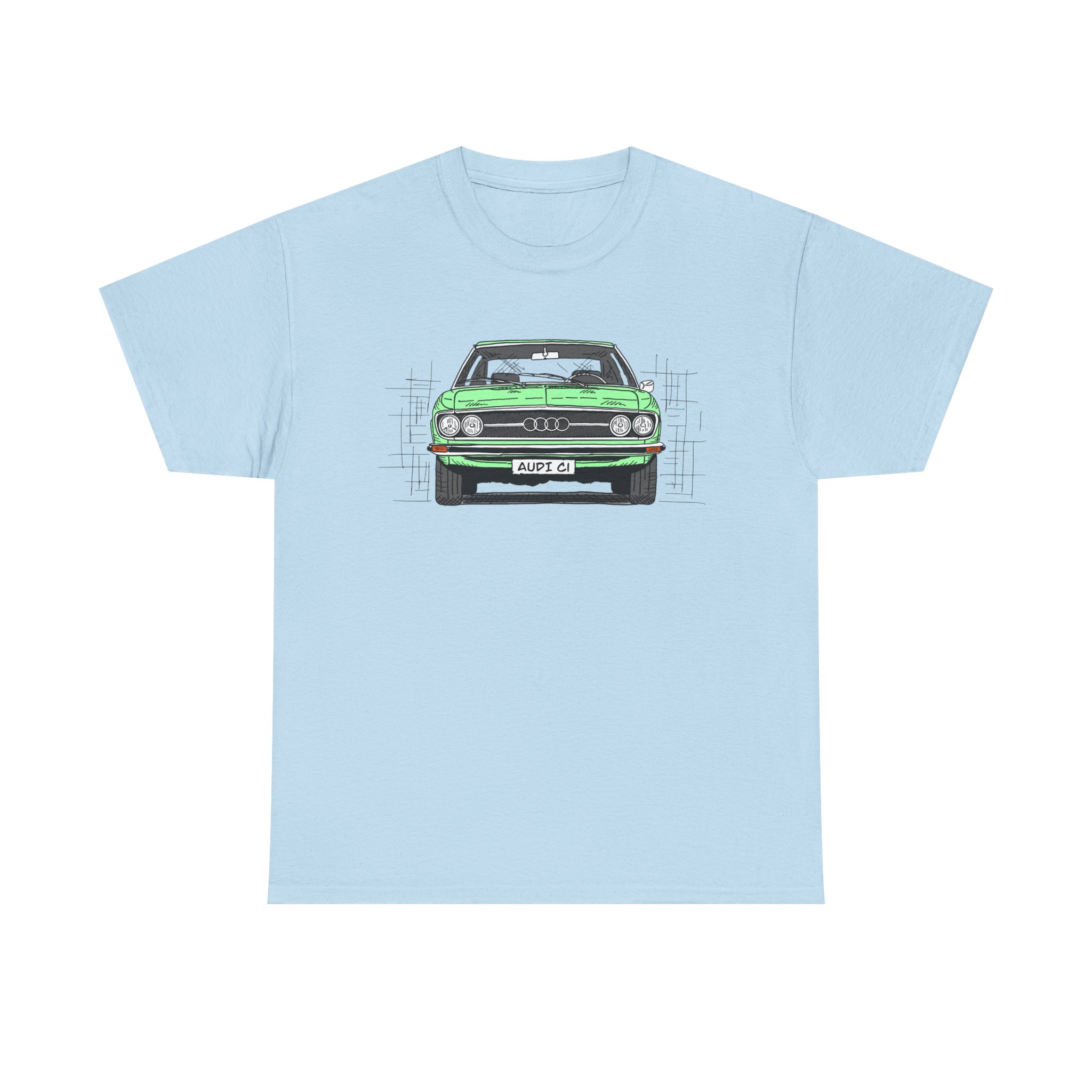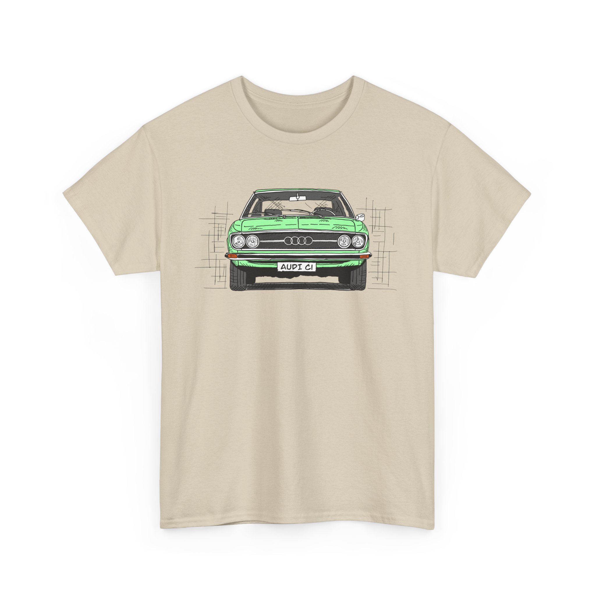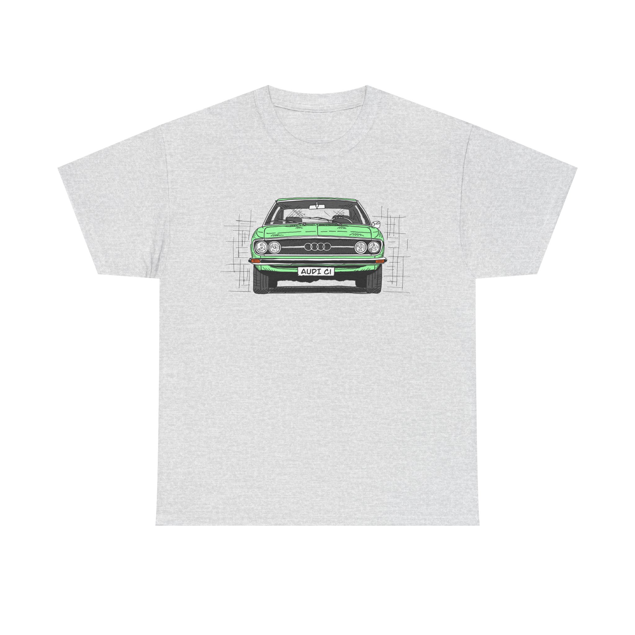 T-Shirt, Audi 100 C1, Strichzeichnung, Grün, personalisierbar