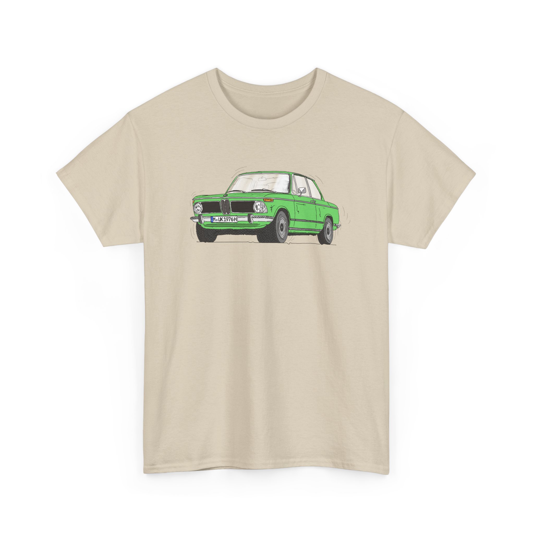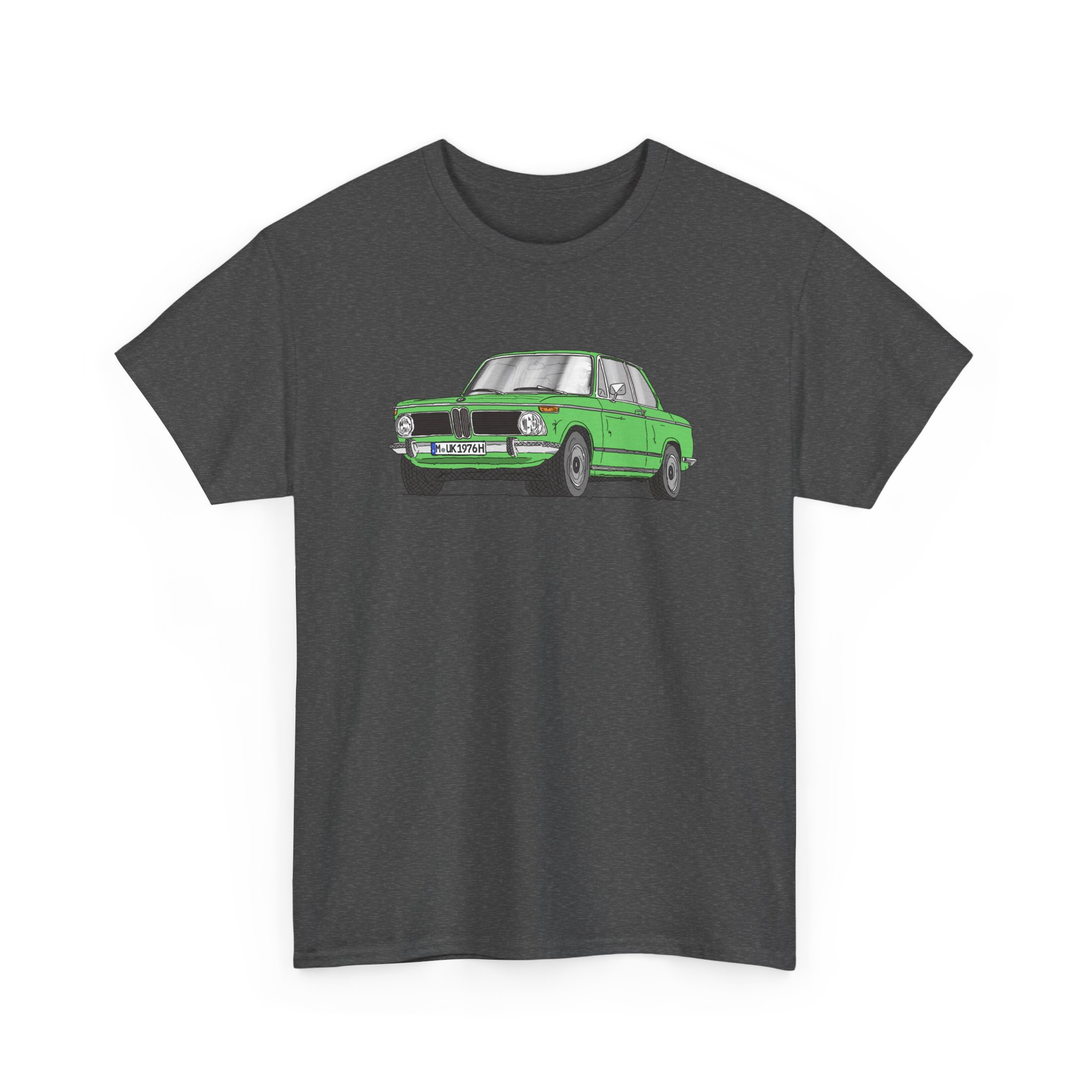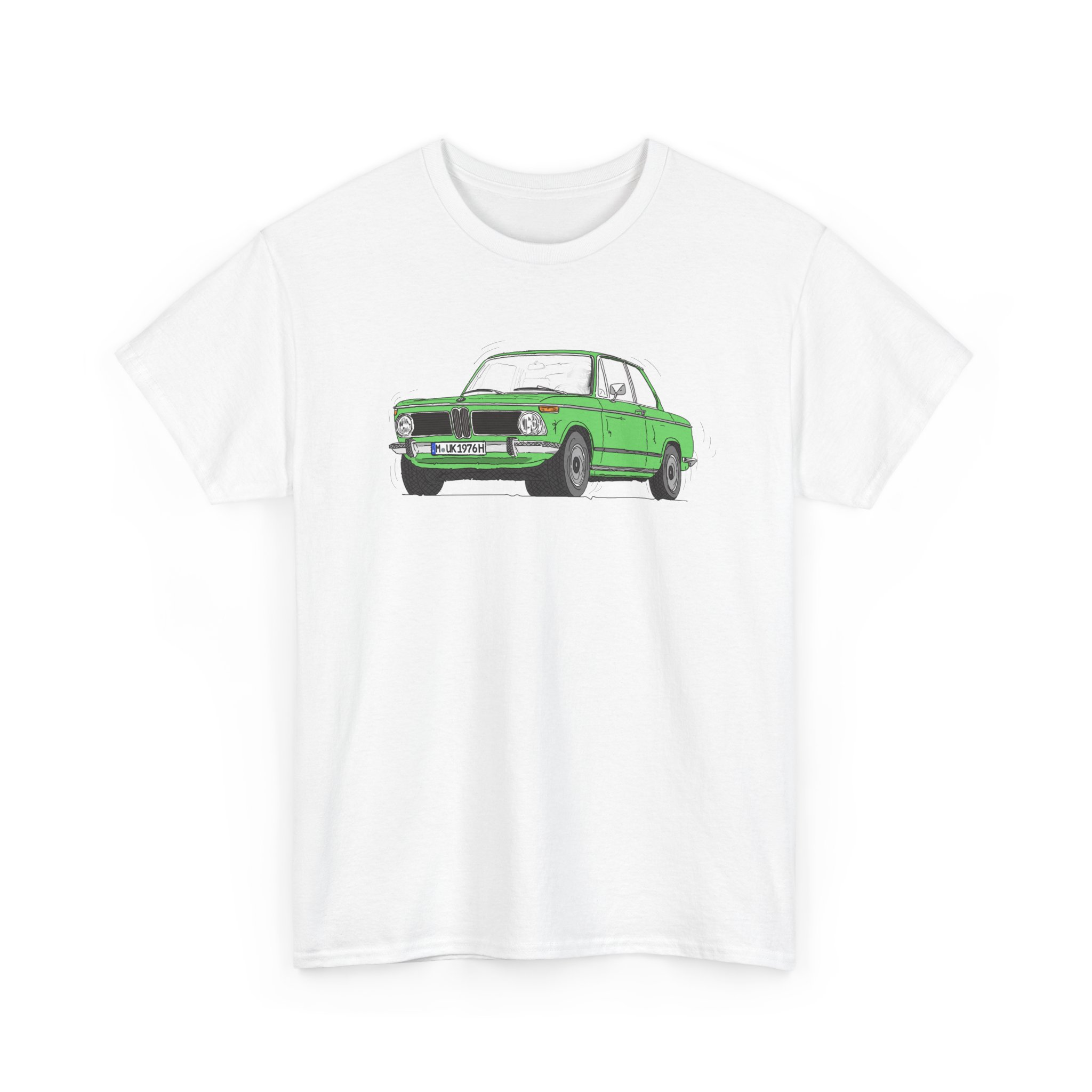 T-Shirt, BMW 02, Strichzeichnung, Grün, M UK 1976H