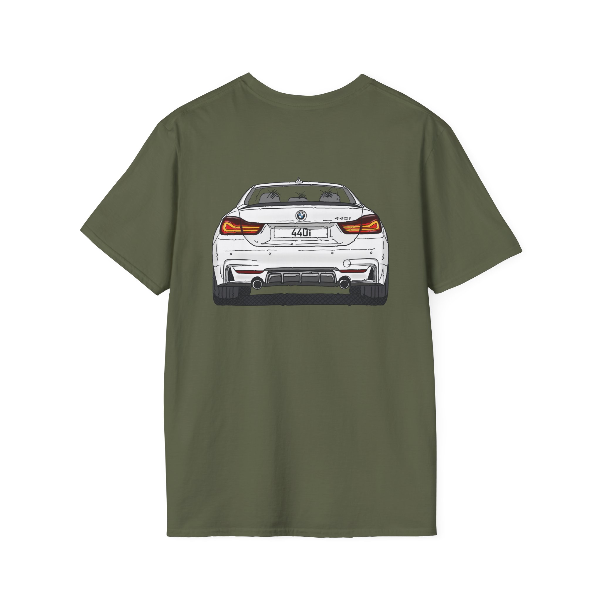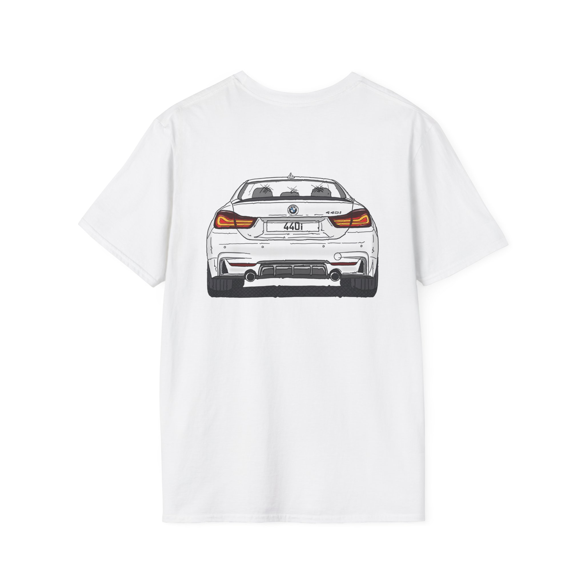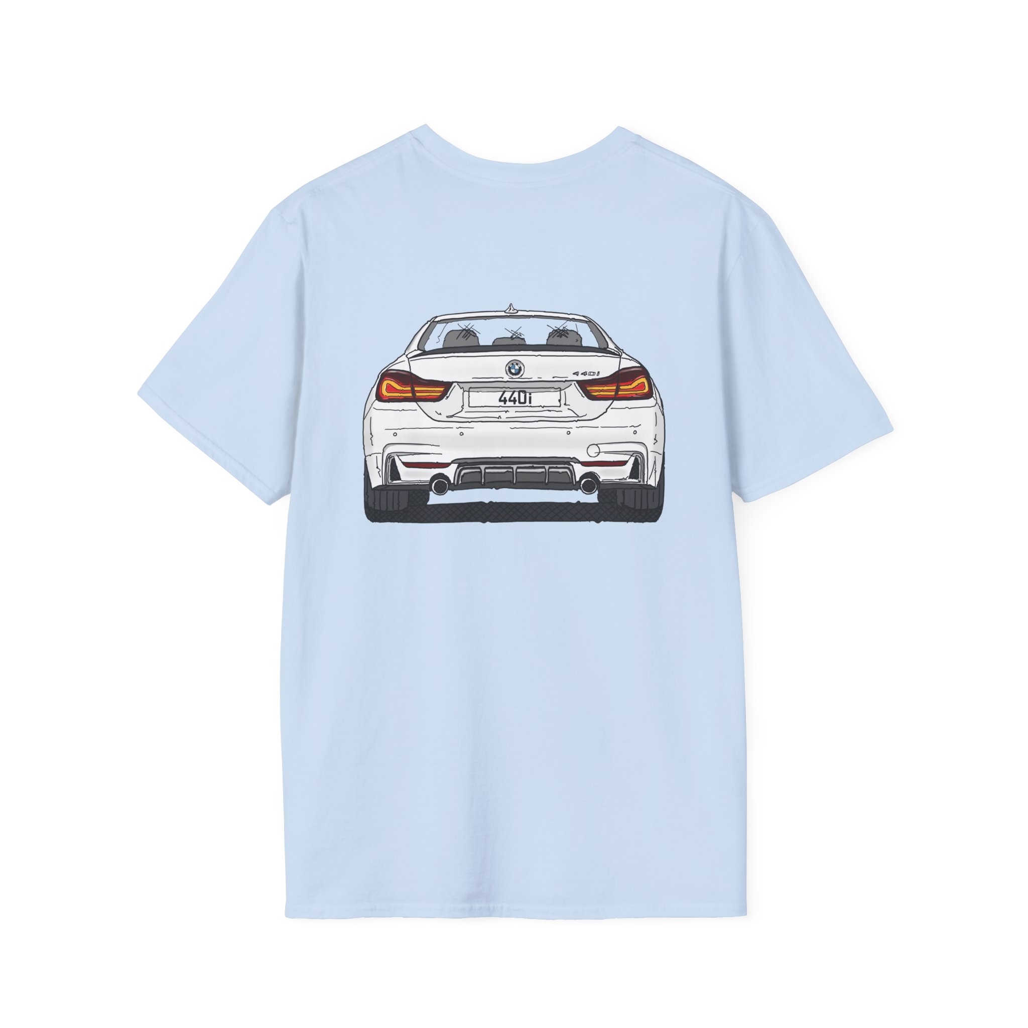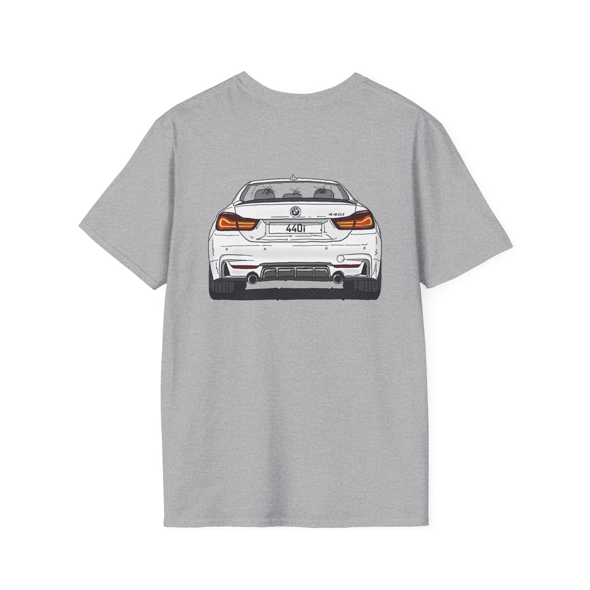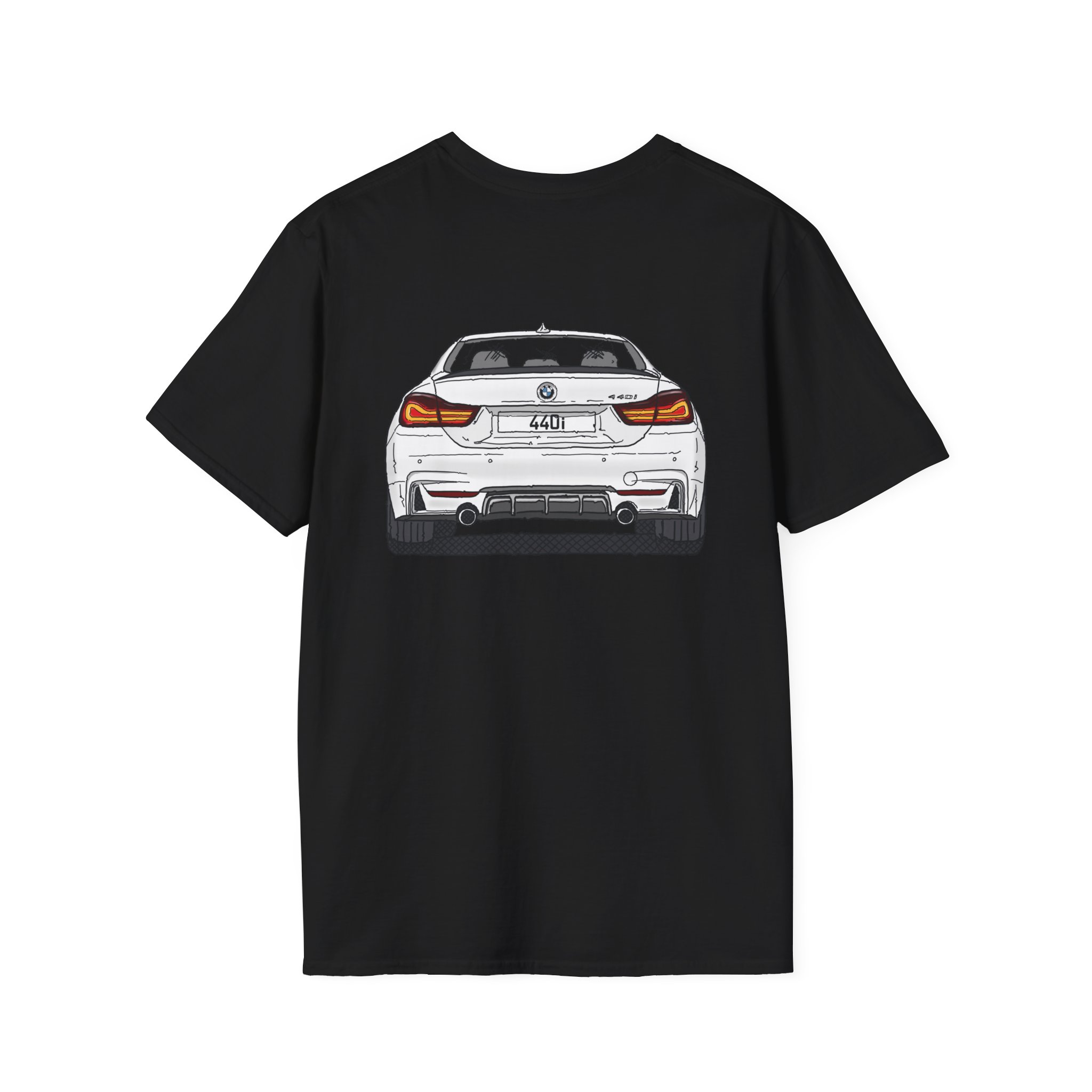 Das hochwertige T-Shirt ist beidseitig bedruckt und zeigt die Front des 440i auf der Vorderseite und das Heck auf der Rückseite.