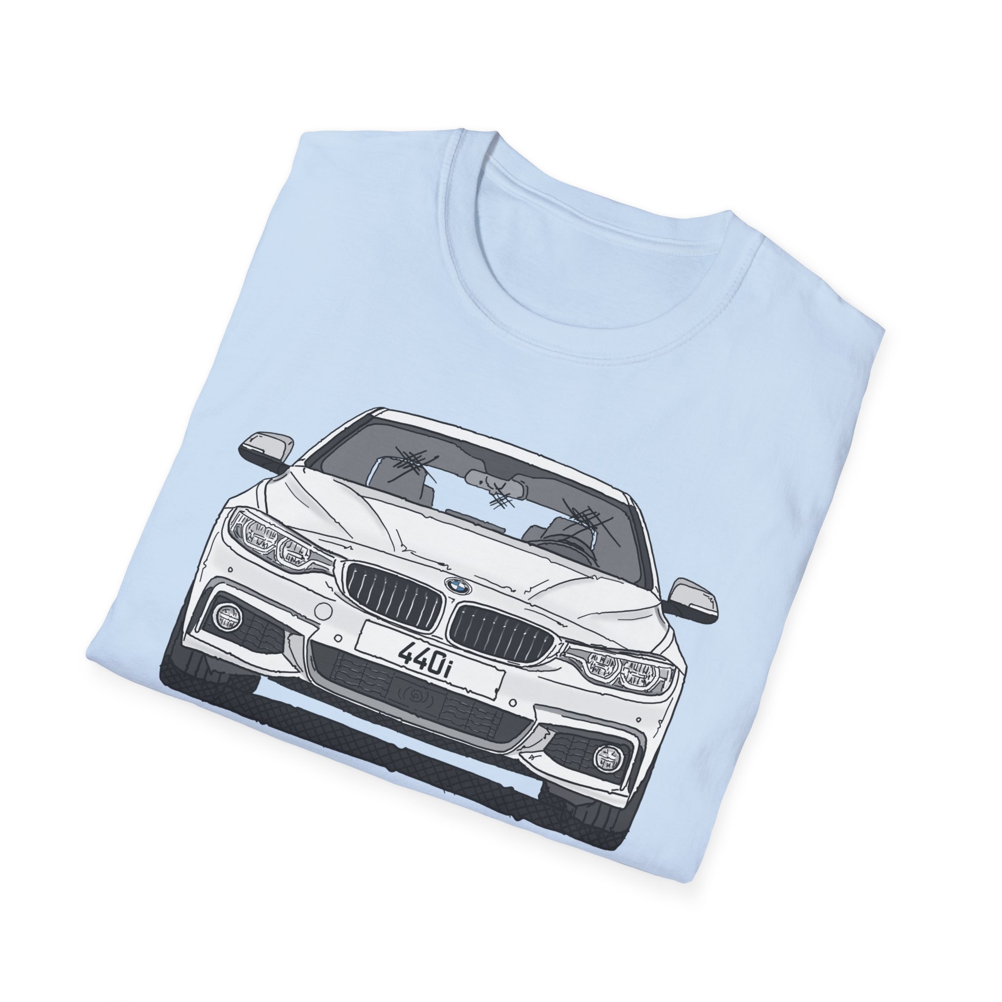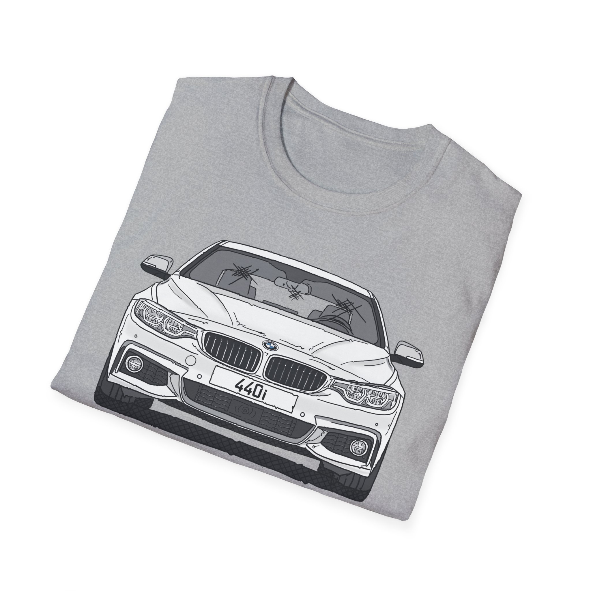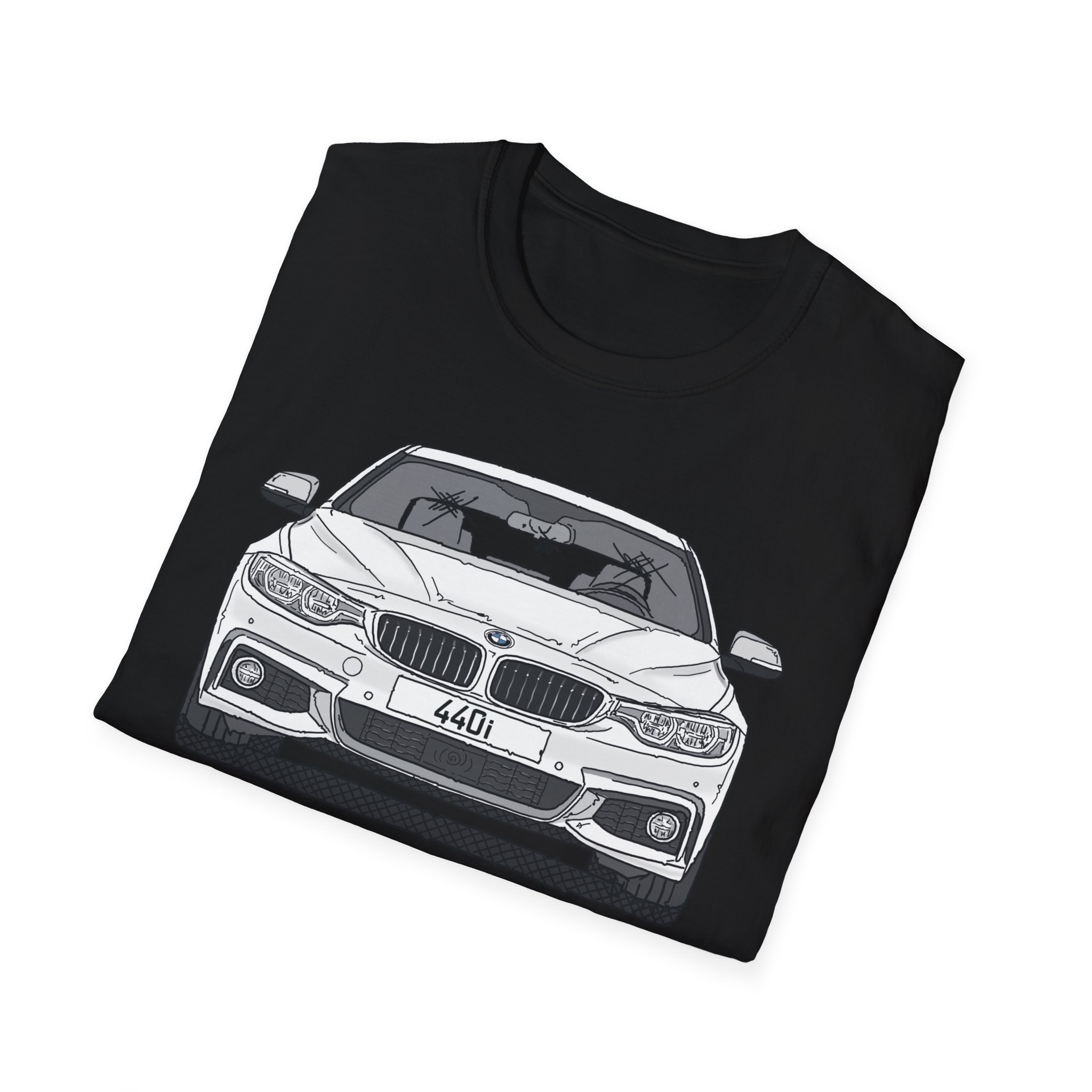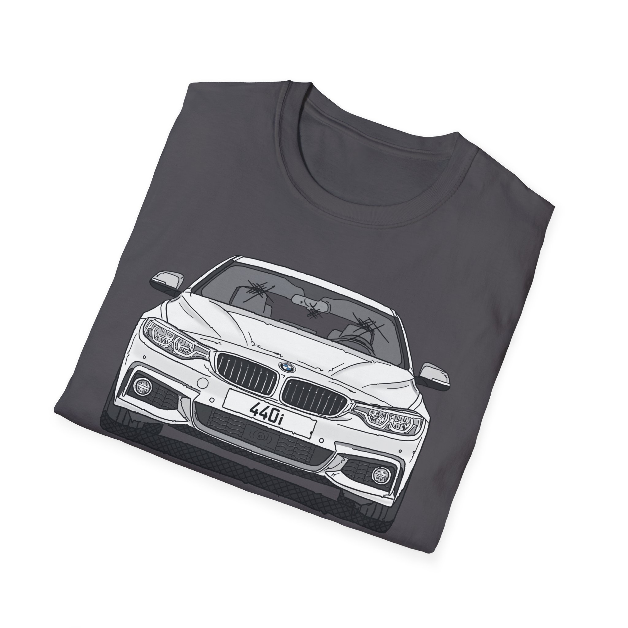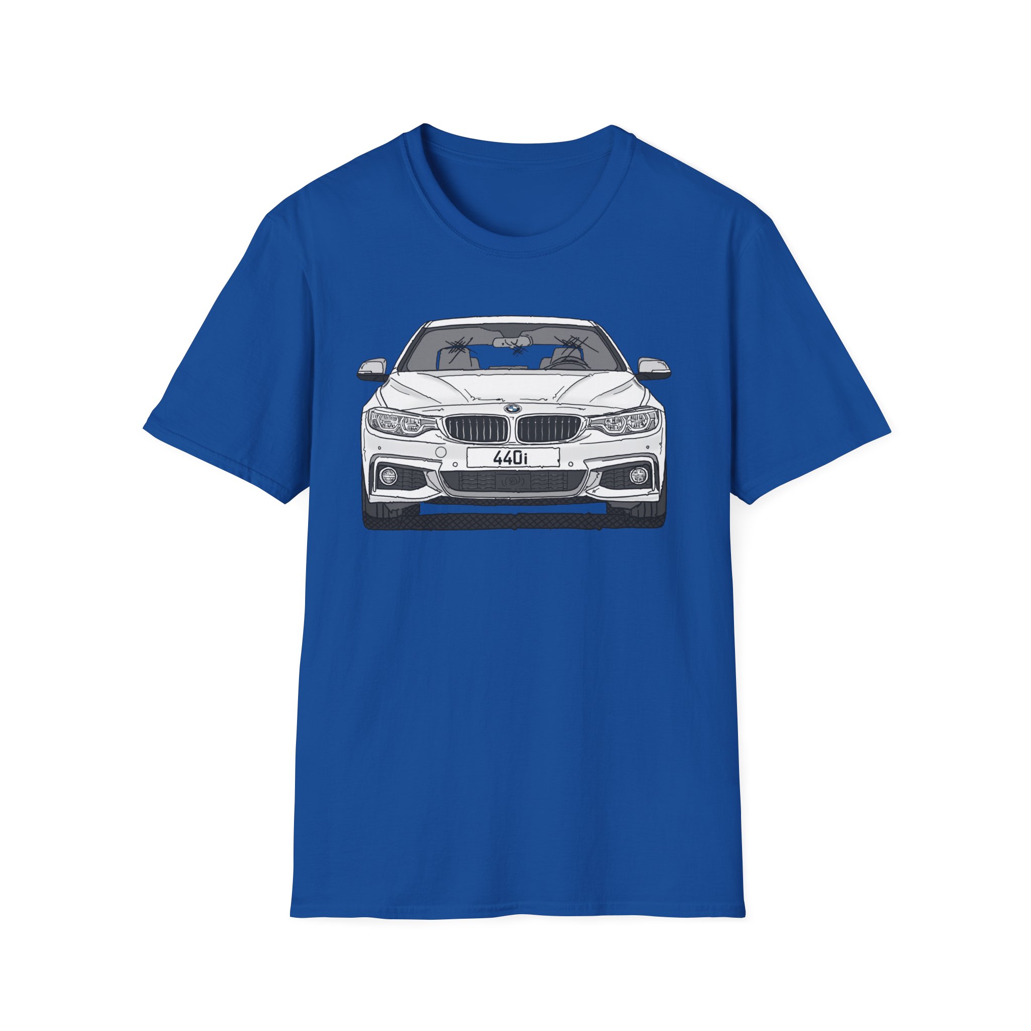 Das hochwertige T-Shirt ist beidseitig bedruckt und zeigt die Front des 440i auf der Vorderseite und das Heck auf der Rückseite.
