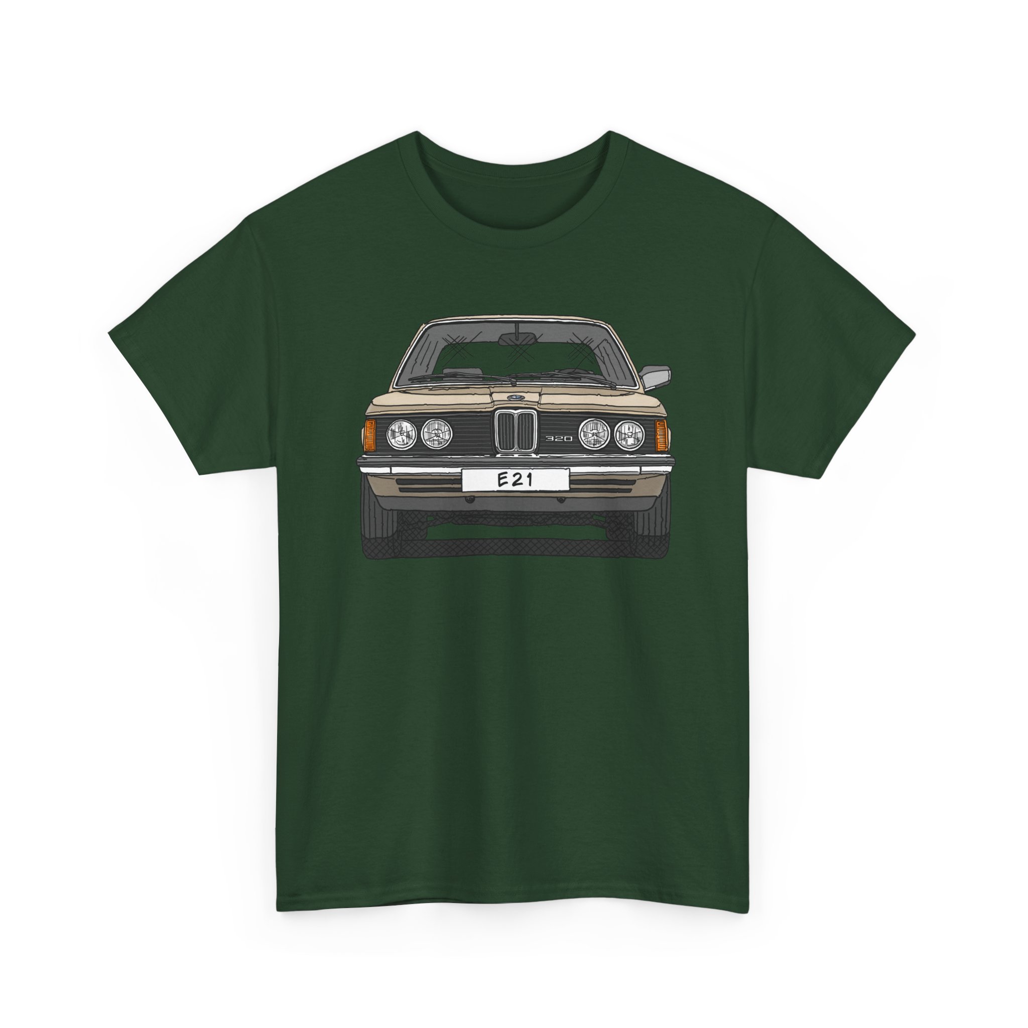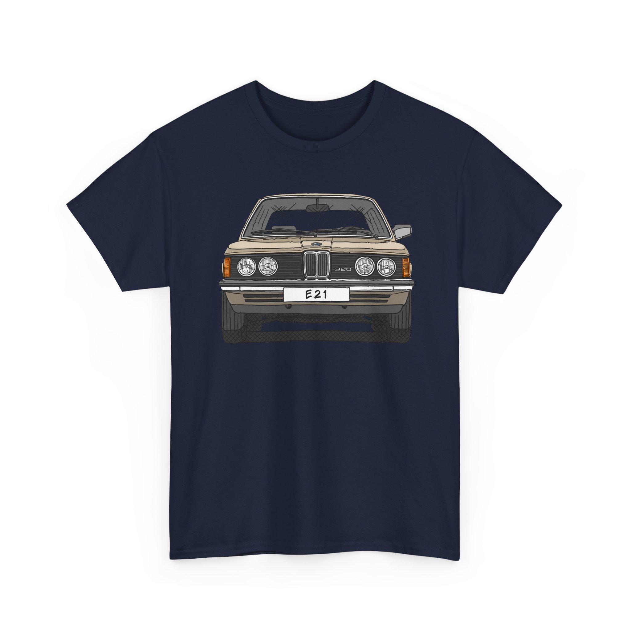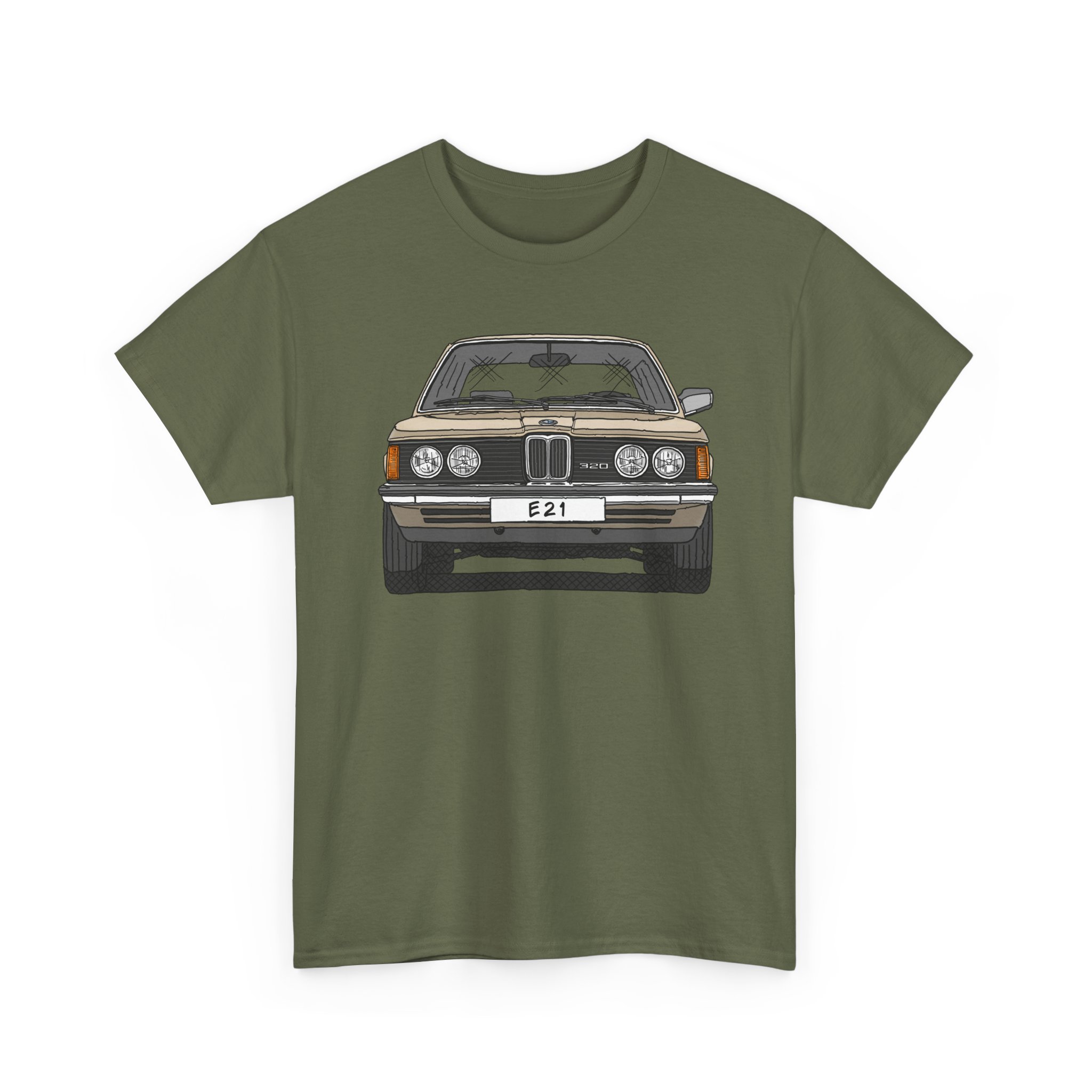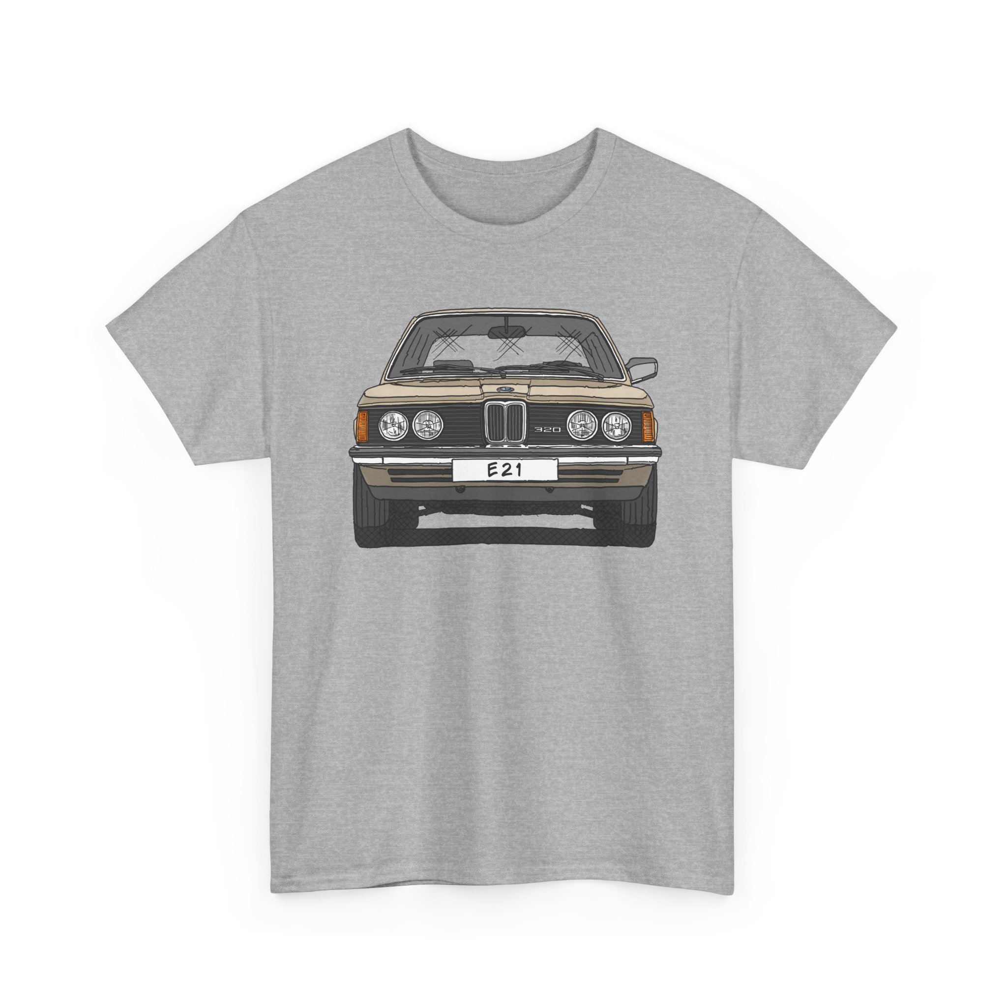 T-Shirt, BMW E21, 3er BMW, Strichzeichnung, Beige, eigenes Kennzeichen möglich