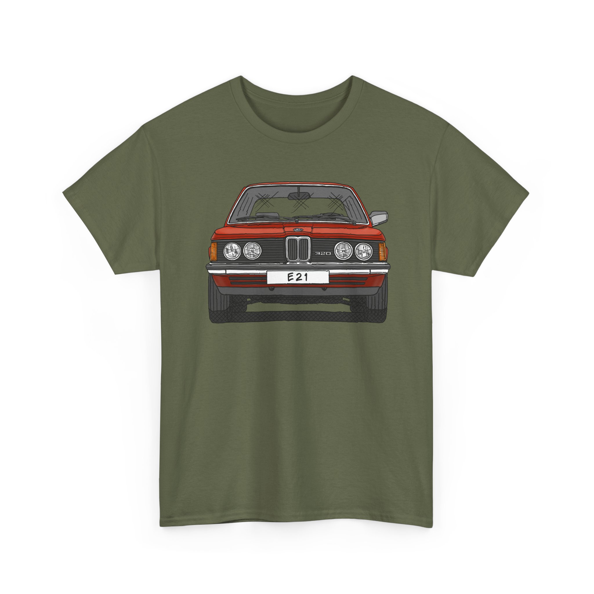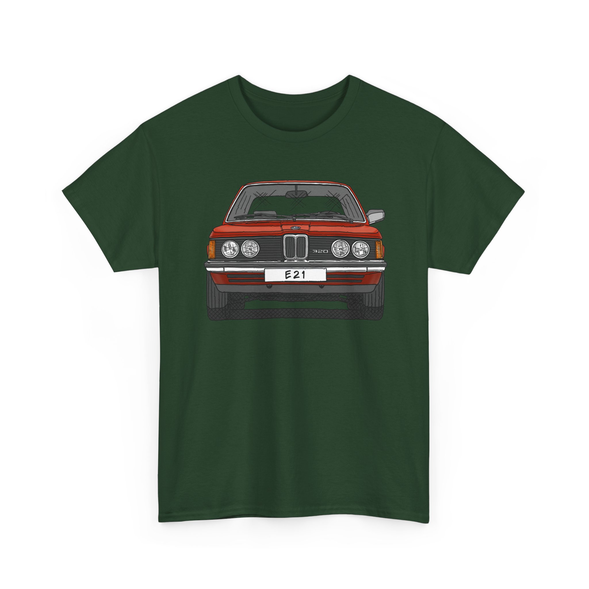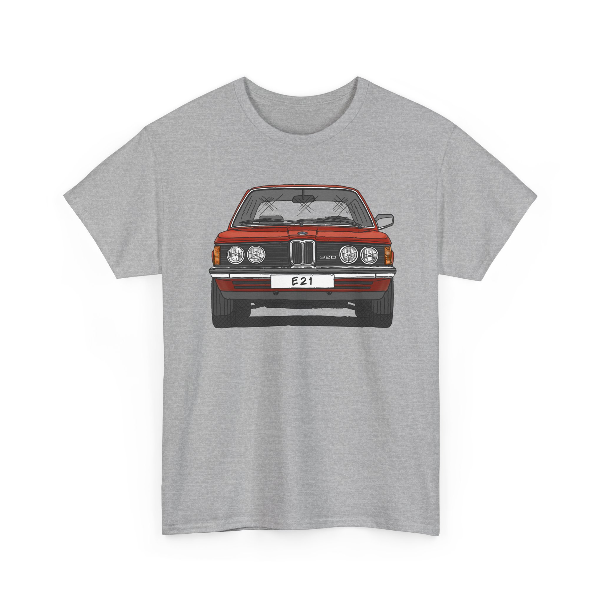 T-Shirt, BMW E21, 3er BMW, Strichzeichnung, Rot, eigenes Kennzeichen möglich