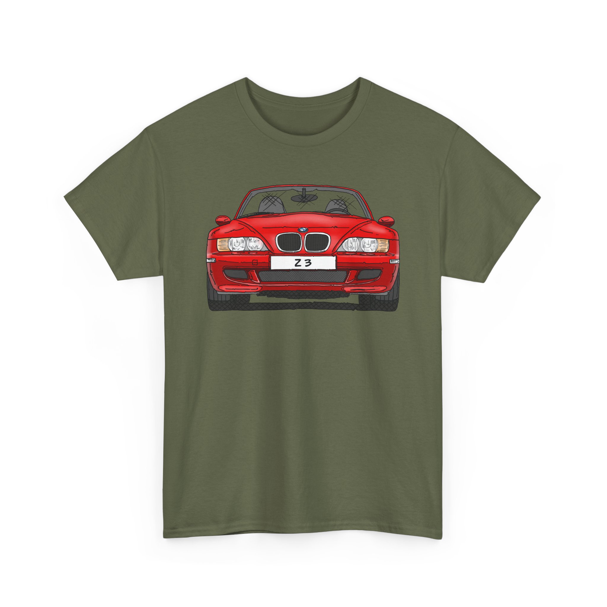 T-Shirt, BMW Z3, Strichzeichnung, Rot, personalisierbar mit Kennzeichen