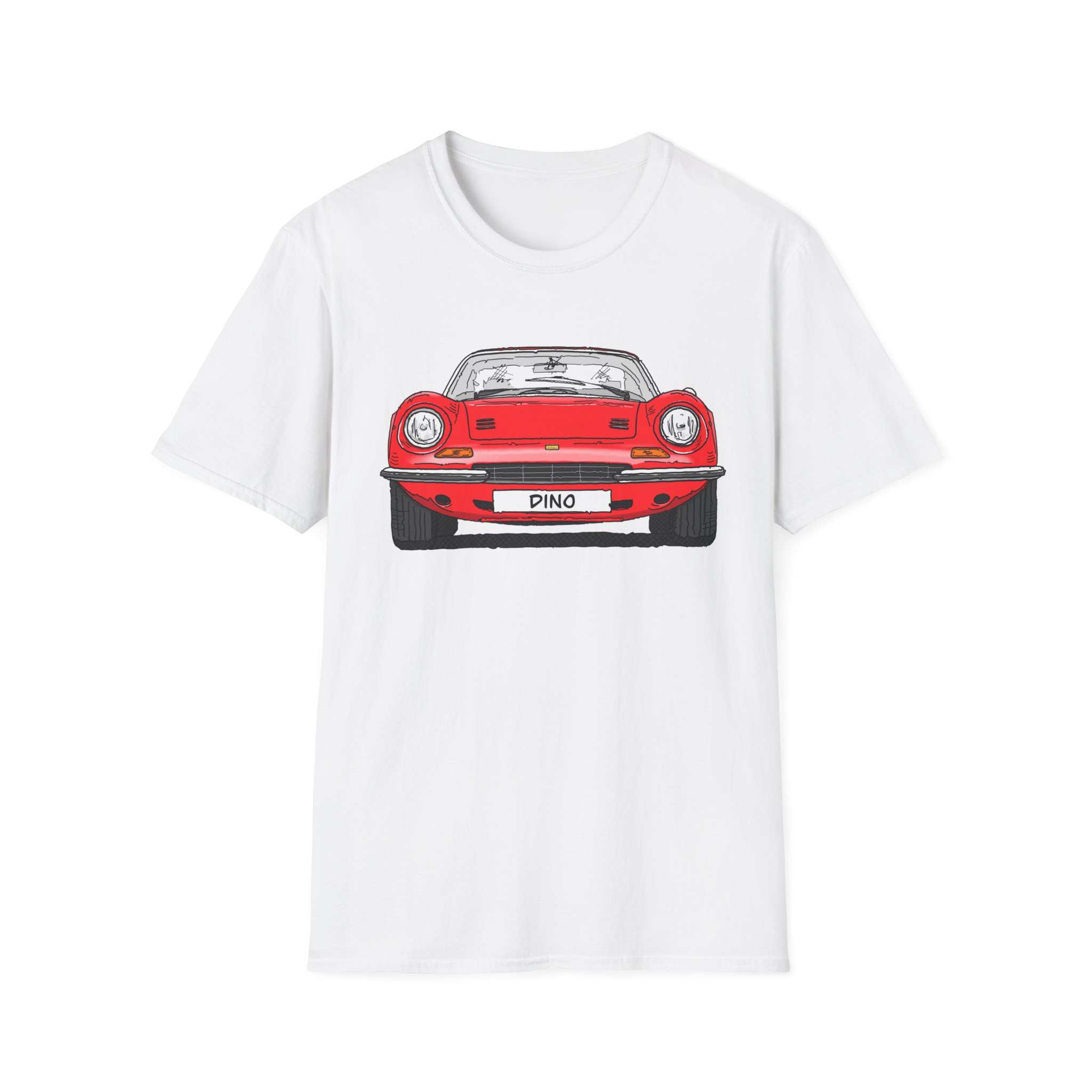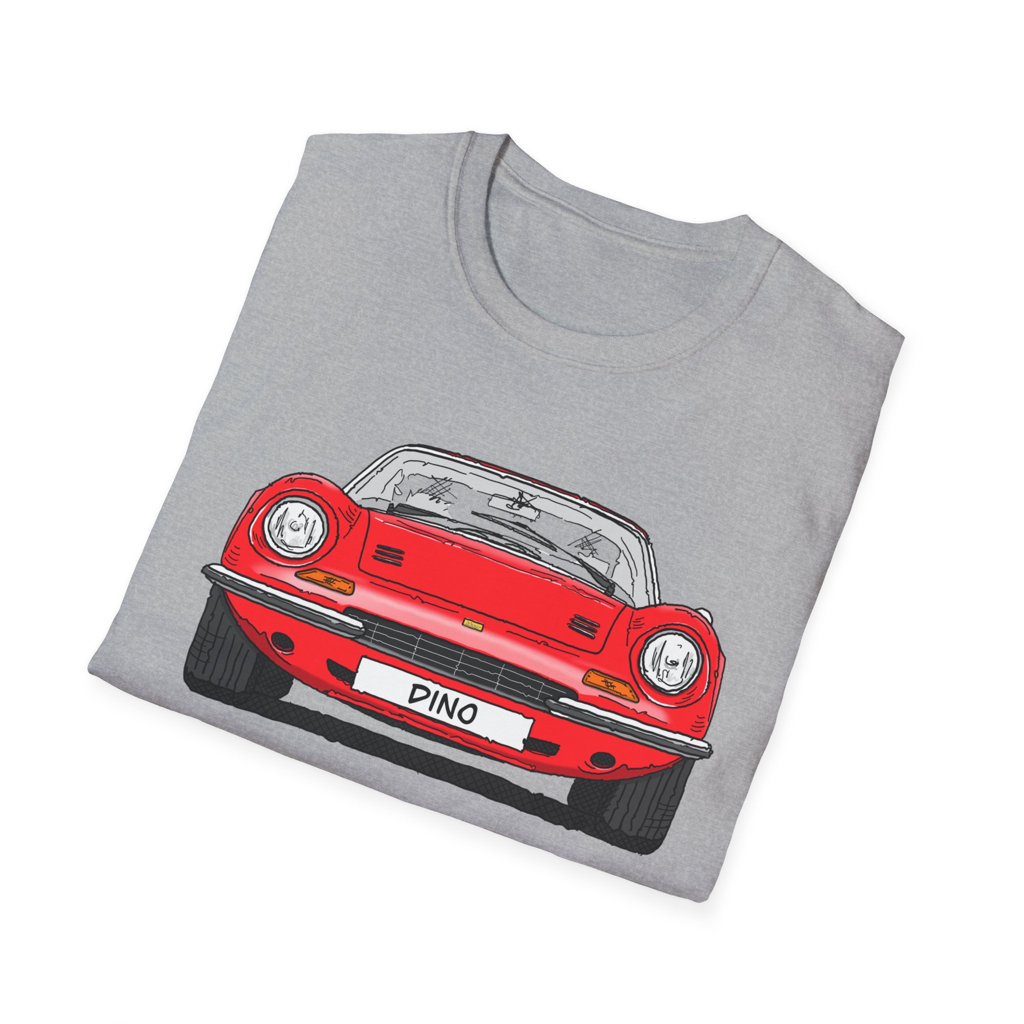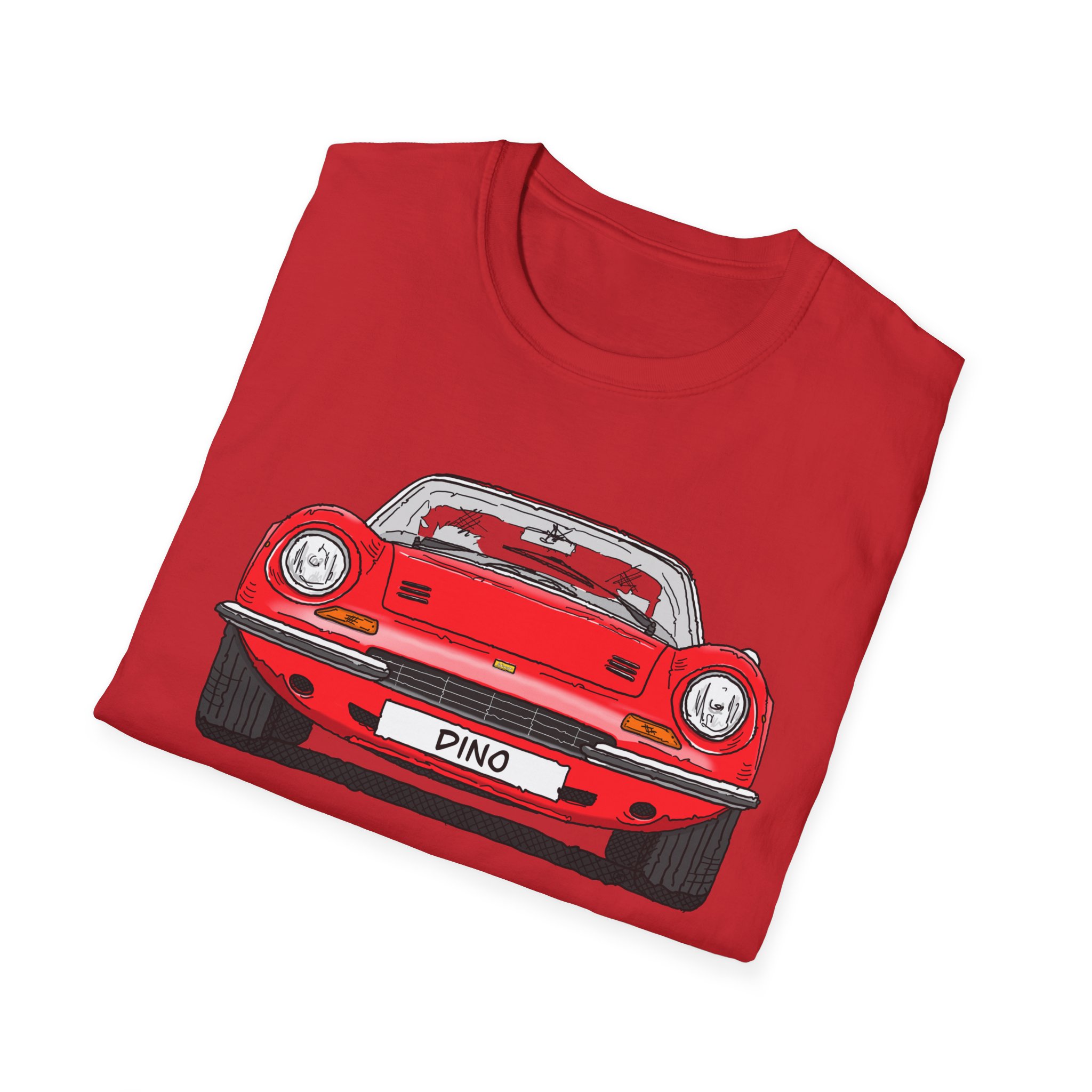 T-Shirt, Ferrari Dino, Strichzeichnung, Rot, mit Kennzeichen personalisierbar