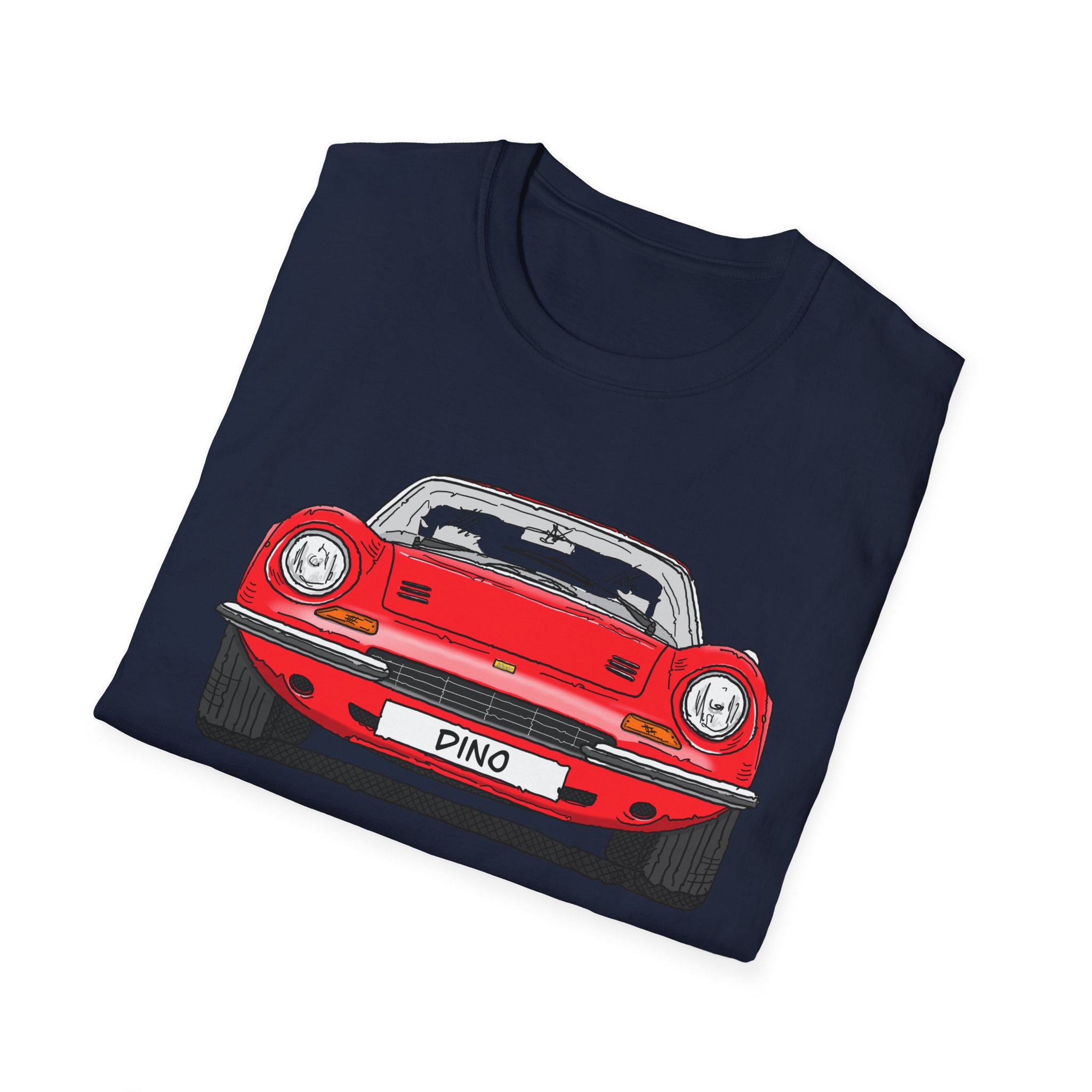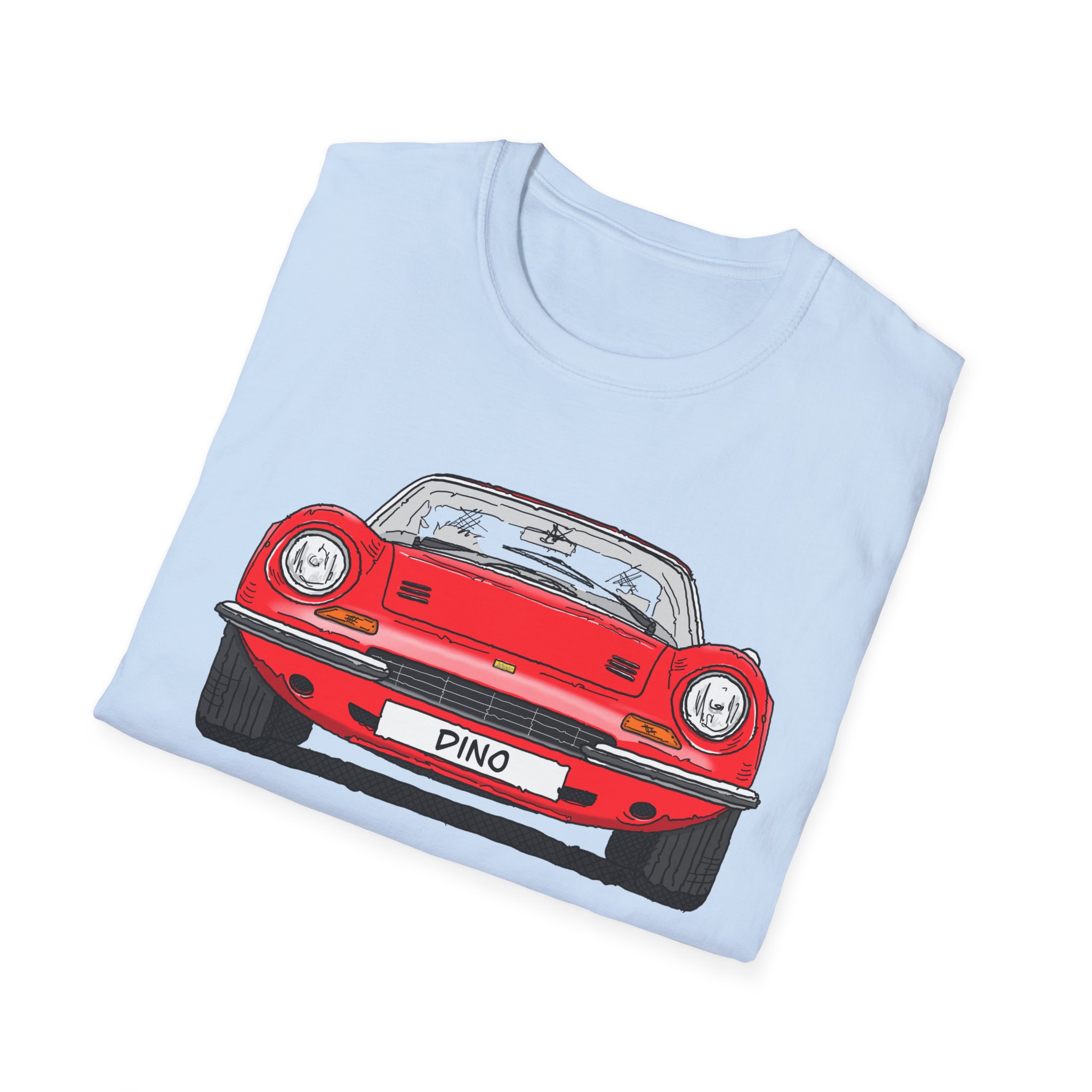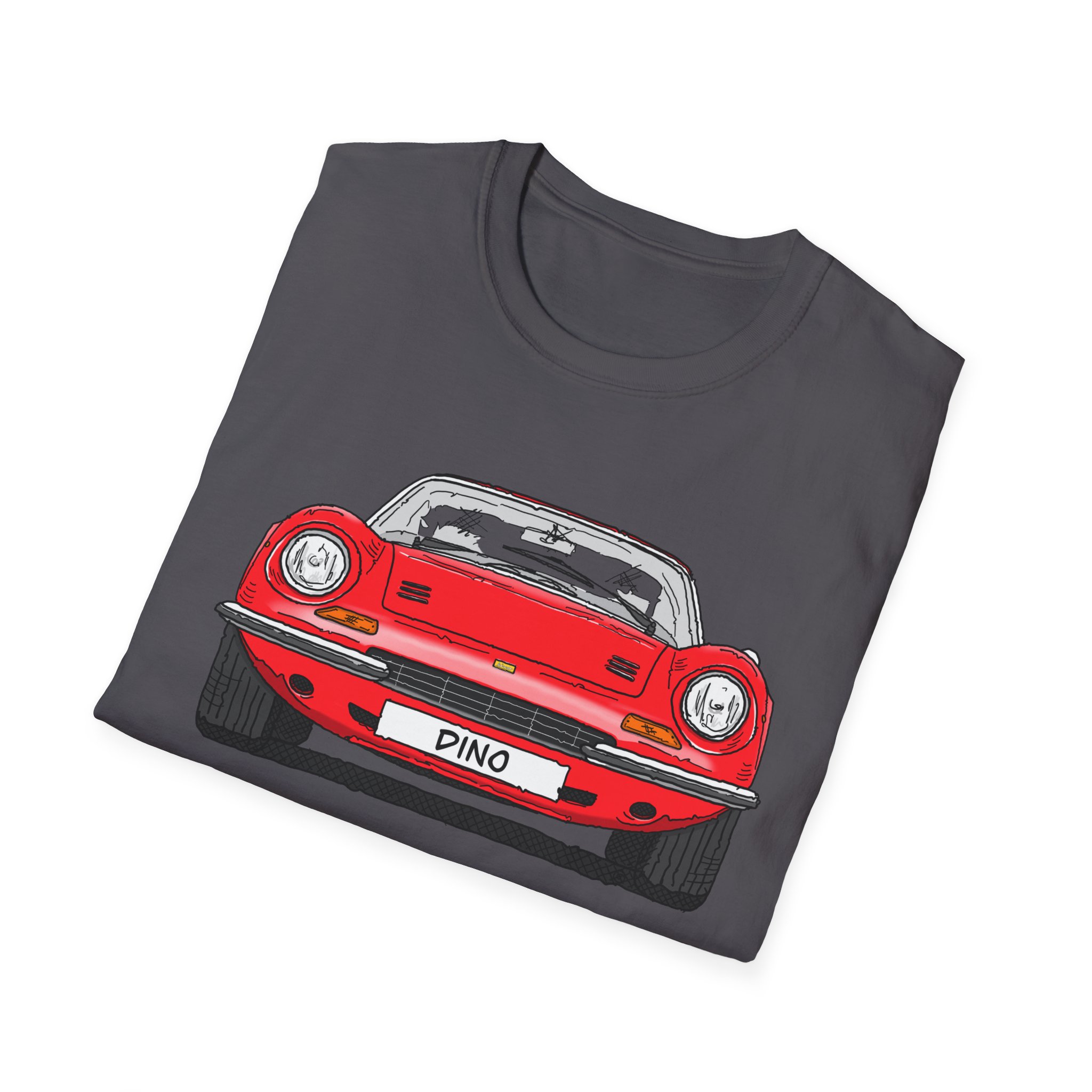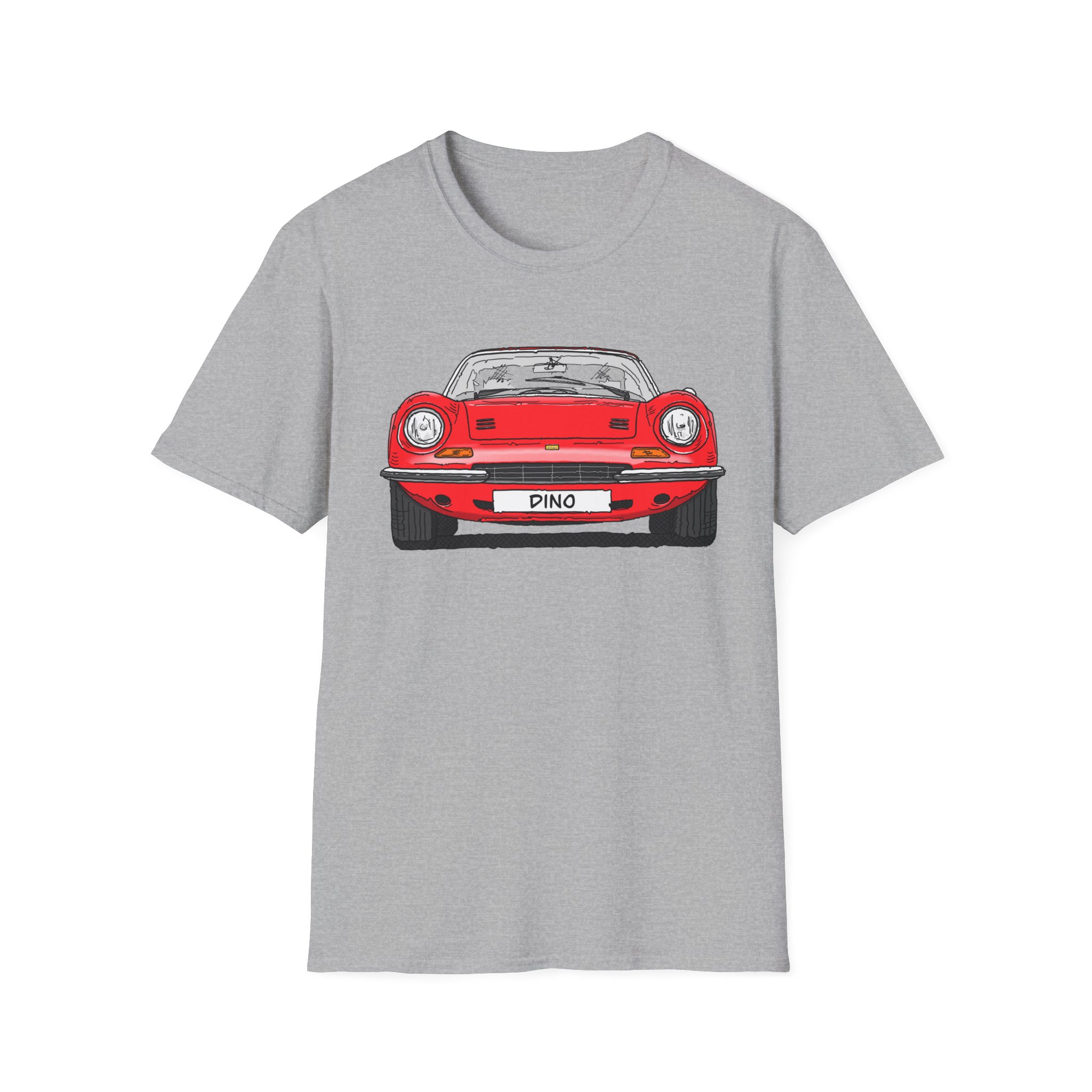 T-Shirt, Ferrari Dino, Strichzeichnung, Rot, mit Kennzeichen personalisierbar