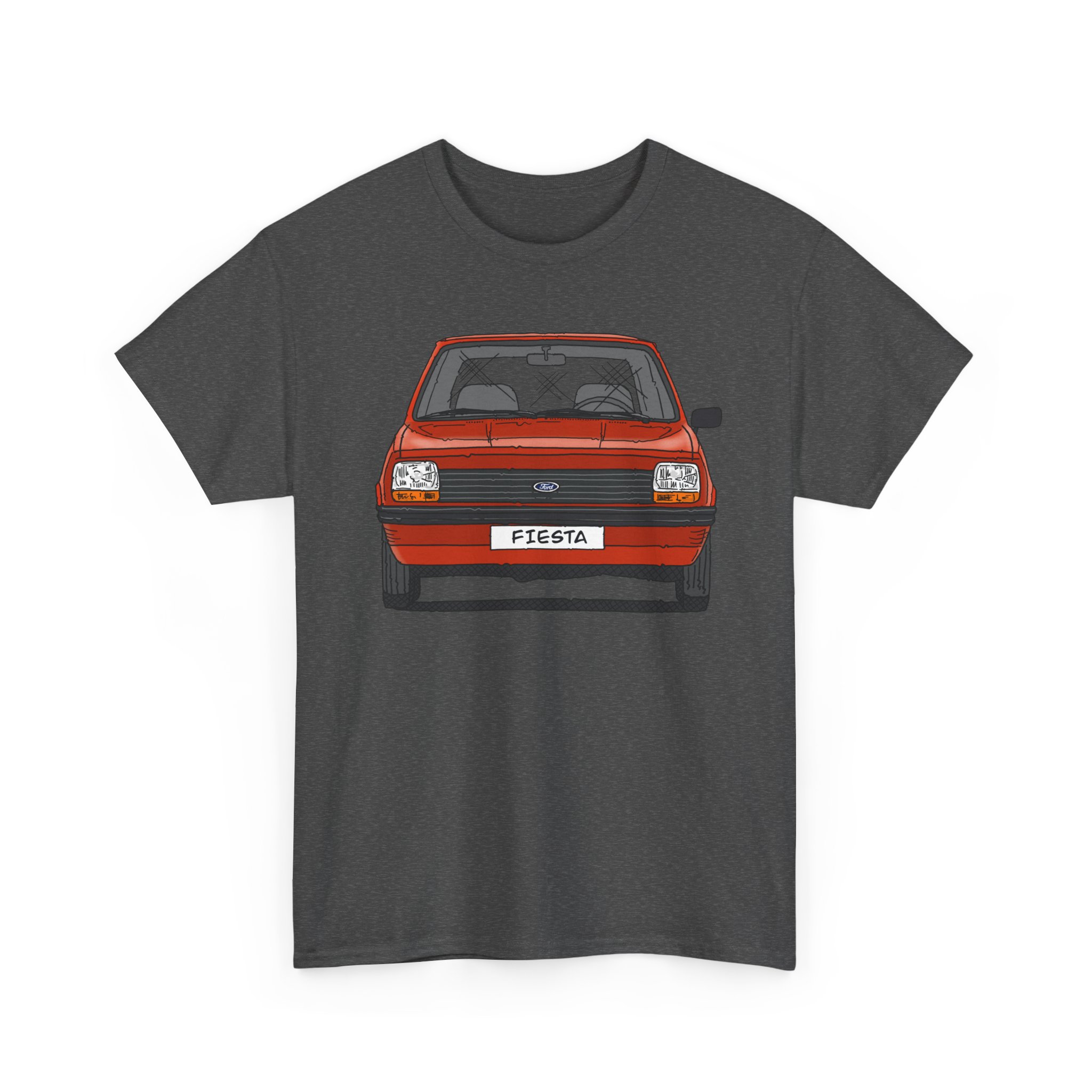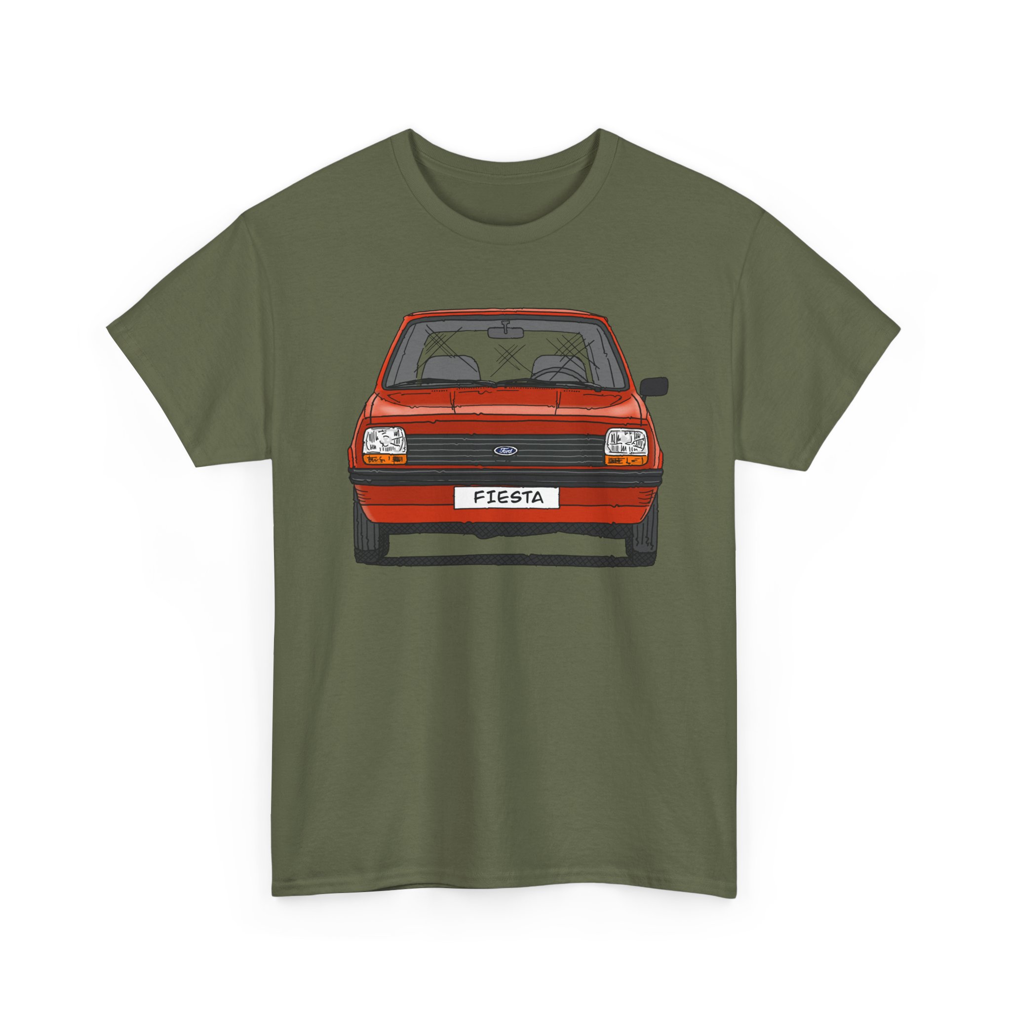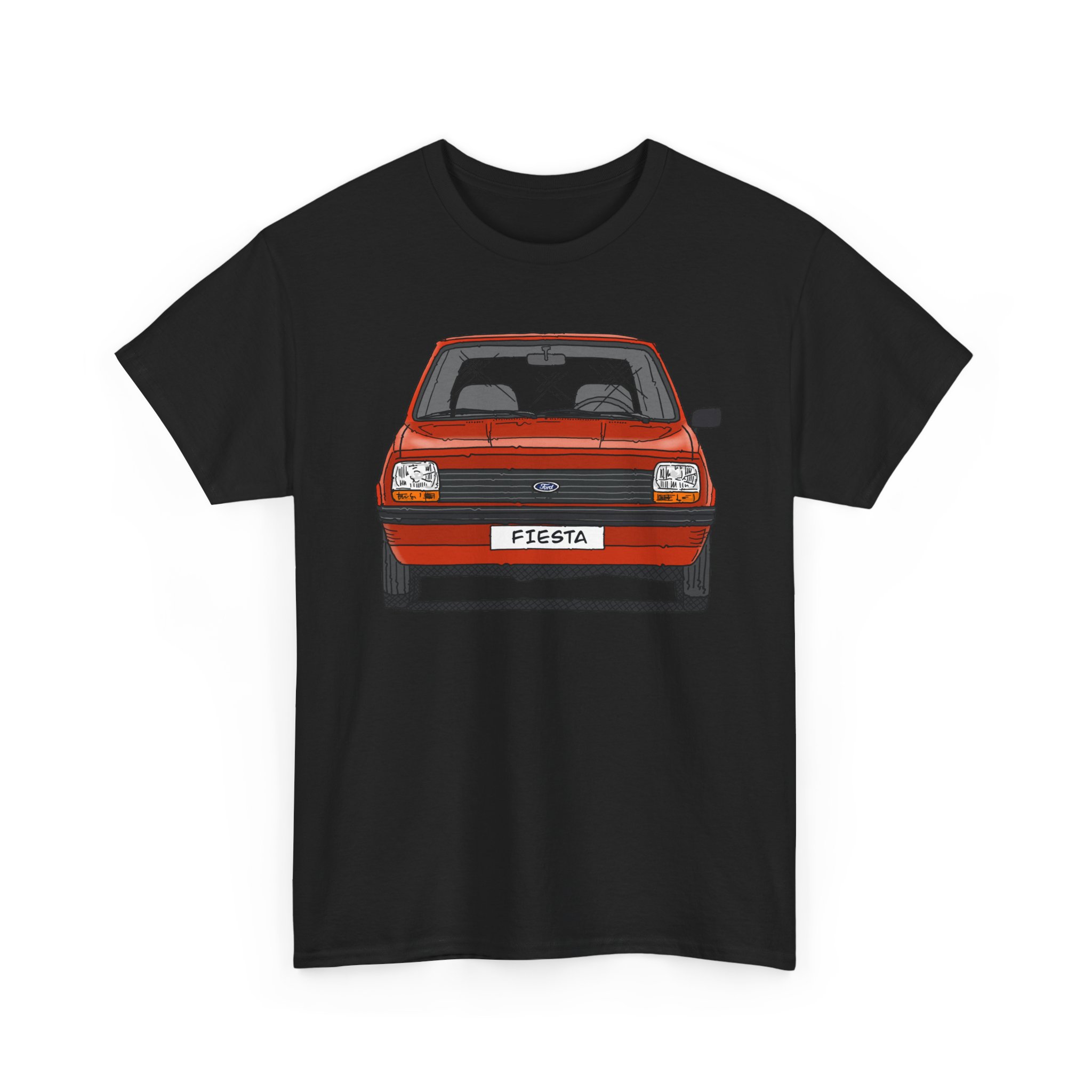 T-Shirt, Ford Fiesta 76, Strichzeichnung, Rot, Wunsch-Kennzeichen möglich