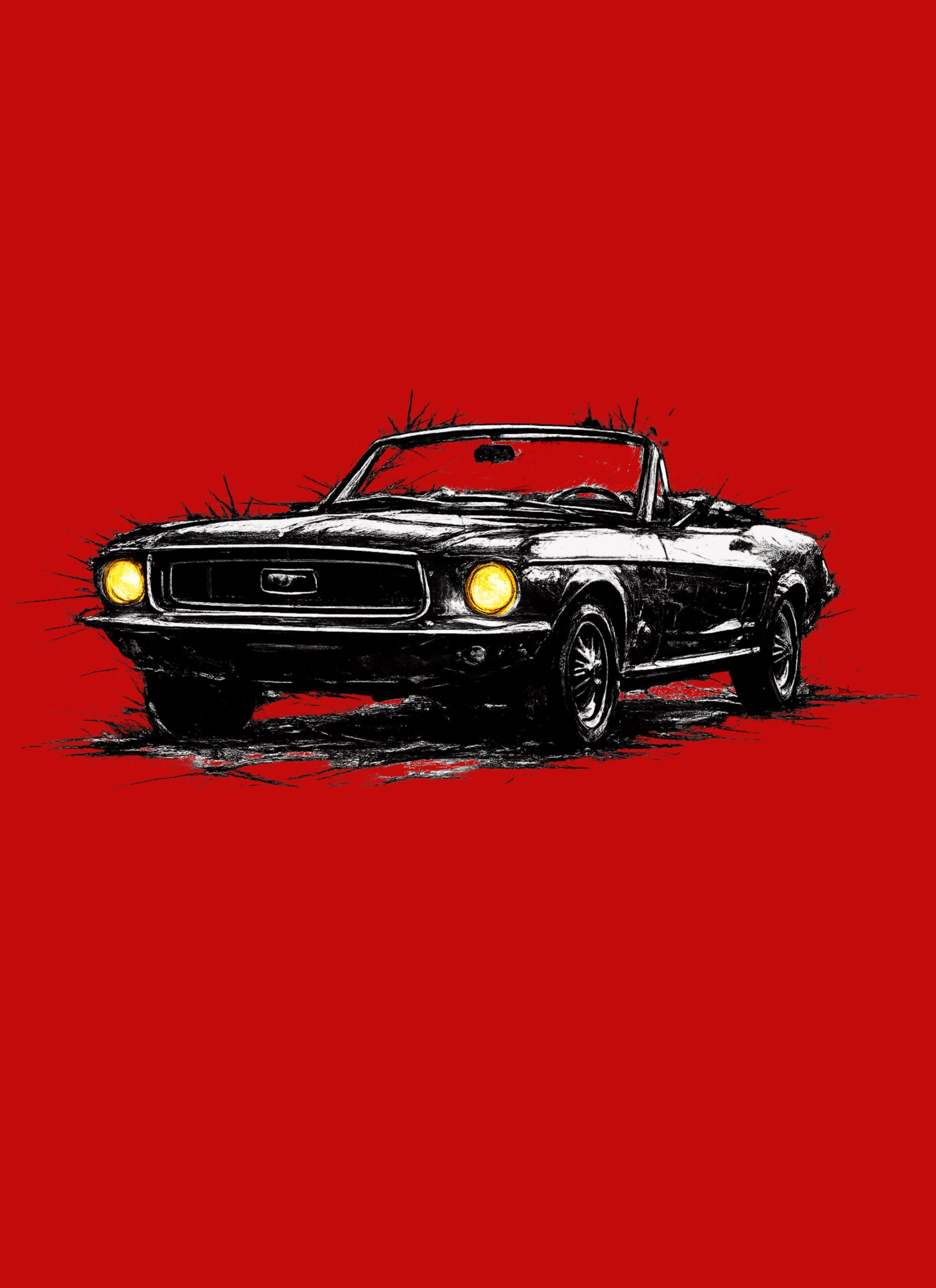T-Shirt, Ford Mustang Convertible, Kritzel-Kratzel-Auto, großer feiner Druck