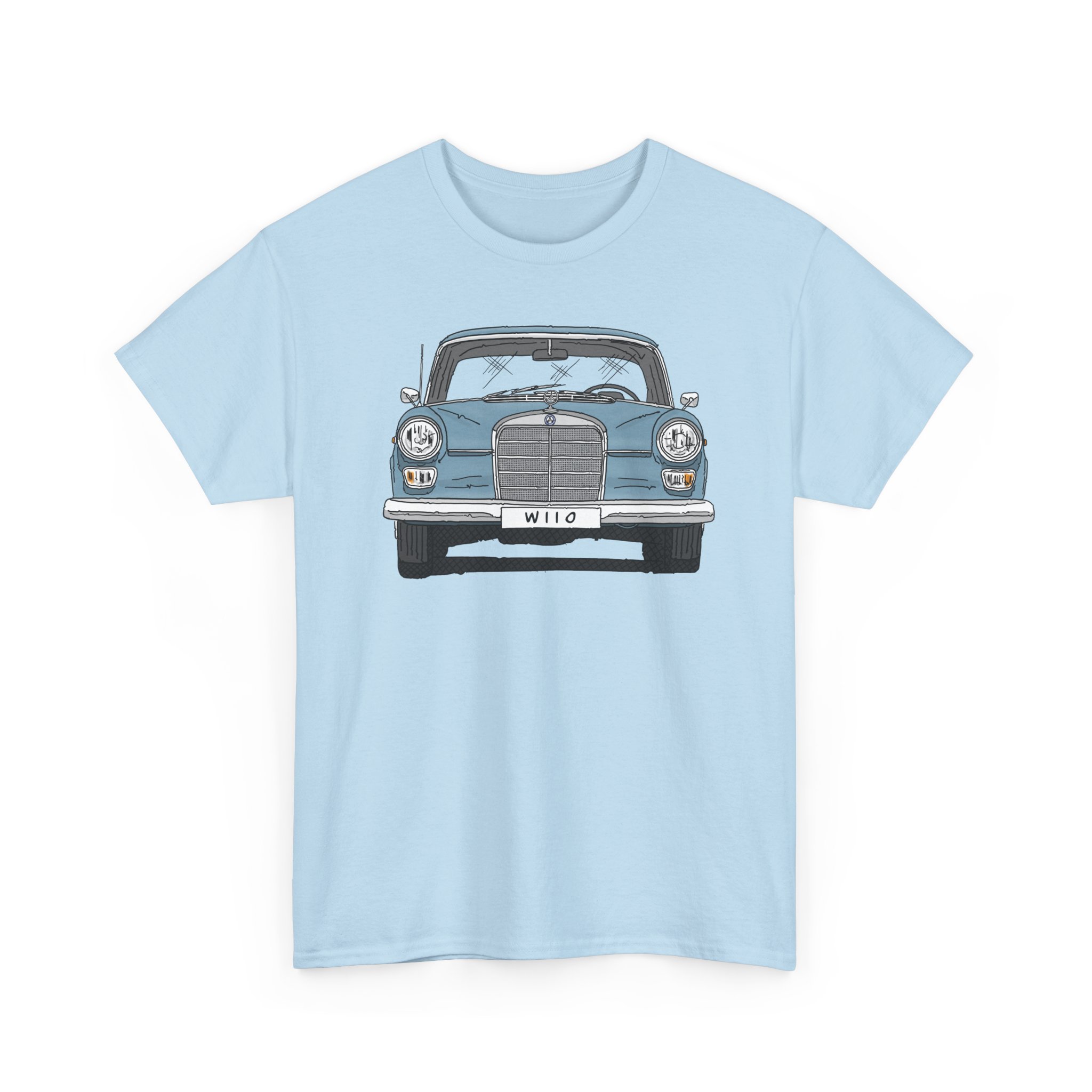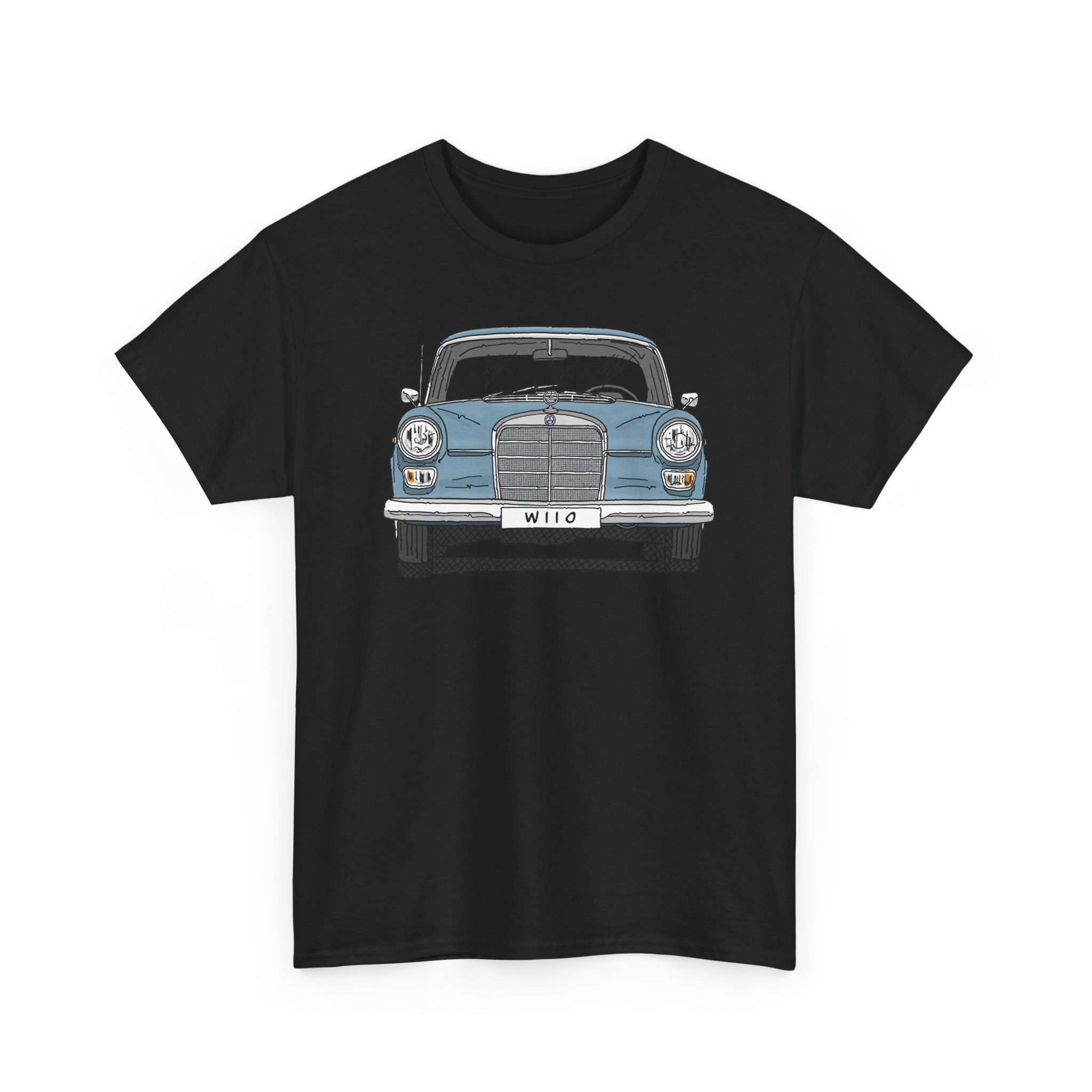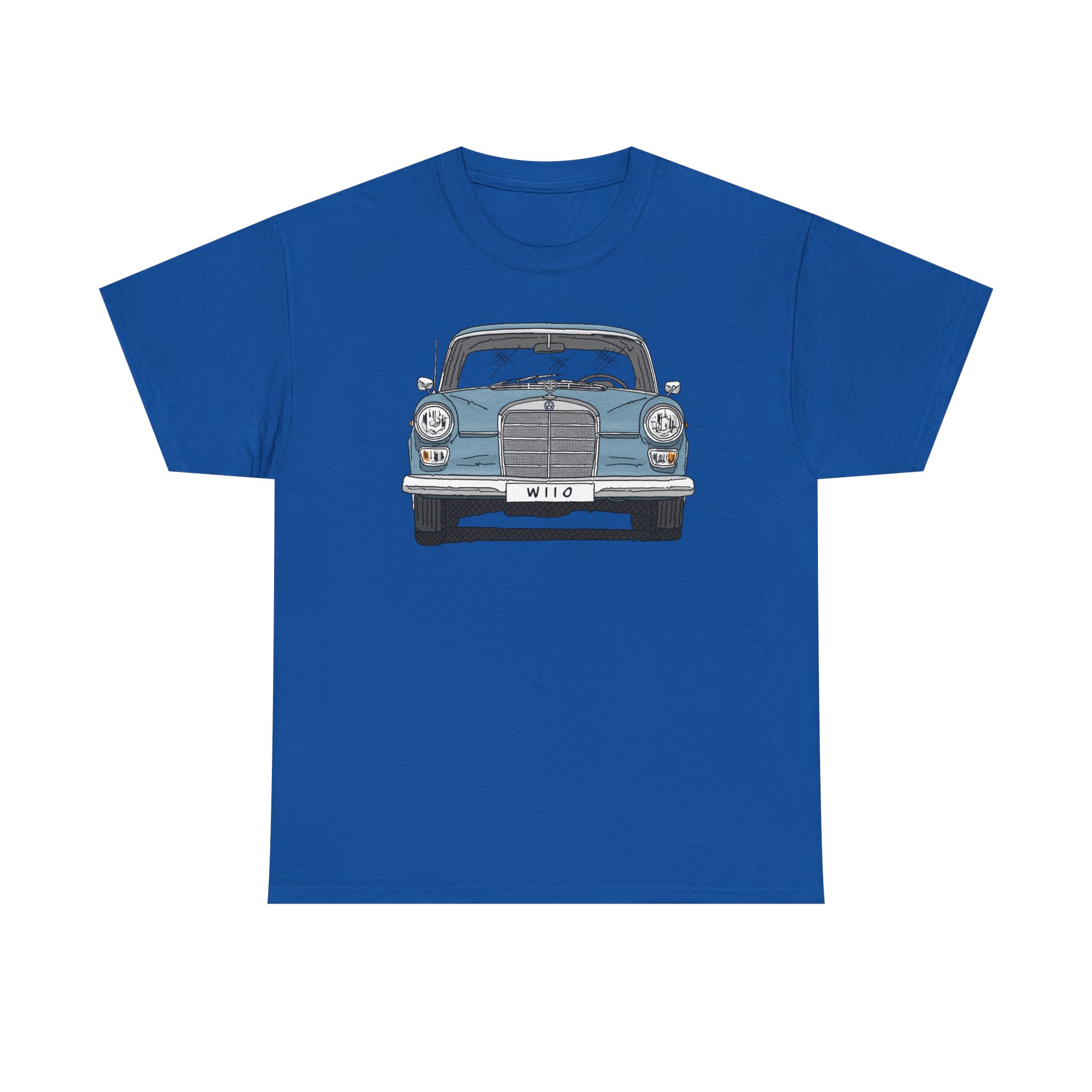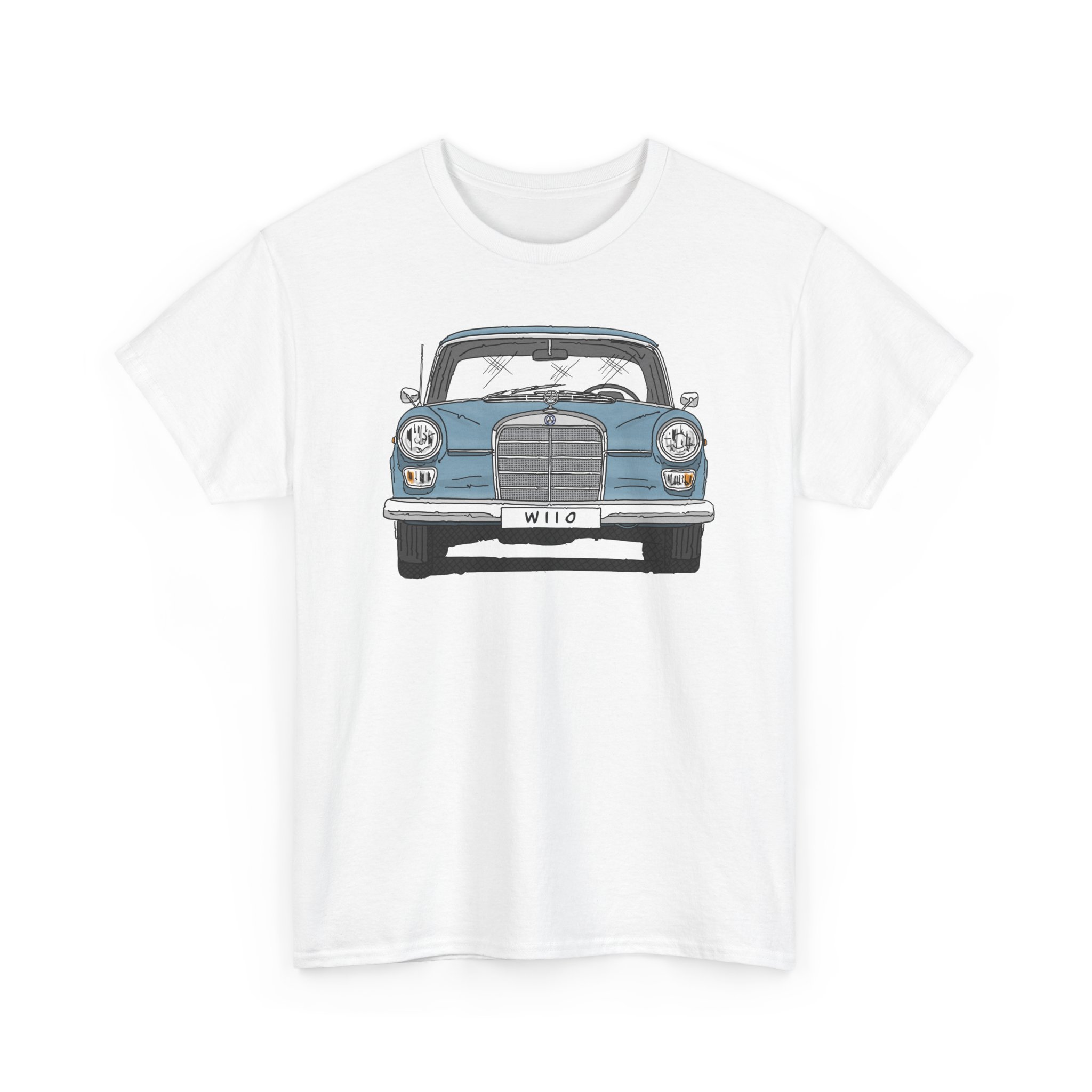 T-Shirt, Mercedes W110, Heckflosse, Strichzeichnung, Blau, Wunschkennzeichen möglich