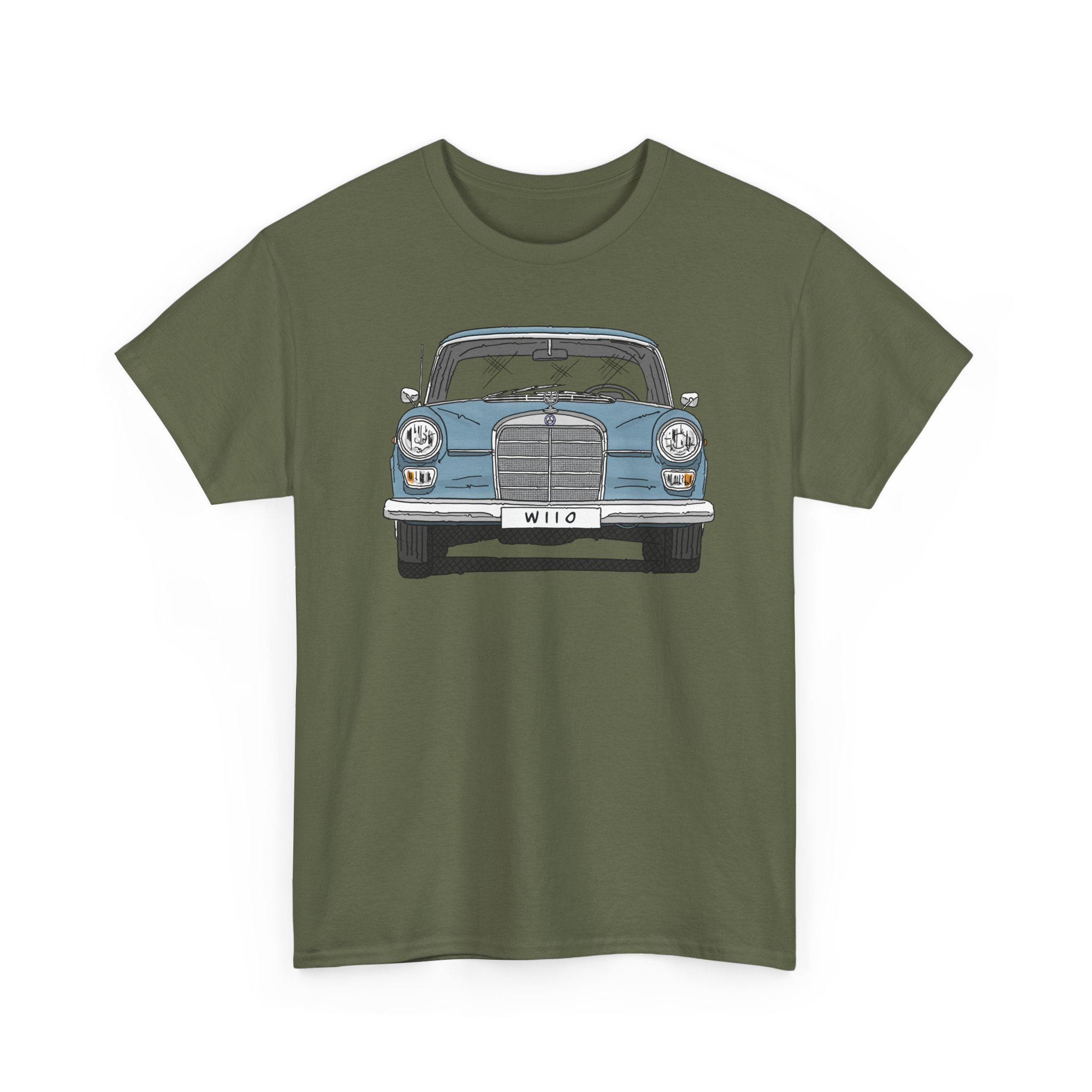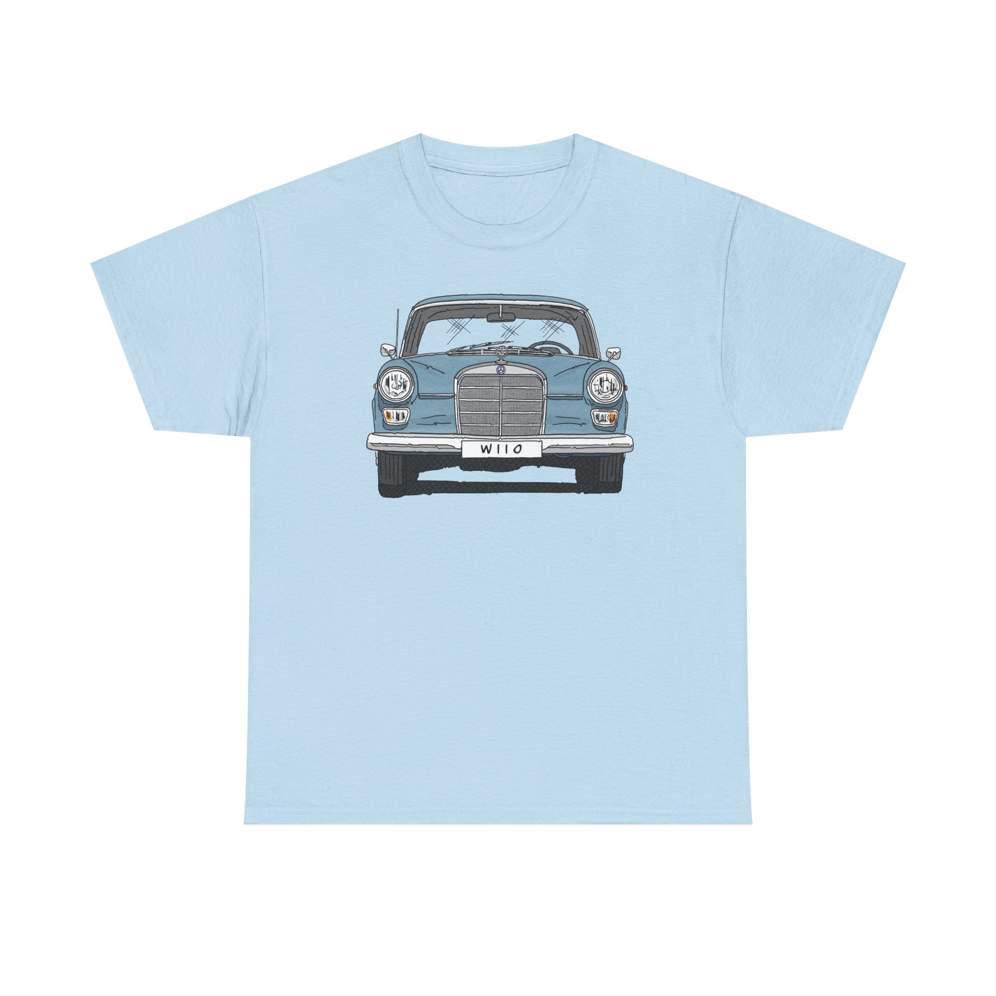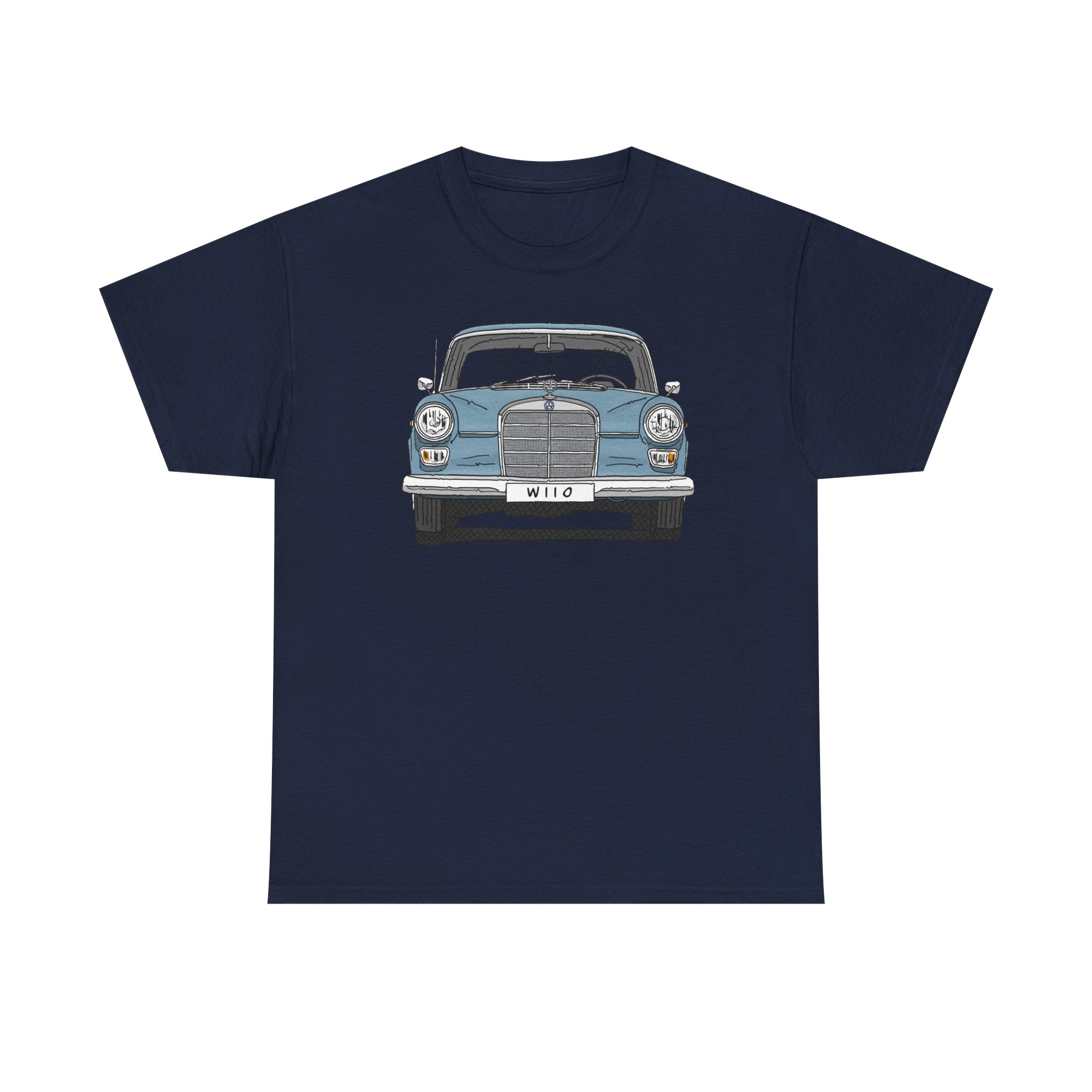 T-Shirt, Mercedes W110, Heckflosse, Strichzeichnung, Blau, Wunschkennzeichen möglich