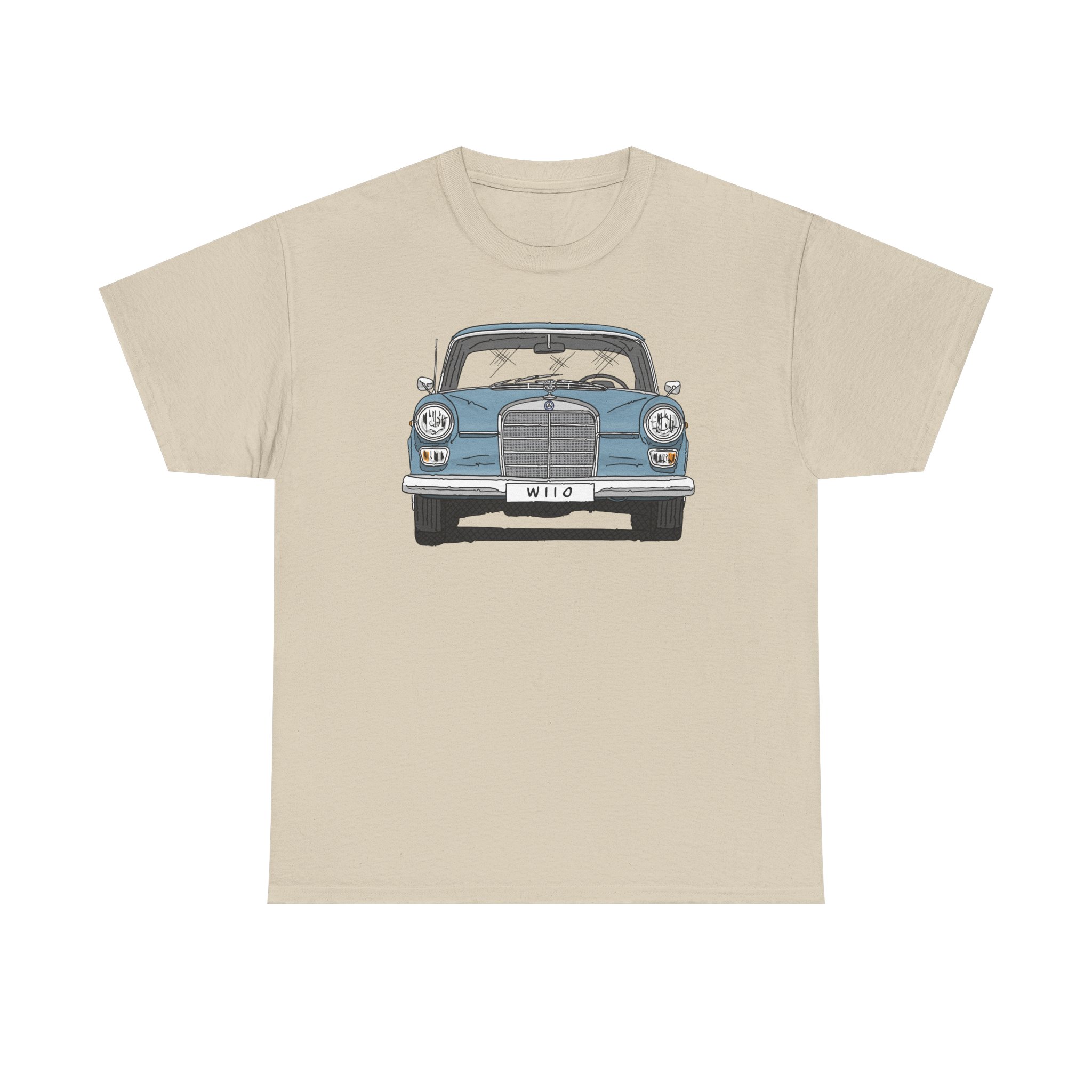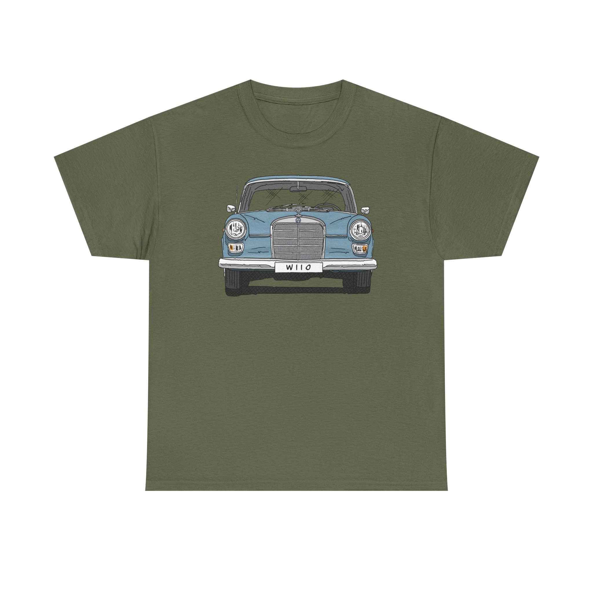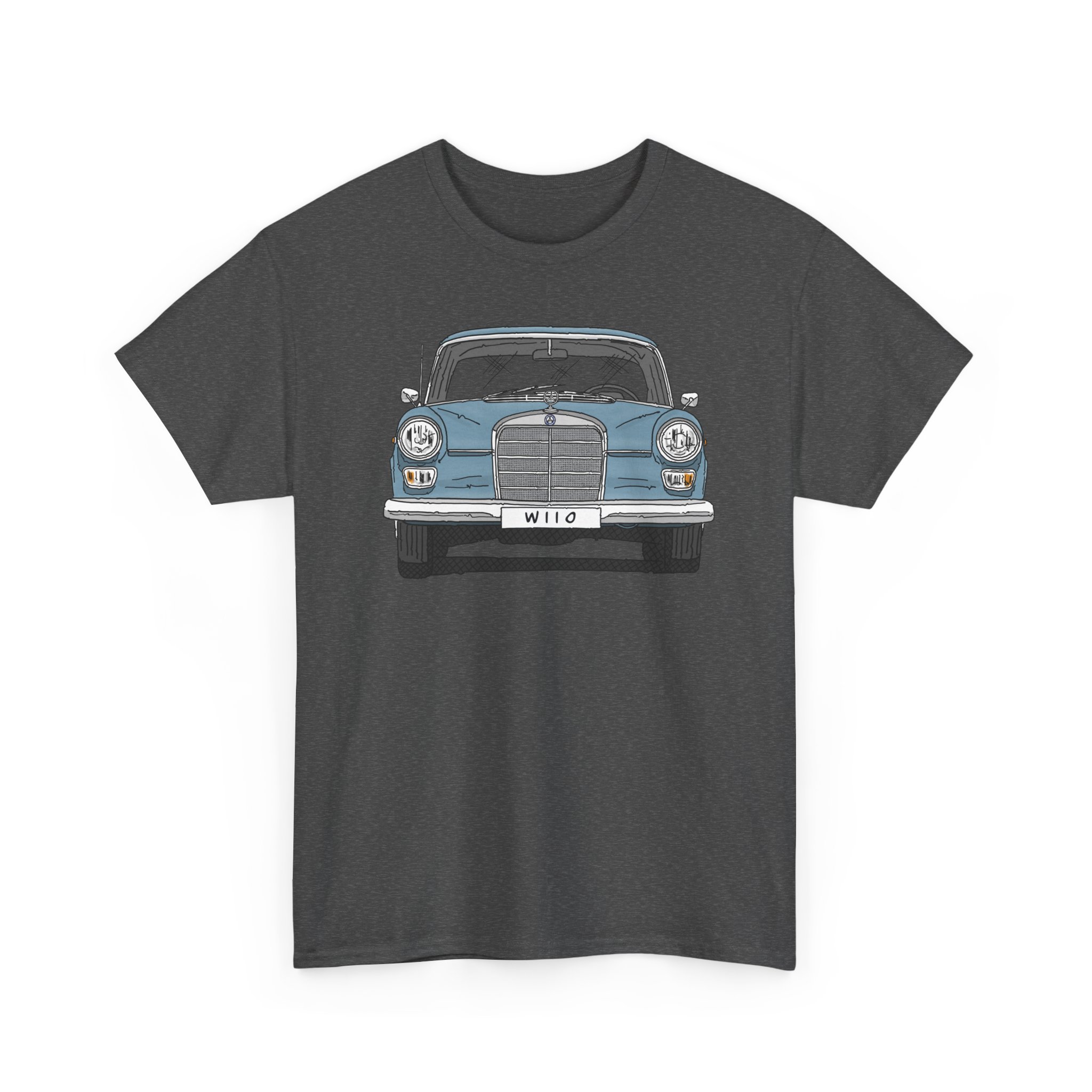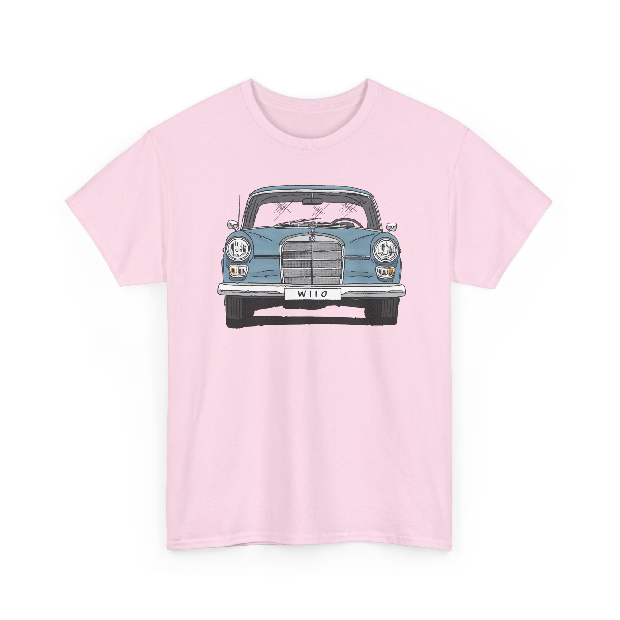 T-Shirt, Mercedes W110, Heckflosse, Strichzeichnung, Blau, Wunschkennzeichen möglich