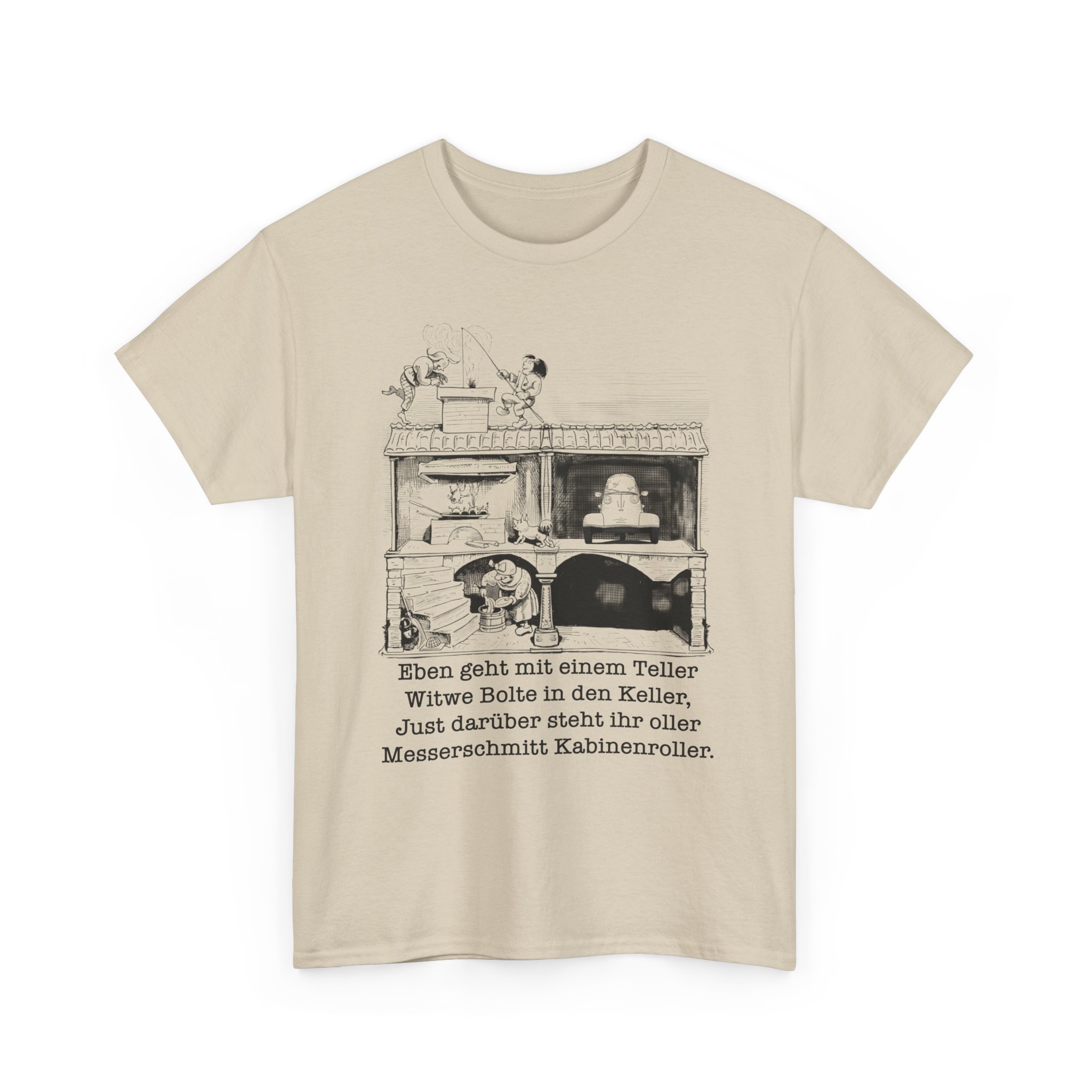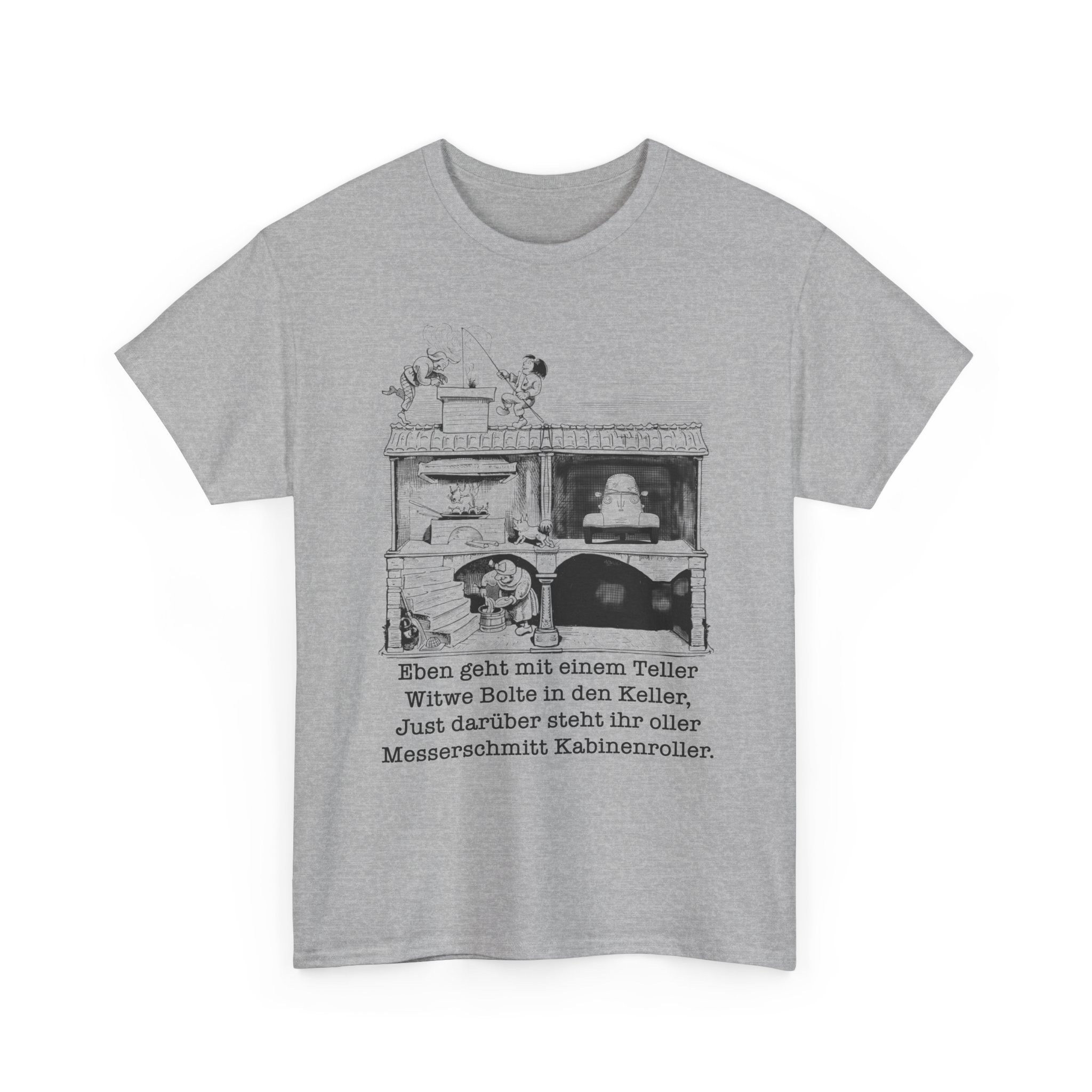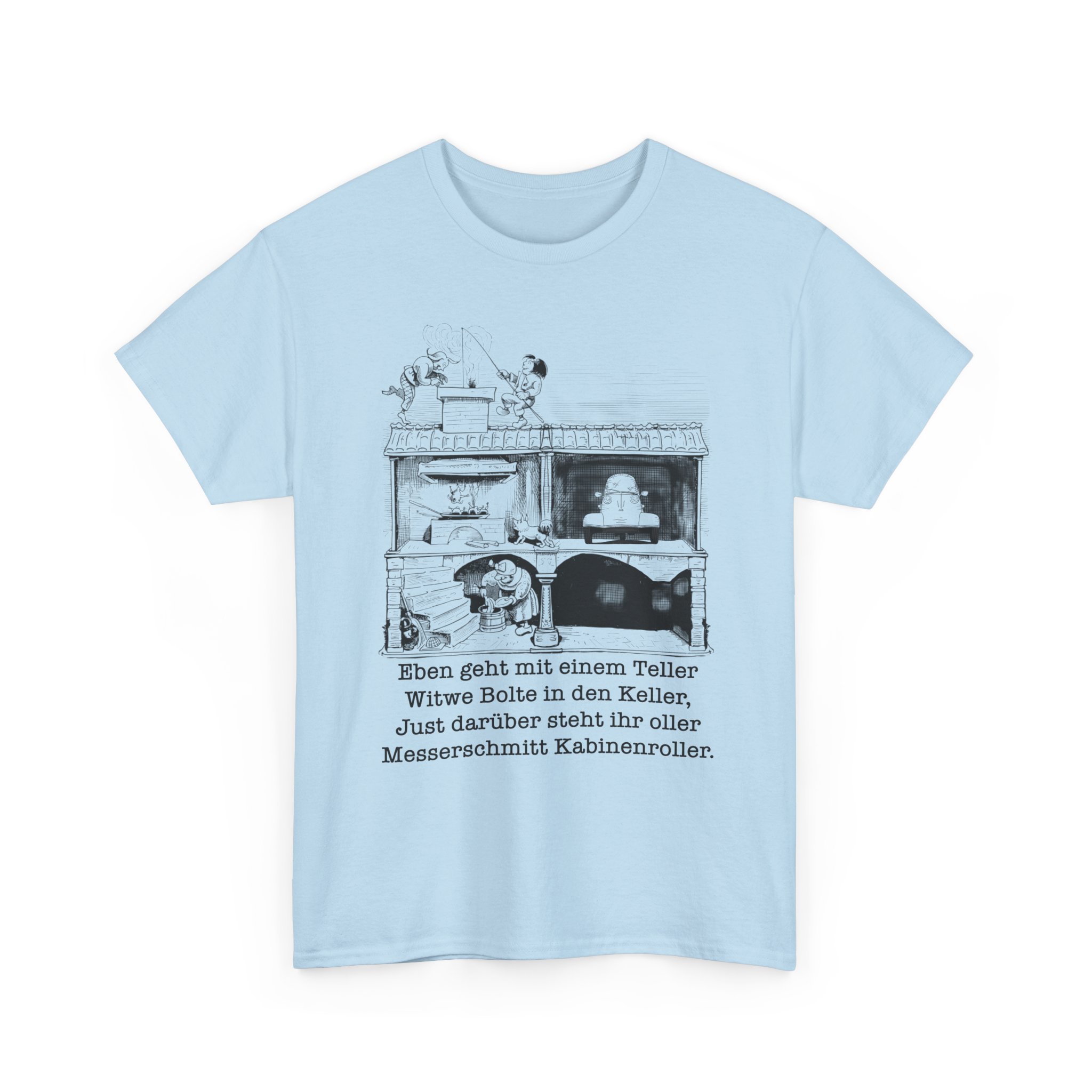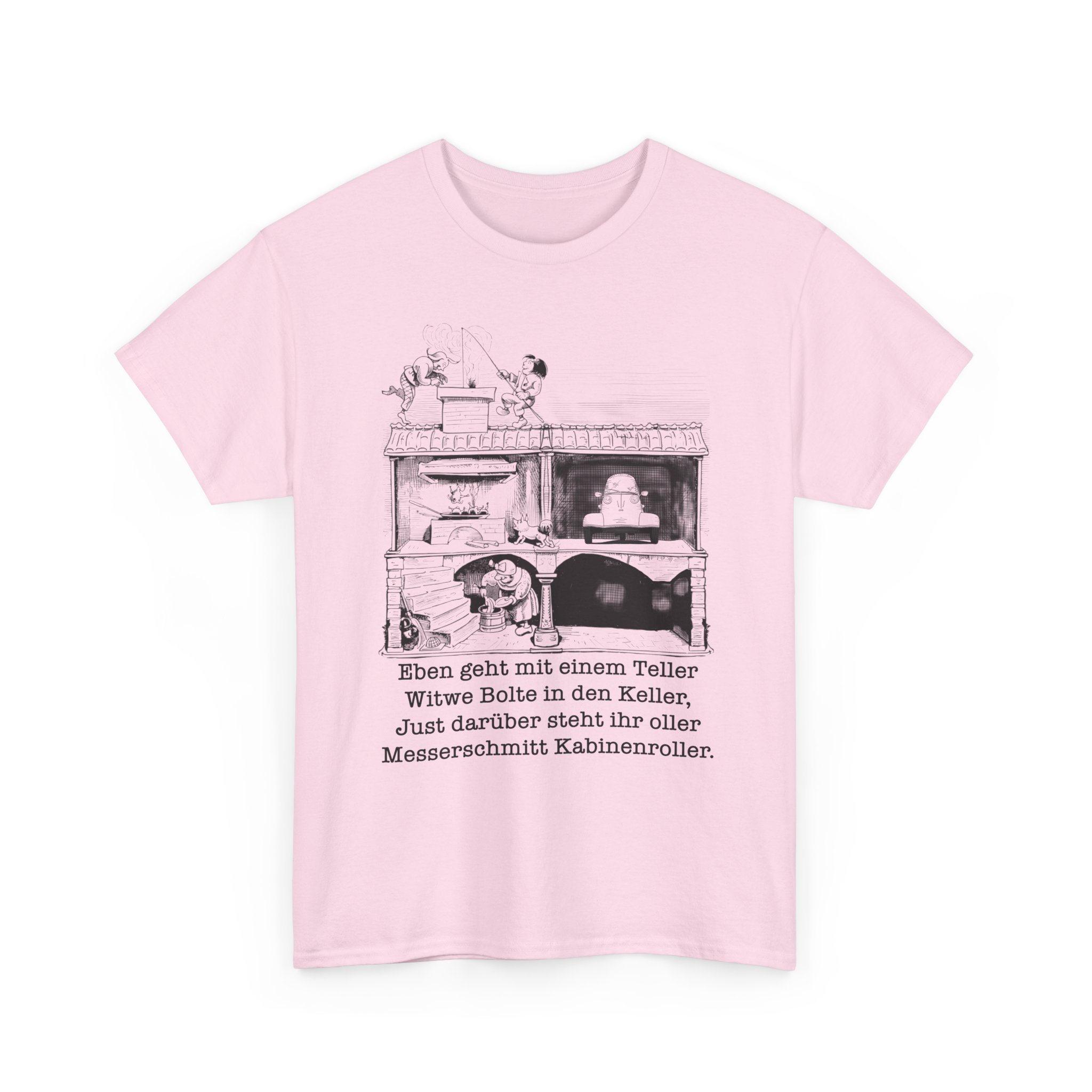 T-Shirt, Messerschmitt Kabinenroller, Max und Moritz – Witwe Boltes Karo