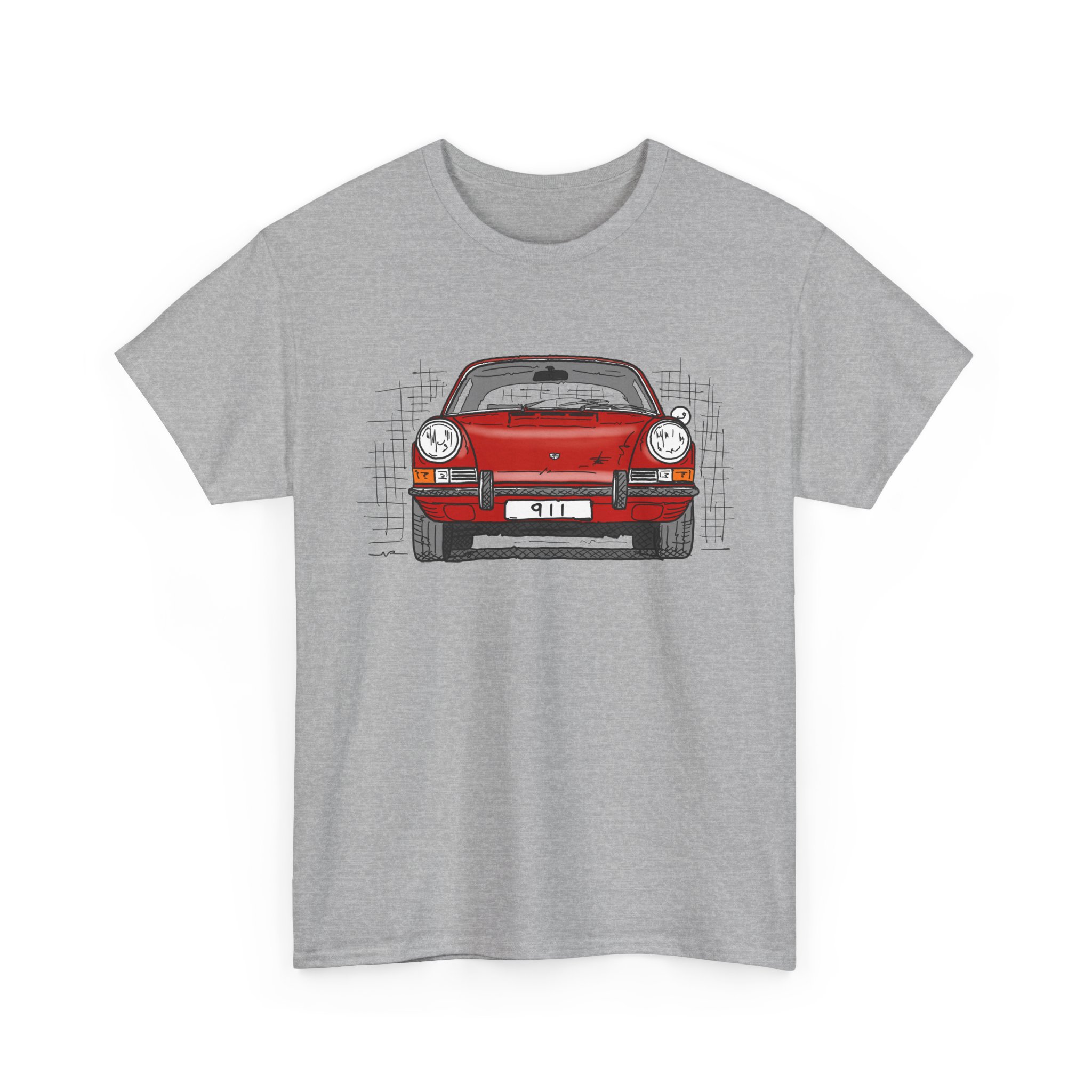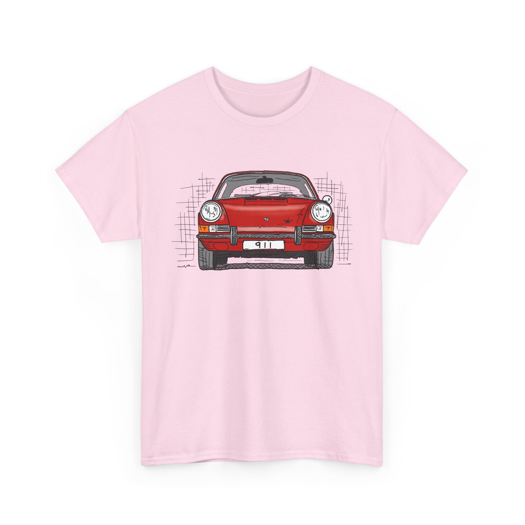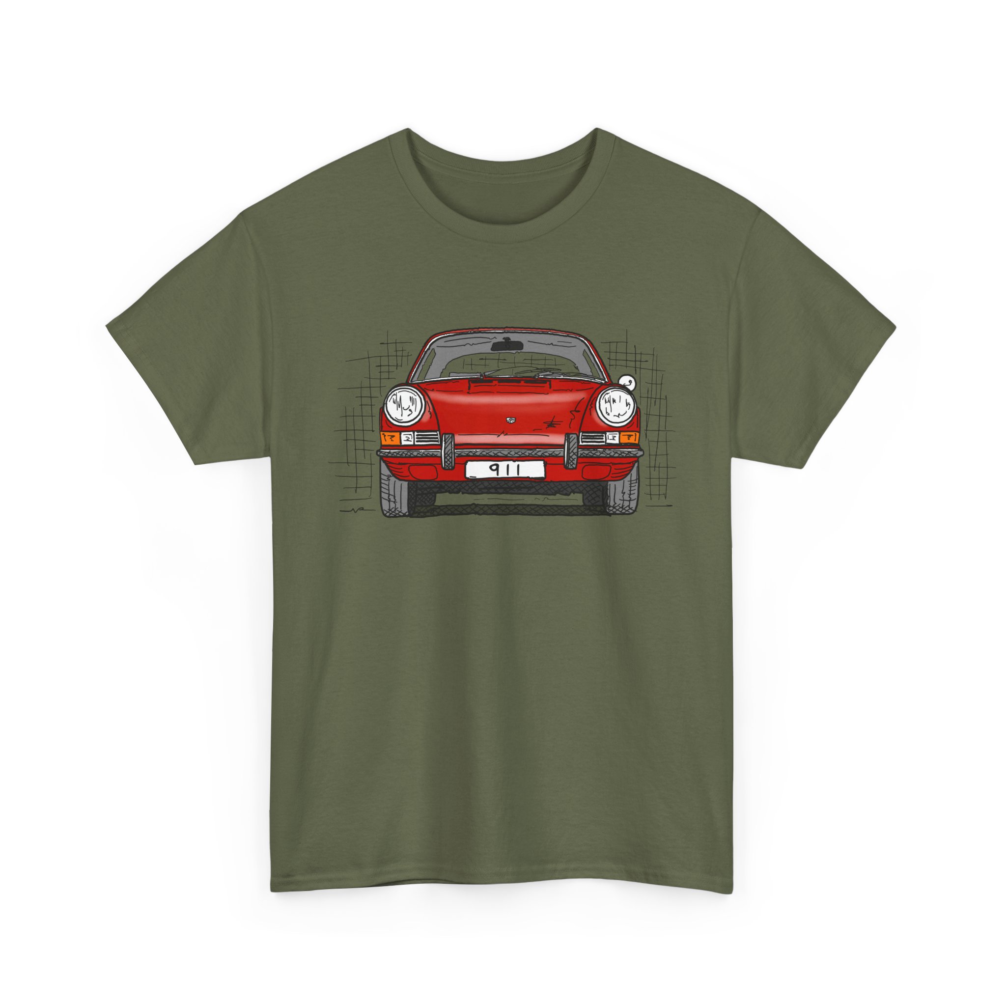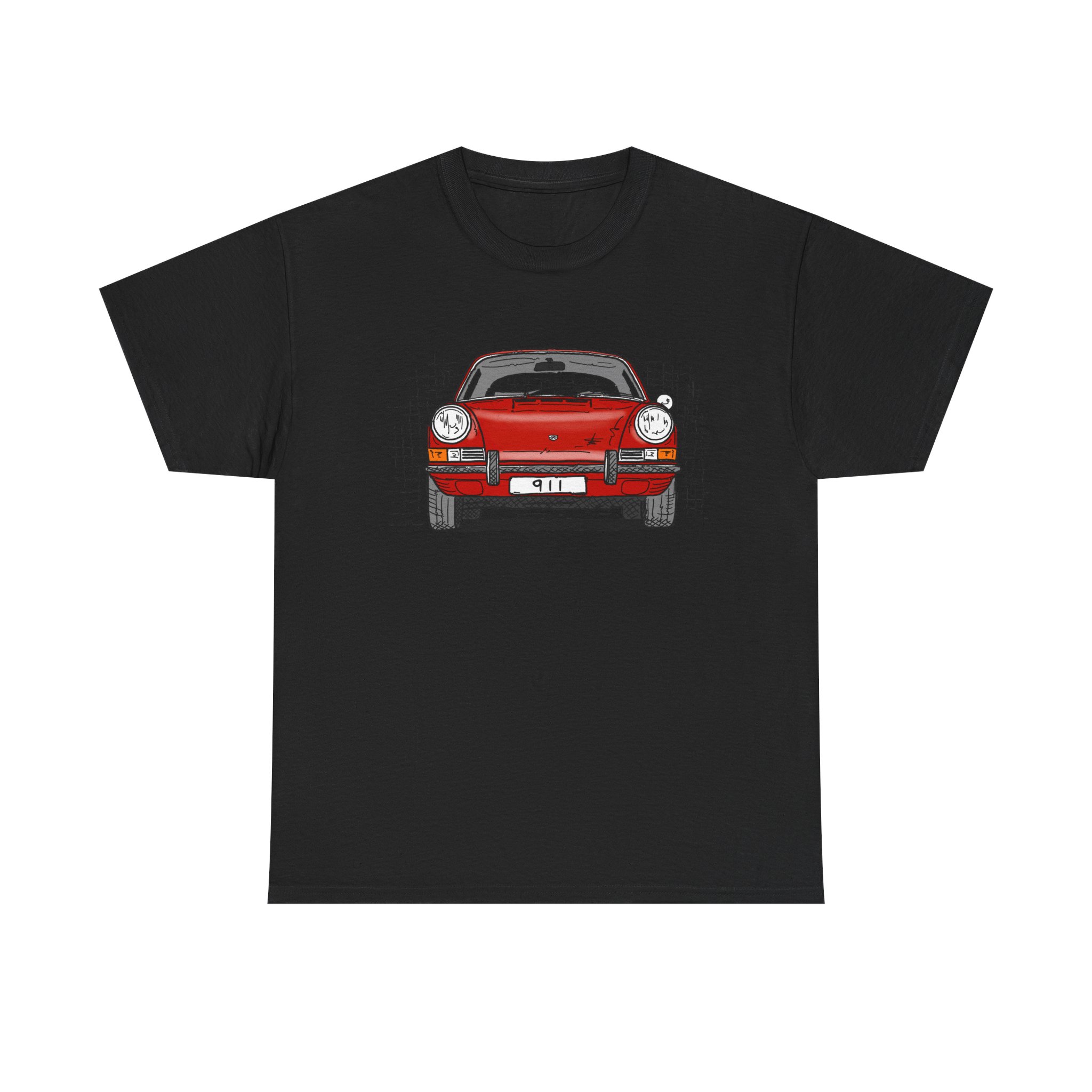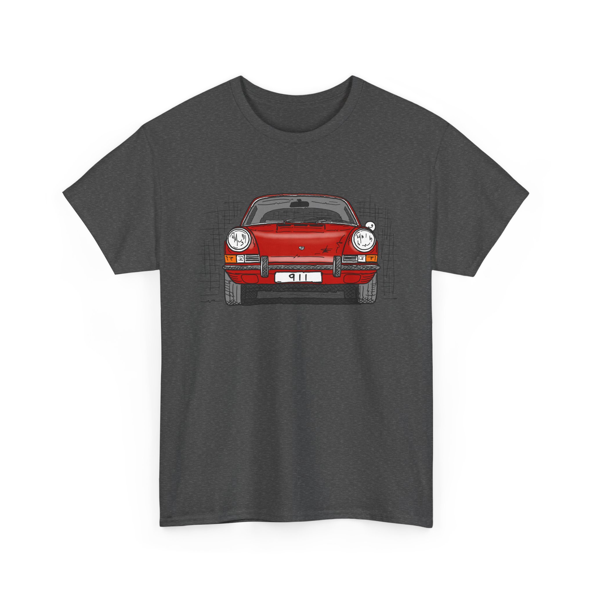 T-Shirt, Porsche 911, F-Modell, Ur-Elfer, Strichzeichnung, Rot, personalisierbar