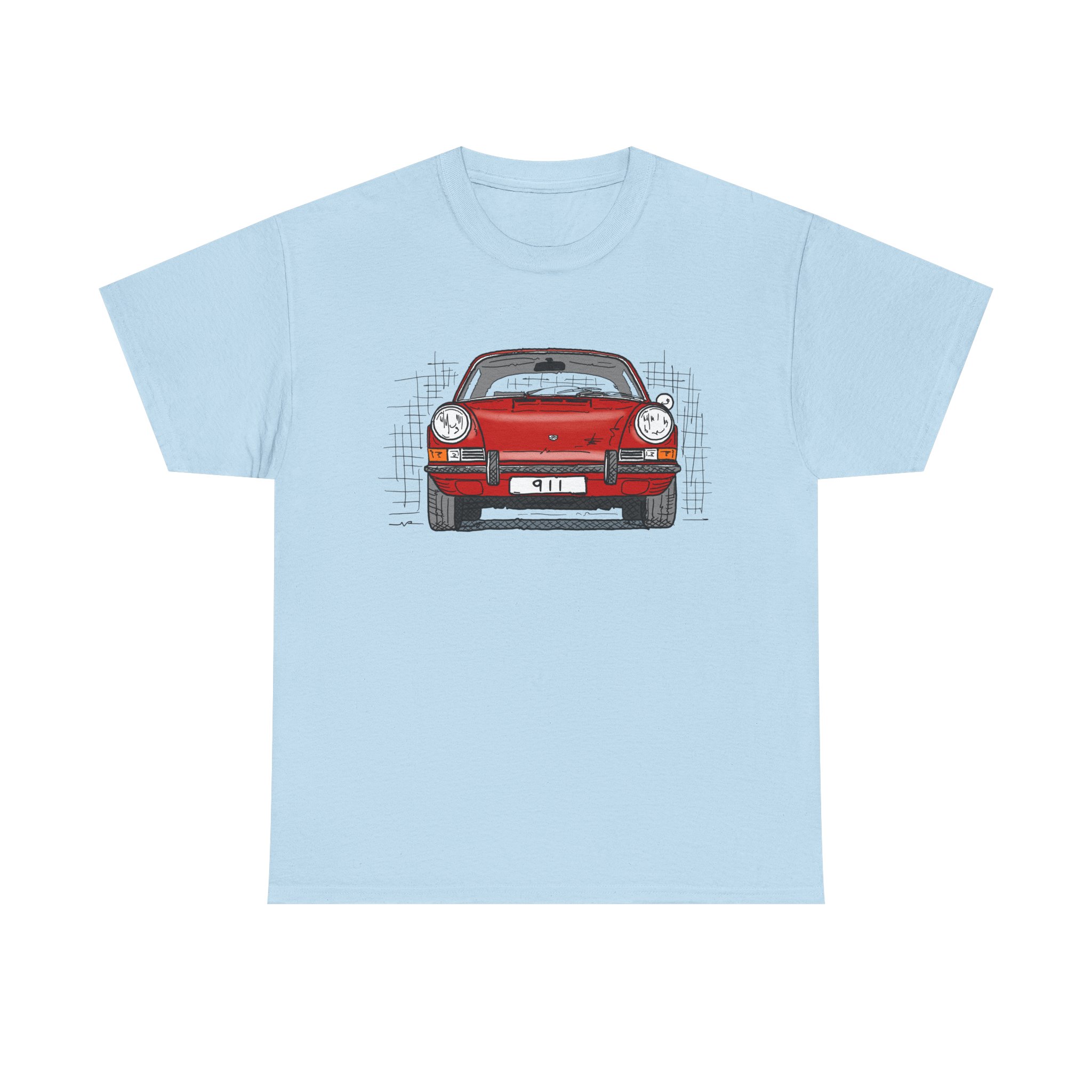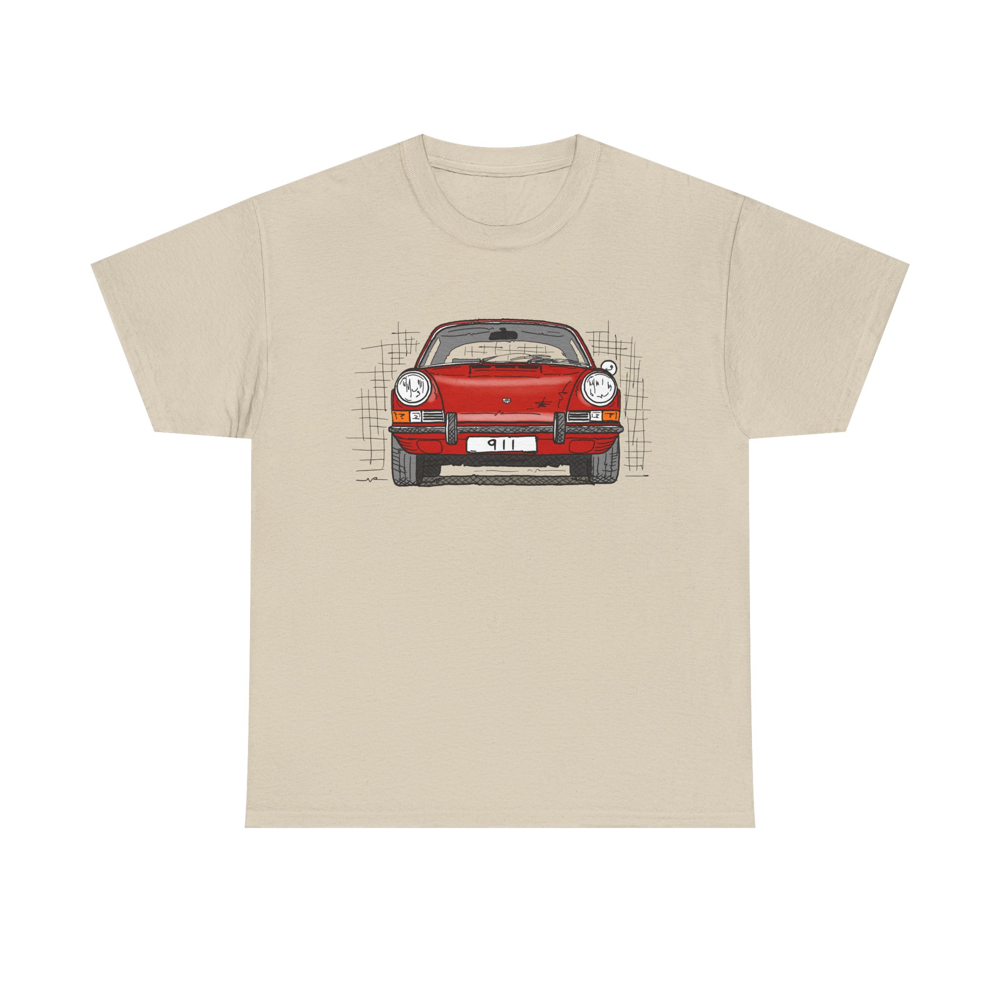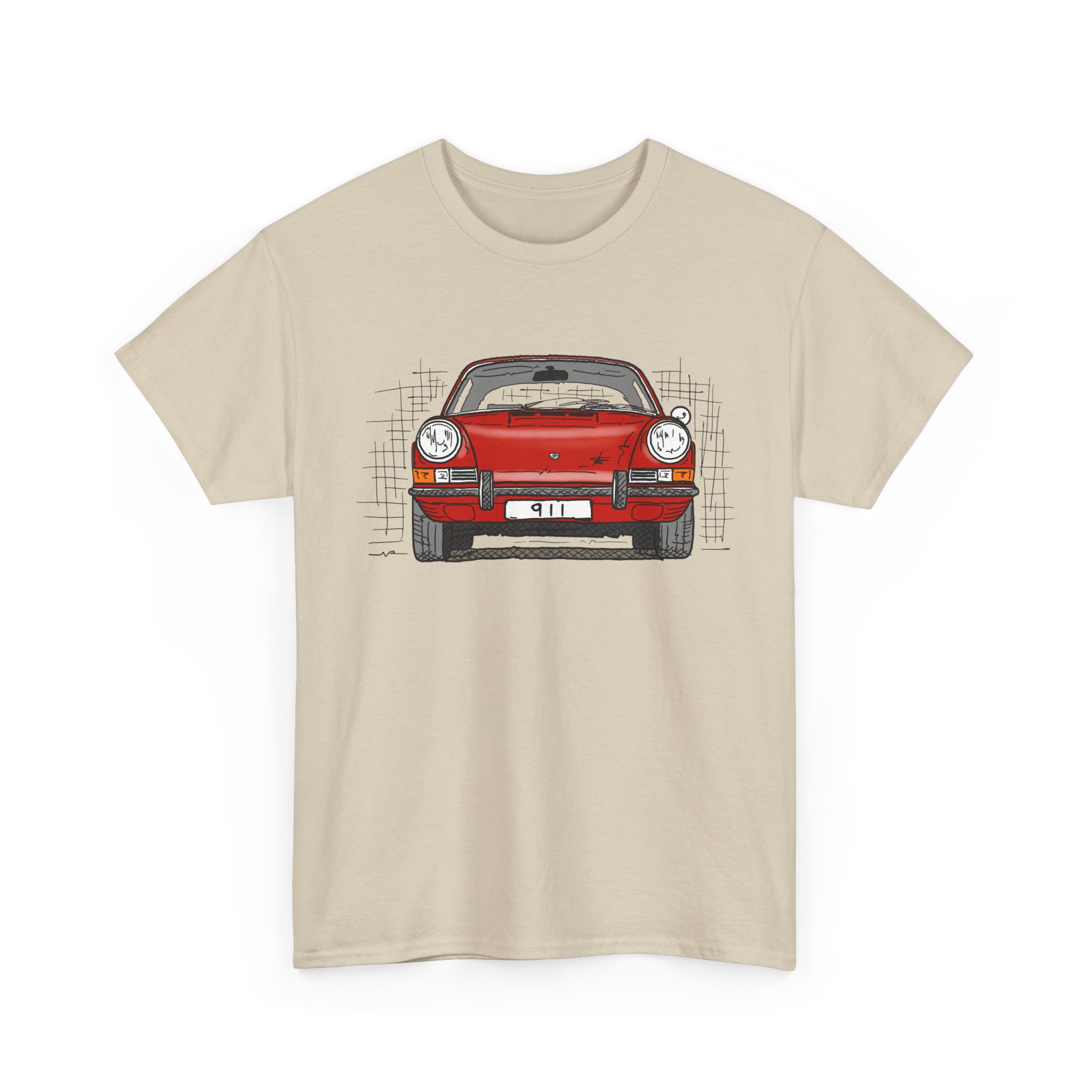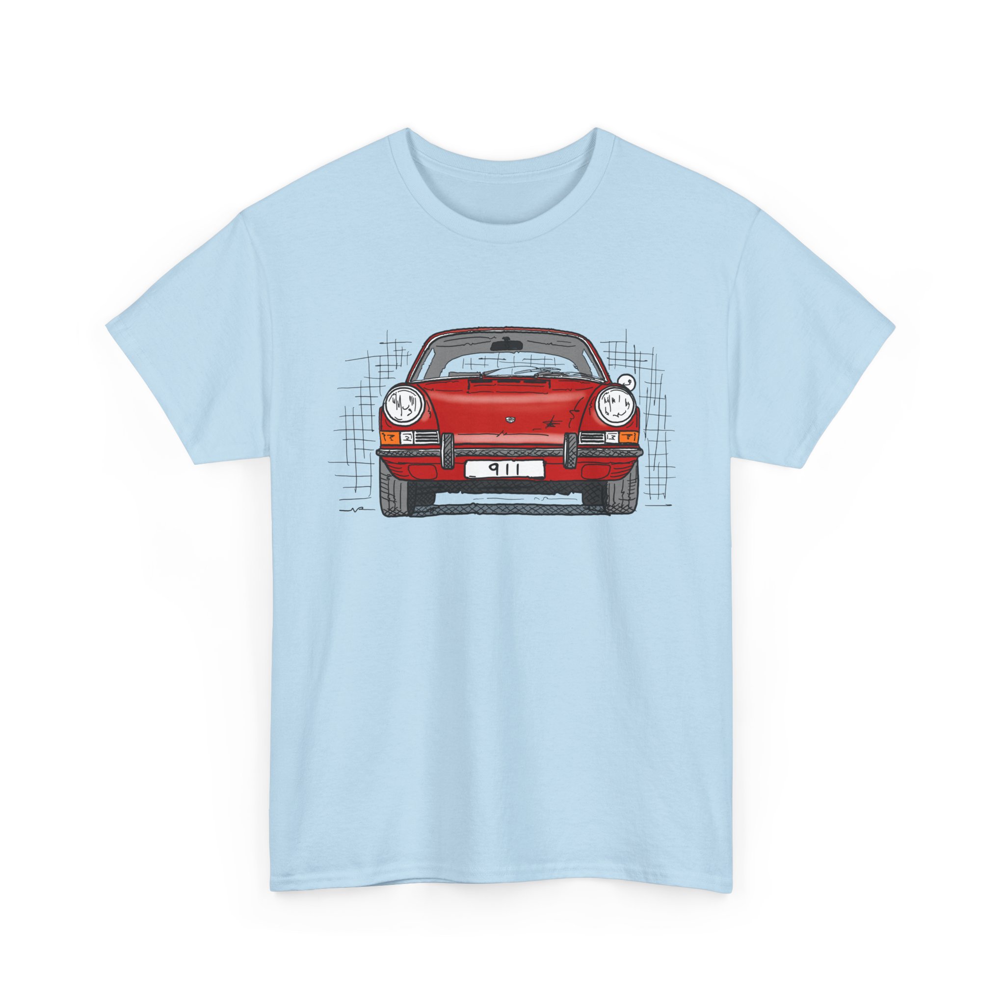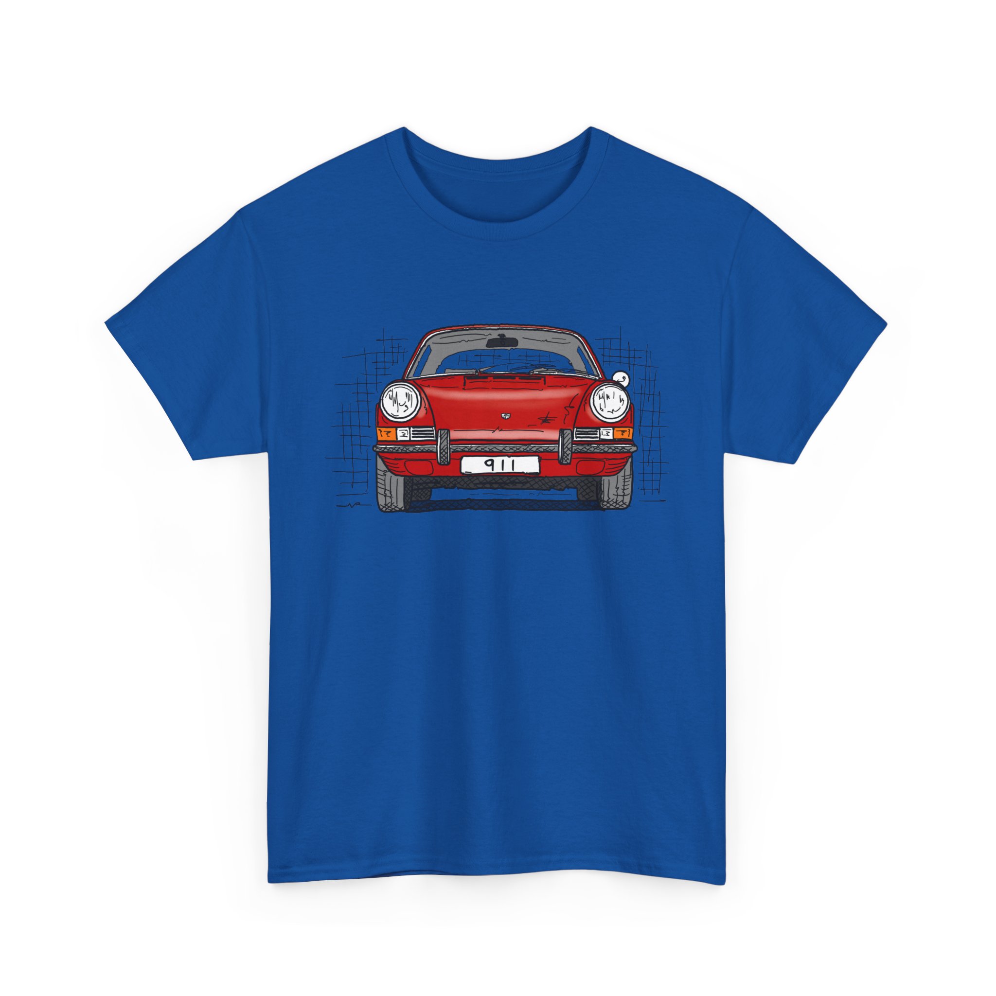 T-Shirt, Porsche 911, F-Modell, Ur-Elfer, Strichzeichnung, Rot, personalisierbar