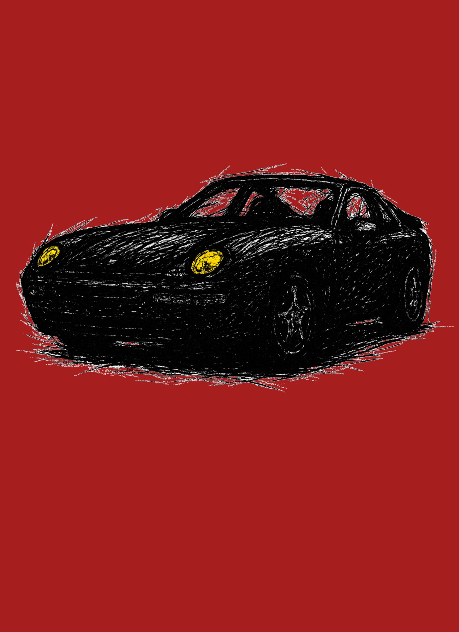 T-Shirt, Porsche 968, Kritzel-Kratzel-Auto, kleiner feiner Druck