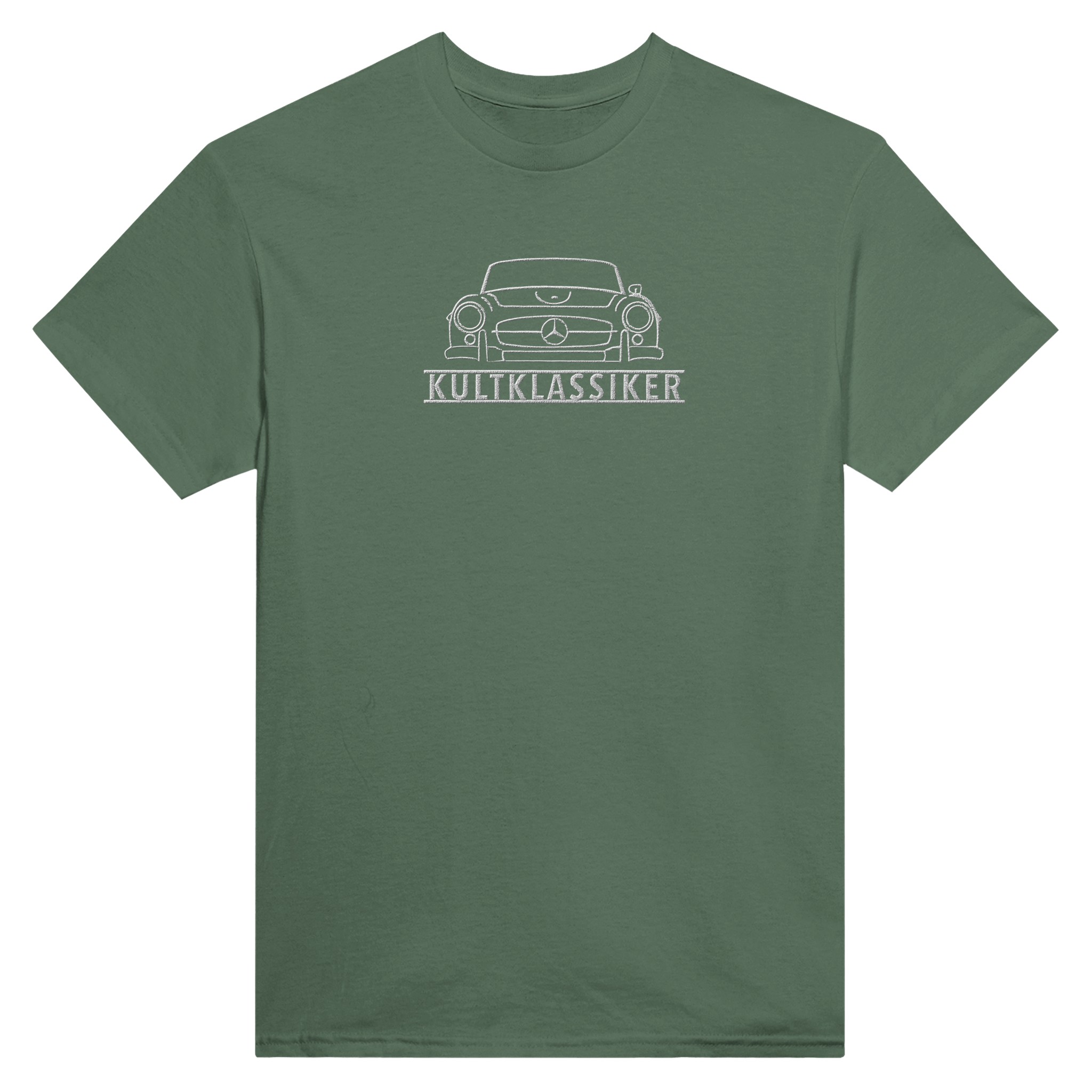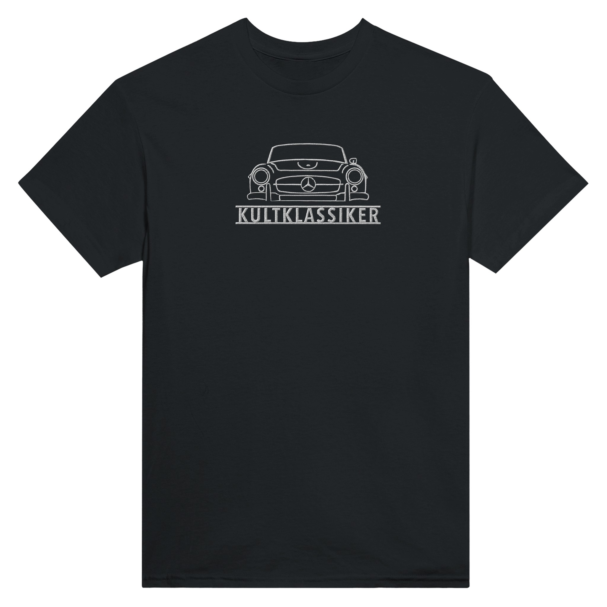 Die große Stickerei mit dem Text KULTKLASSIKER ist mittig auf der Brust angeordnet.