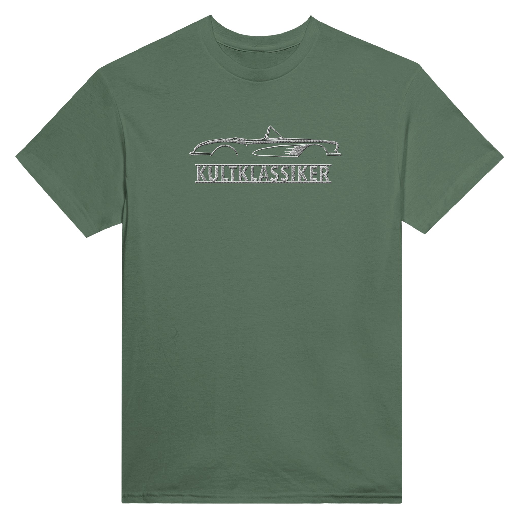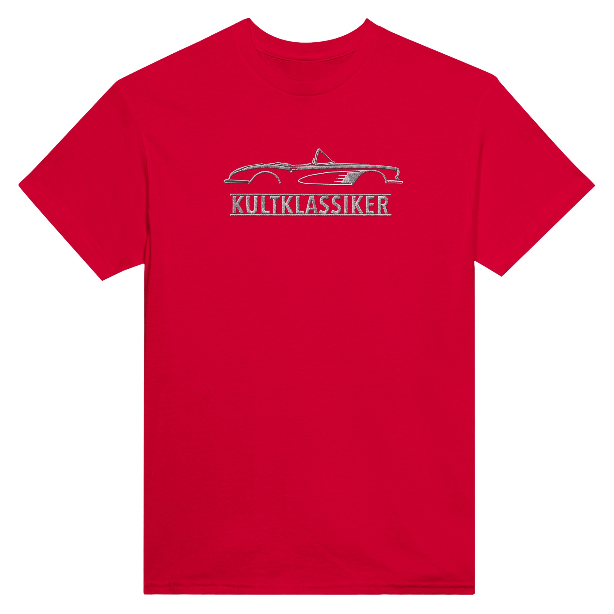Ein sehr edles Shirt, das die wundervolle Linie der ersten Corvette zeigt. Bestickt mit der Corvette der ersten Generation als Convertible und dem Text KULTKLASSIKER.