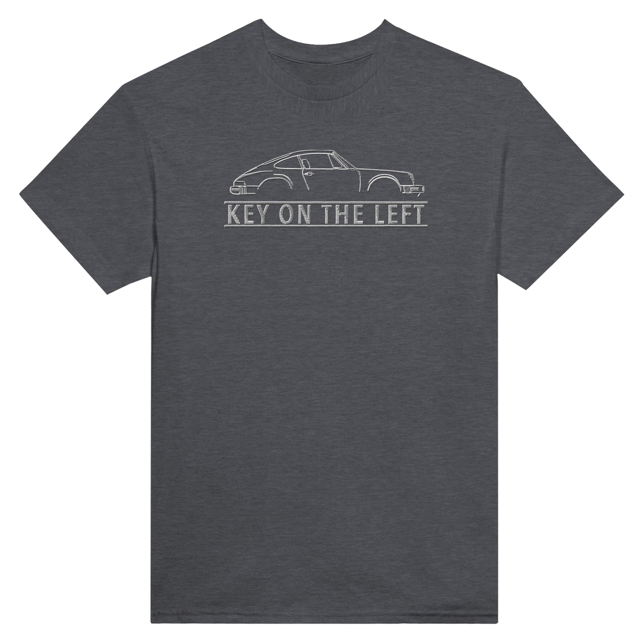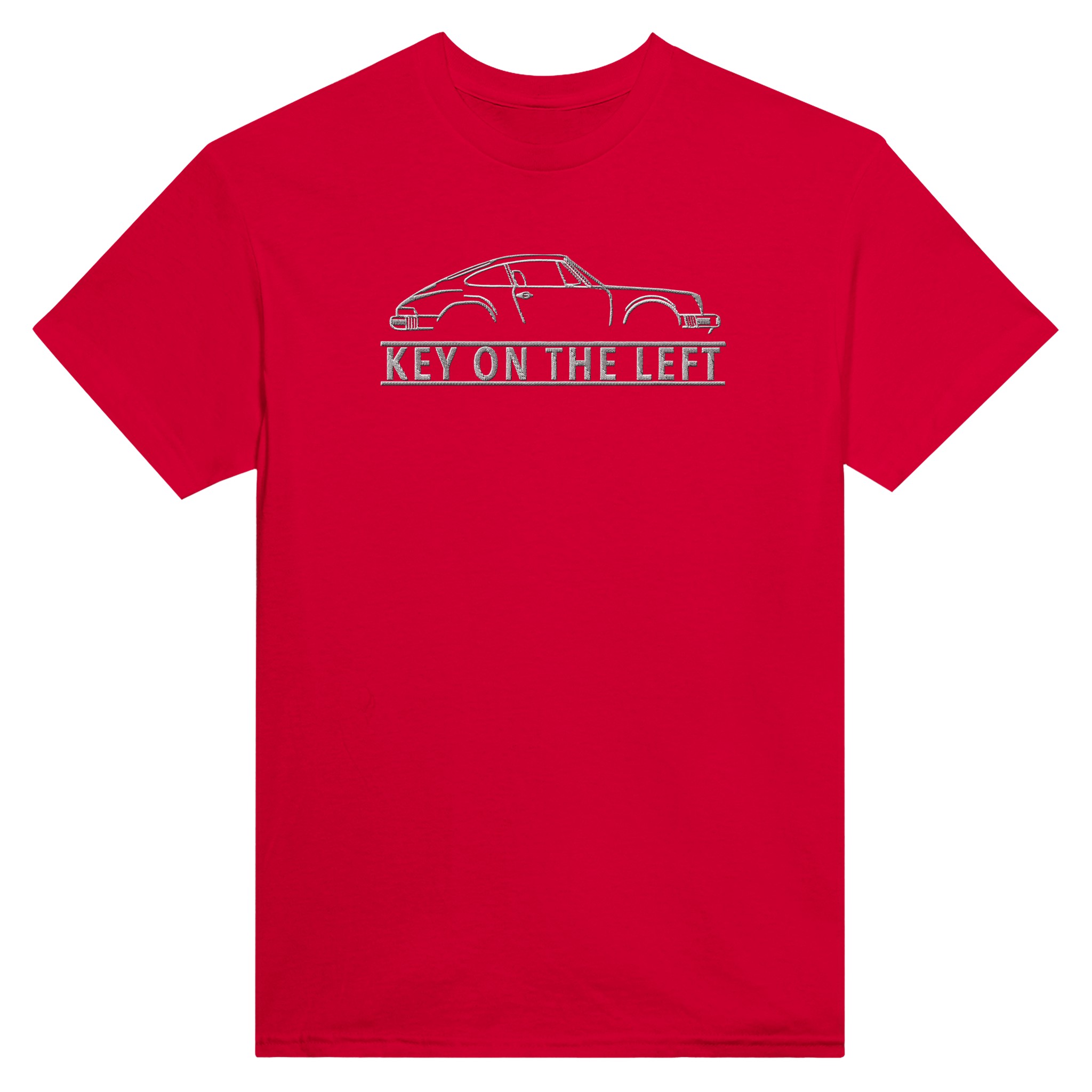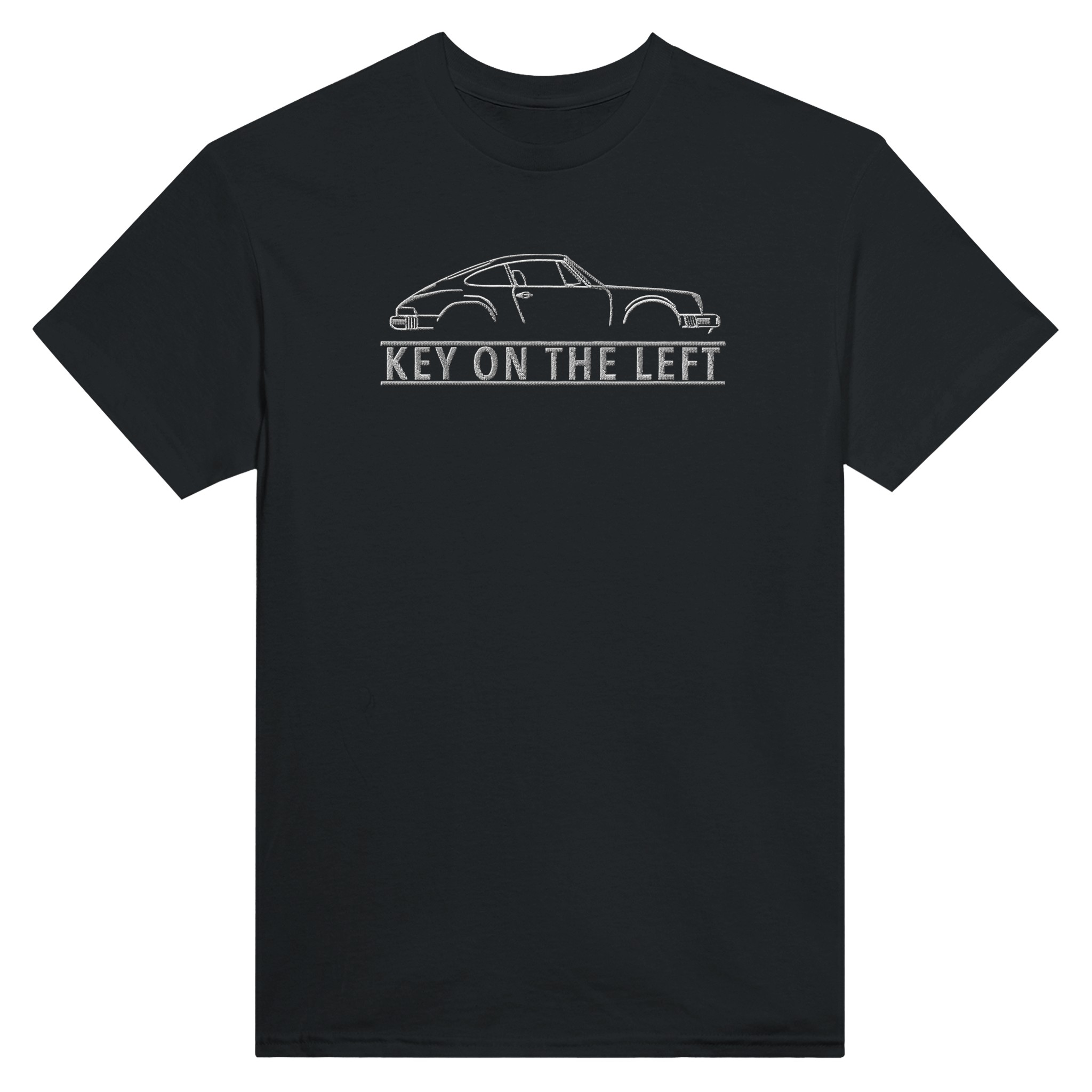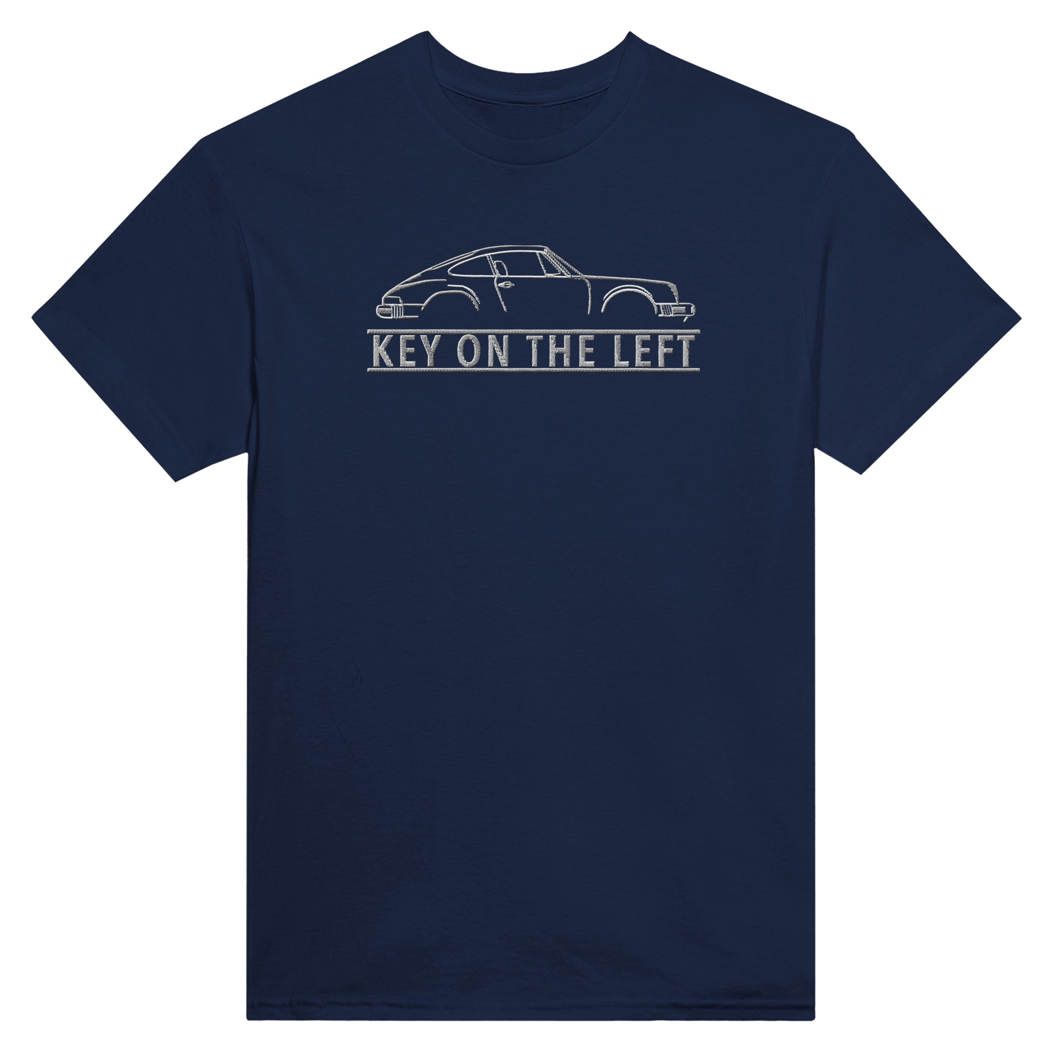 Ein sehr edles Shirt, das die wunderschöne Linie des 11ers zeigt. Bestickt mit dem G-Modell und dem Text KEY ON THE LEFT, in Anlehnung an einen zeitgenössischen Werbeslogan.