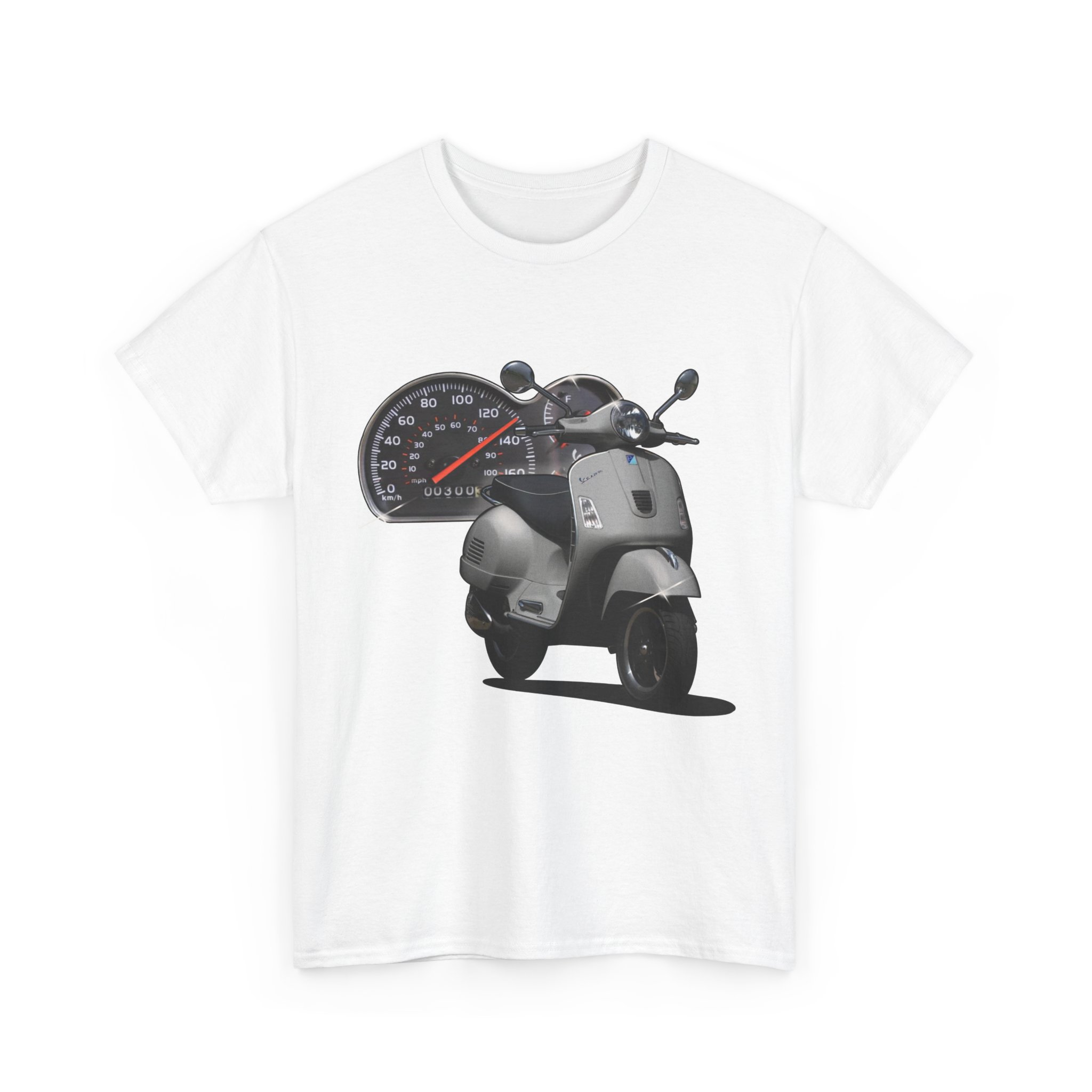 Das hochwertige T-Shirt aus der Vmax-Serie zeigt den kultigen Roller. Die Schönheit war/ist gut für eine Spitzengeschwindigkeit (Vmax) von 130km/h.