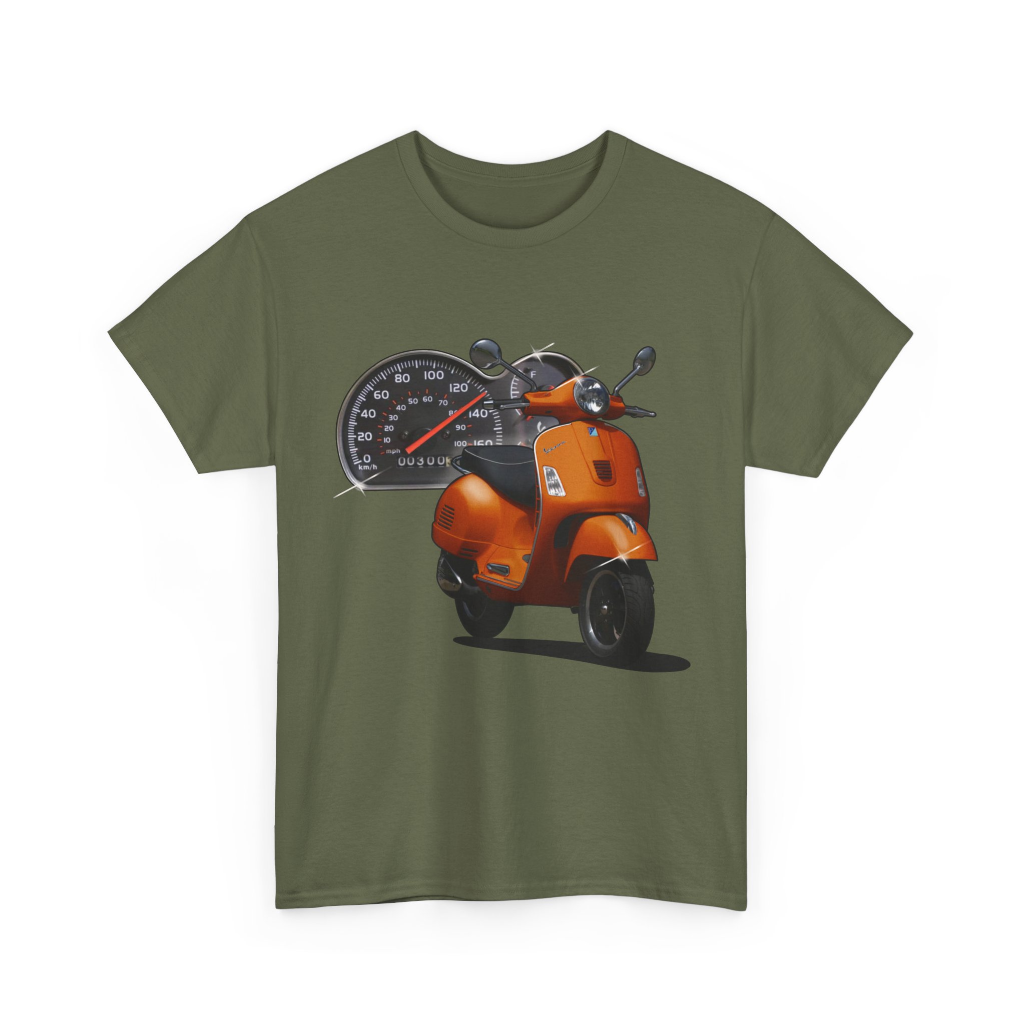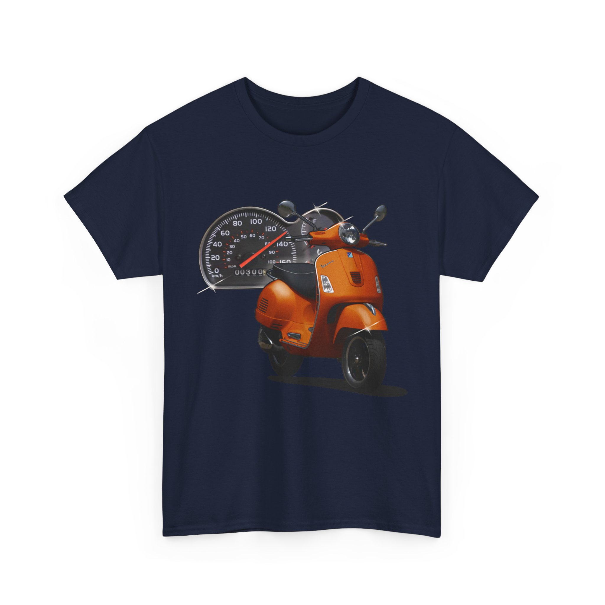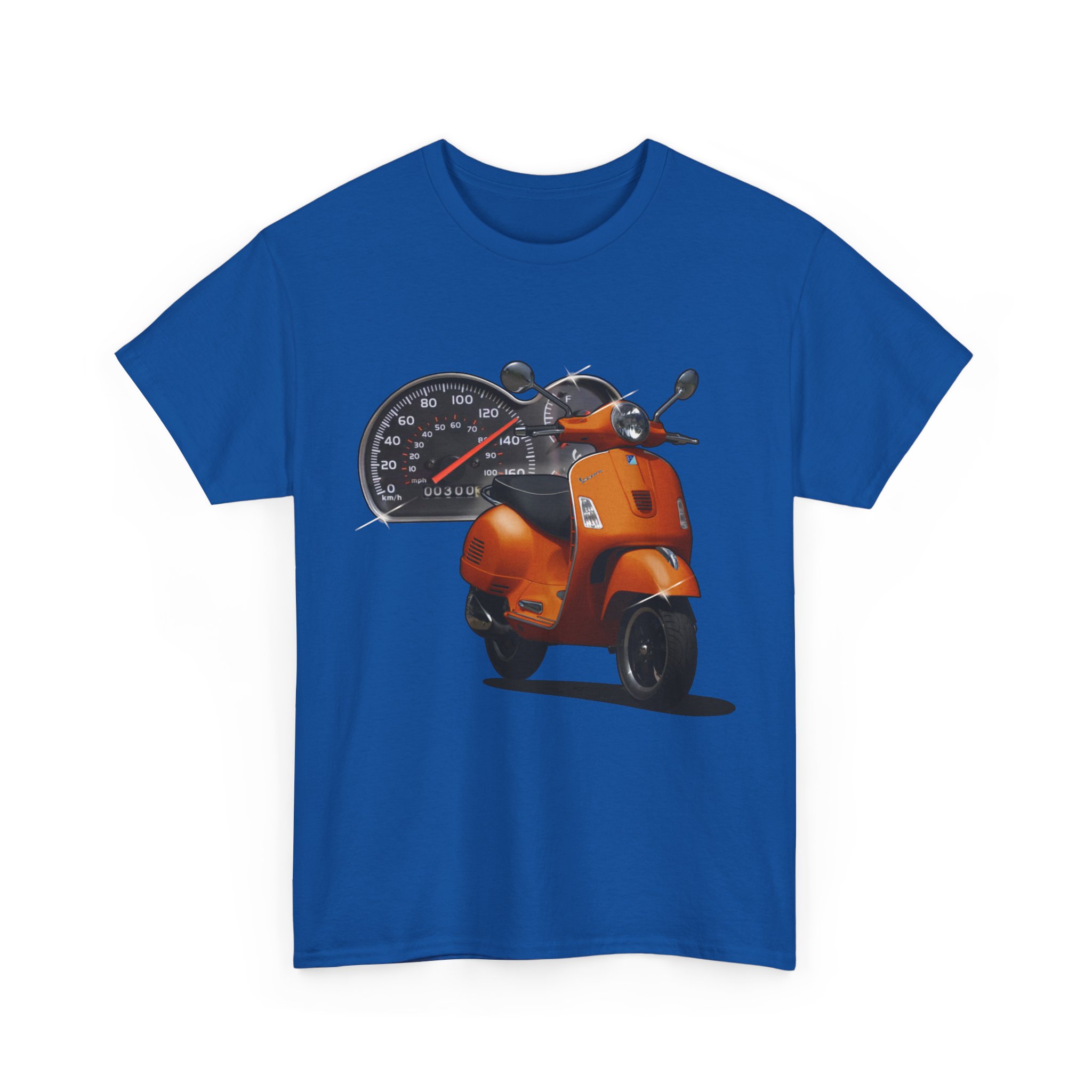 Das hochwertige T-Shirt aus der Vmax-Serie zeigt den kultigen Roller. Die Schönheit war/ist gut für eine Spitzengeschwindigkeit (Vmax) von 130km/h.