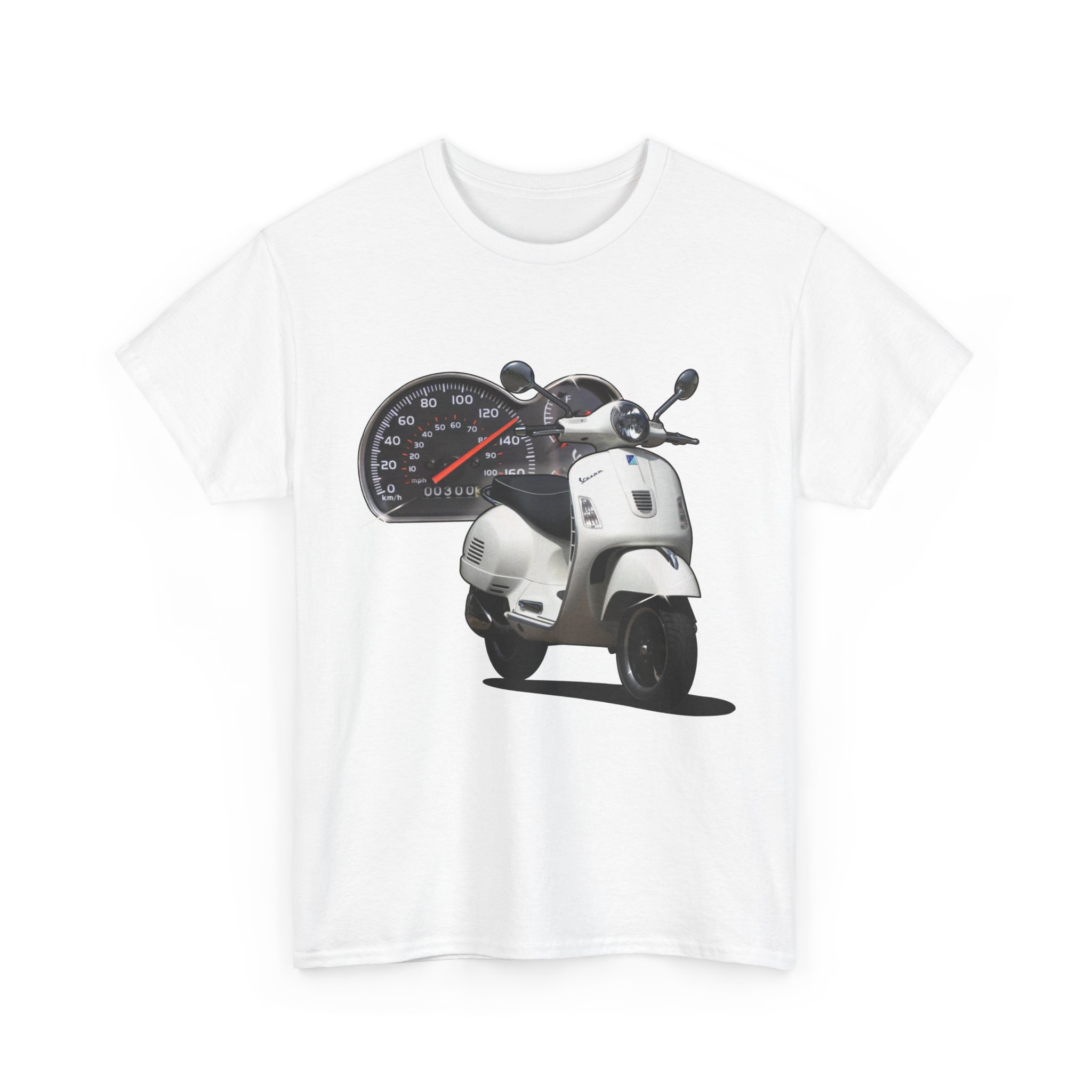 Das hochwertige T-Shirt aus der Vmax-Serie zeigt den kultigen Roller. Die Schönheit war/ist gut für eine Spitzengeschwindigkeit (Vmax) von 130km/h.