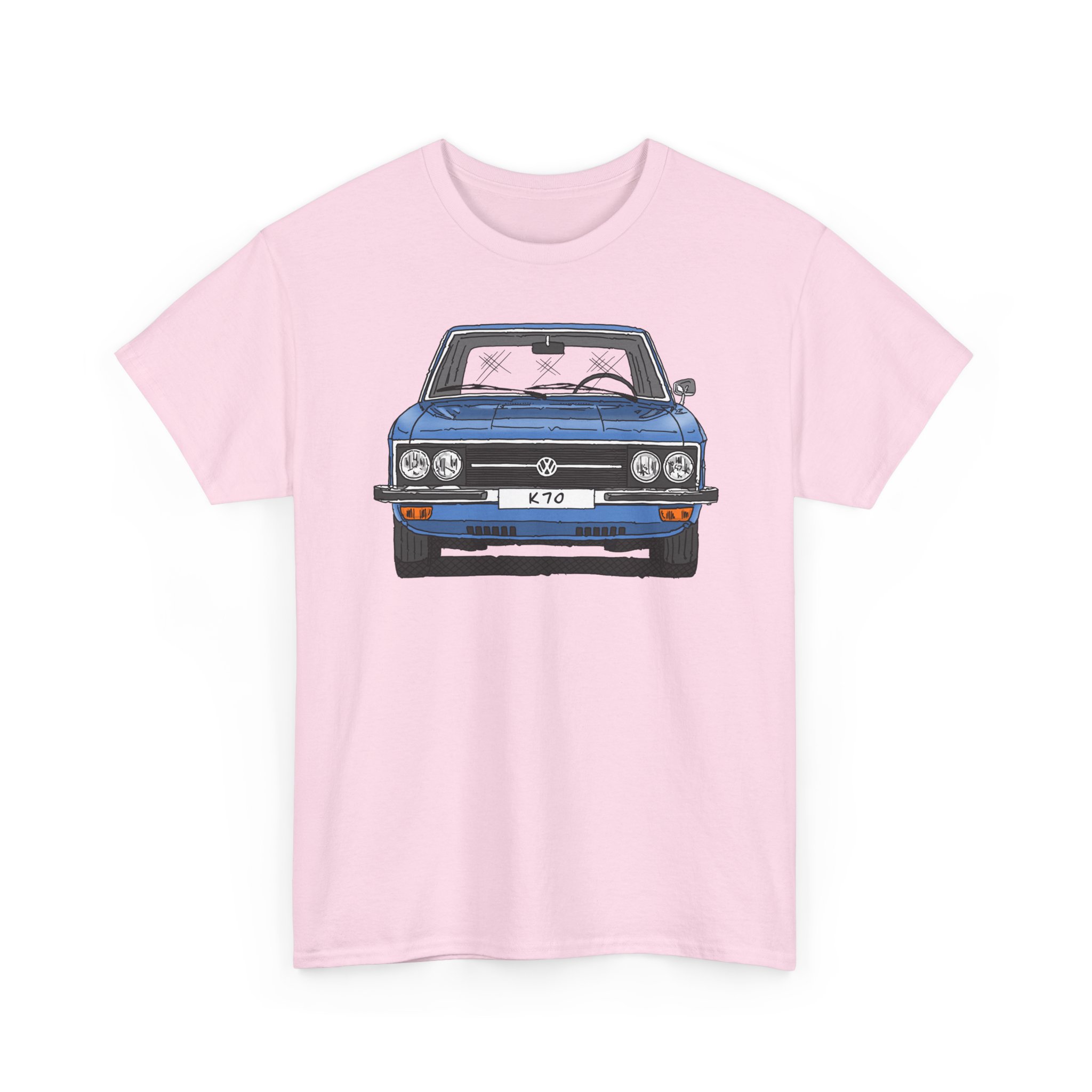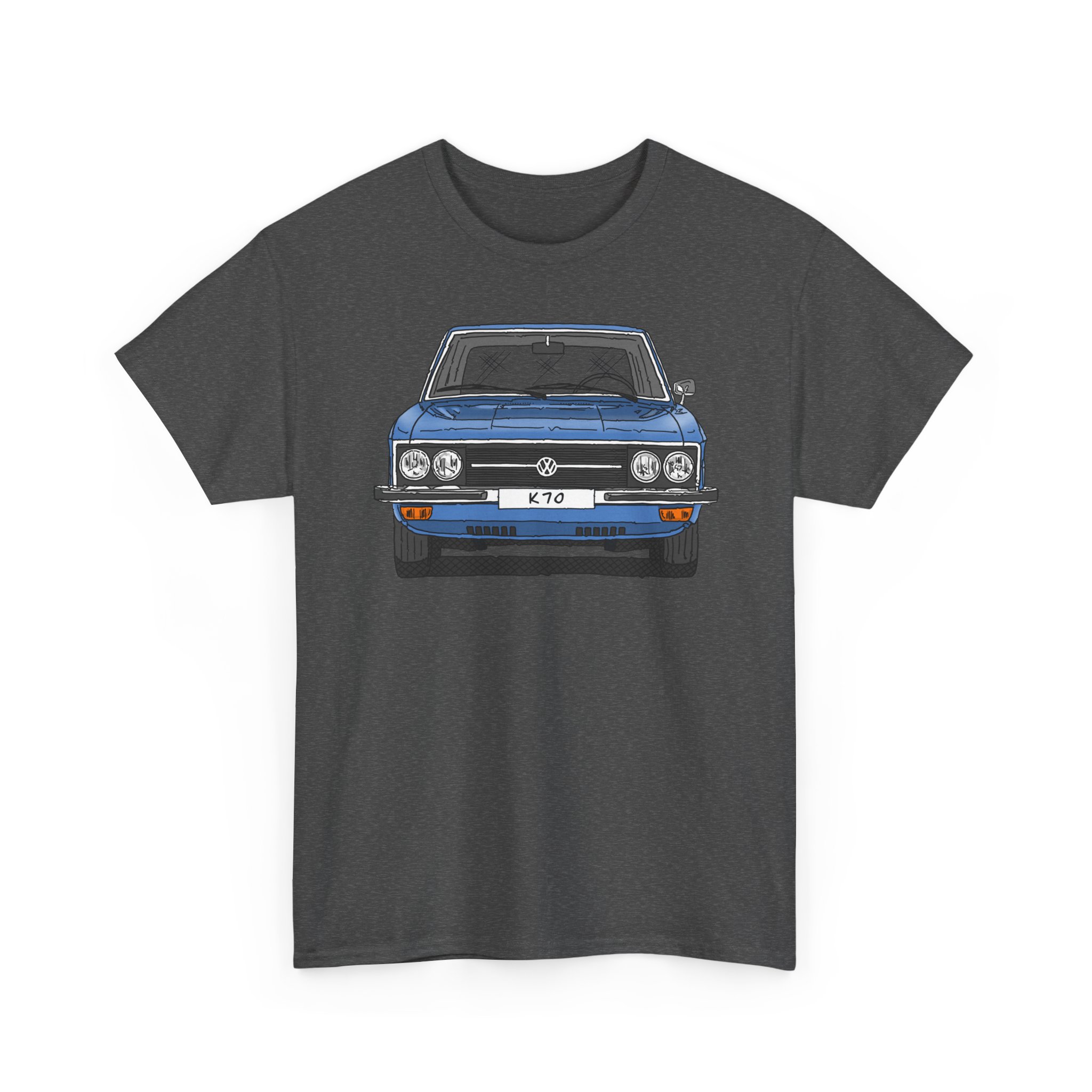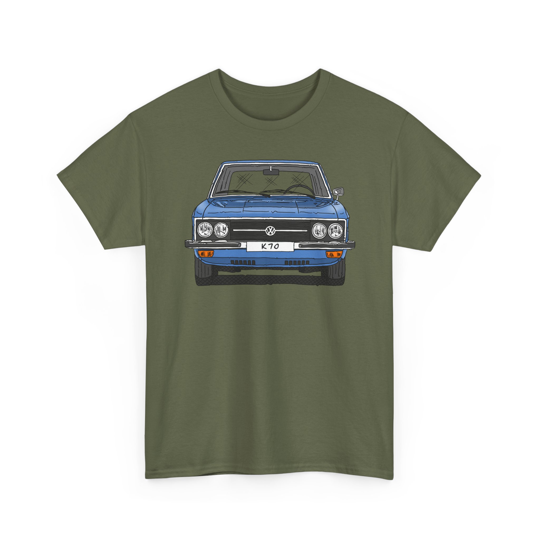 T-Shirt, VW K70, Strichzeichnung, Blau, personalisierbar mit Kennzeichen