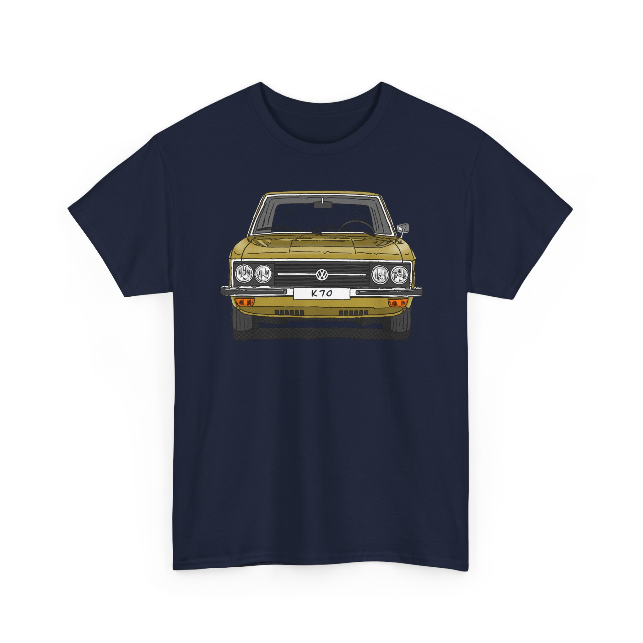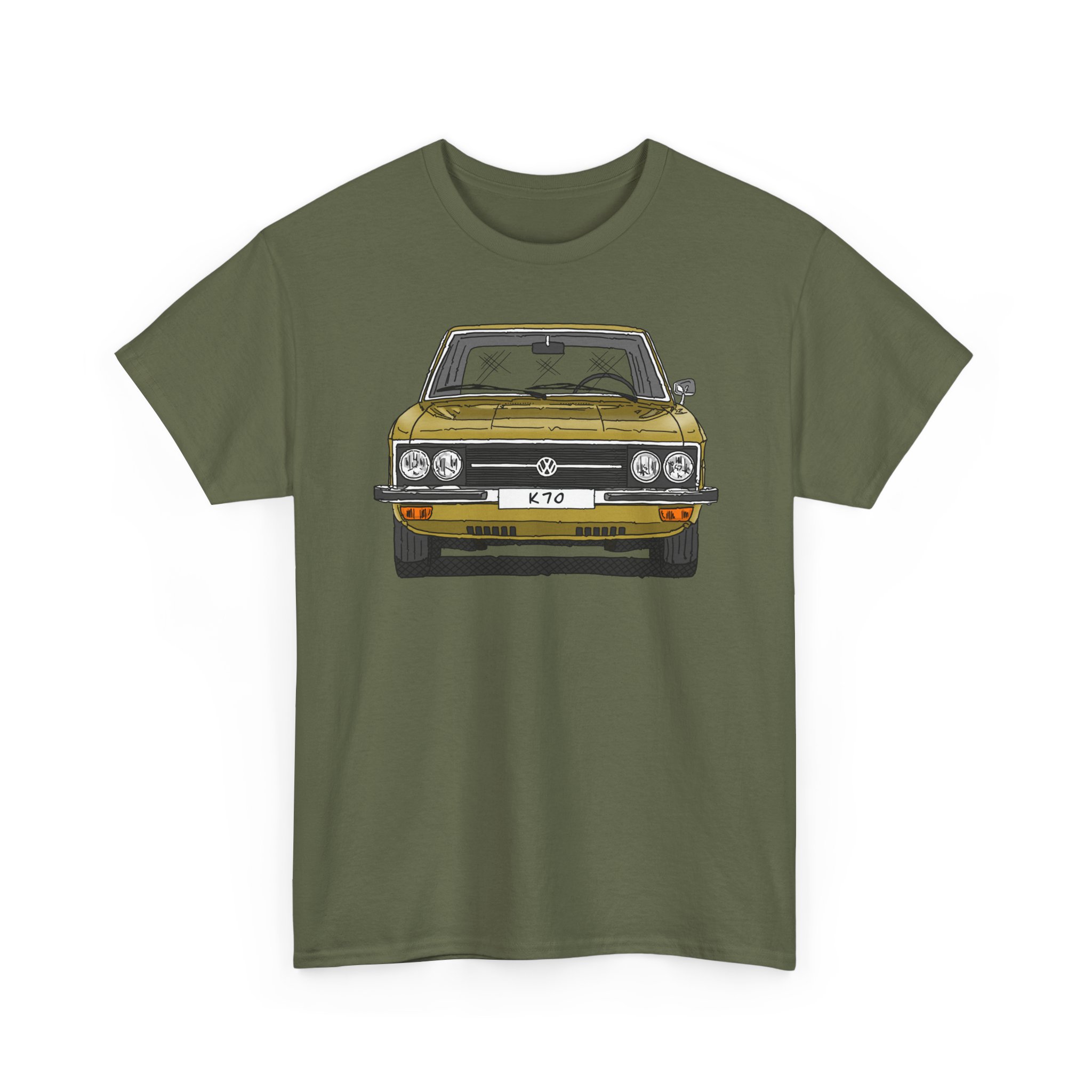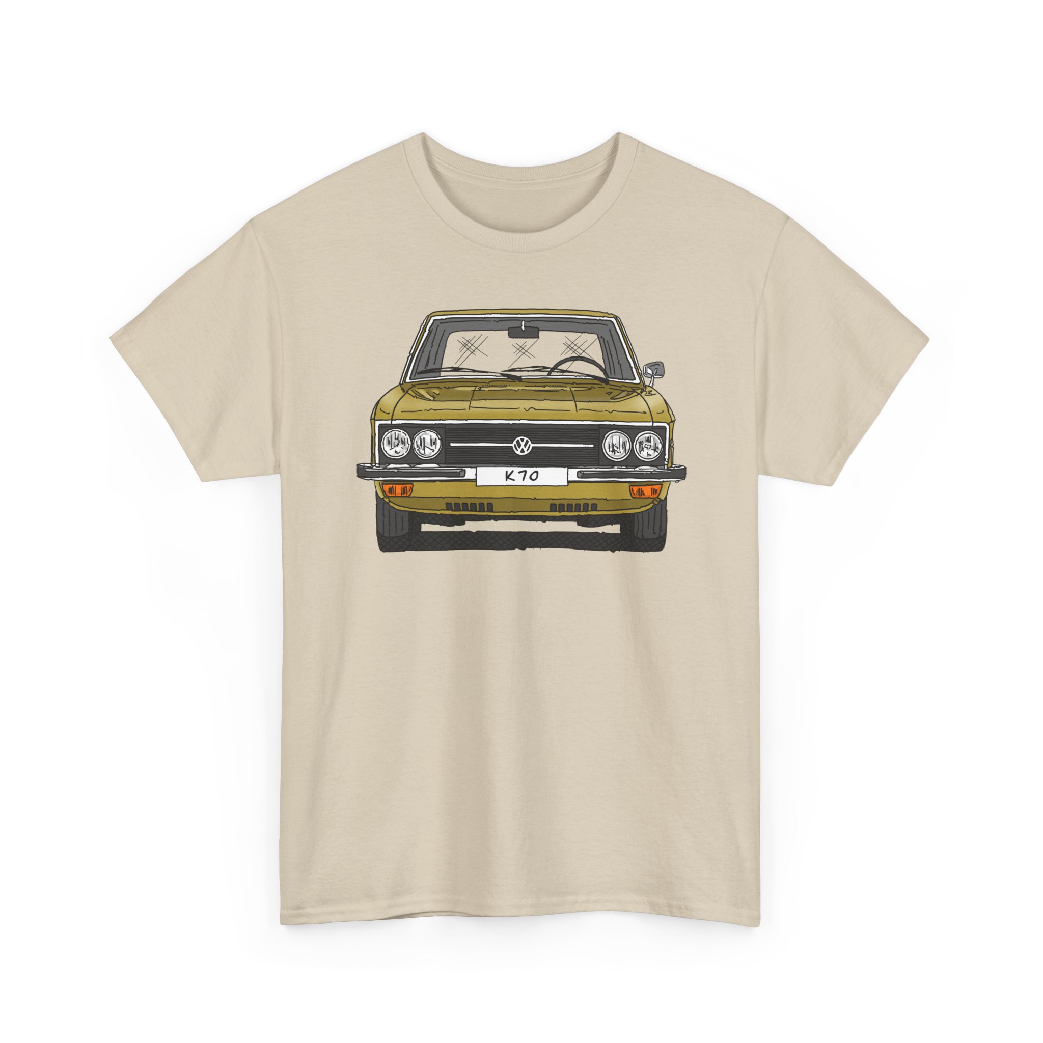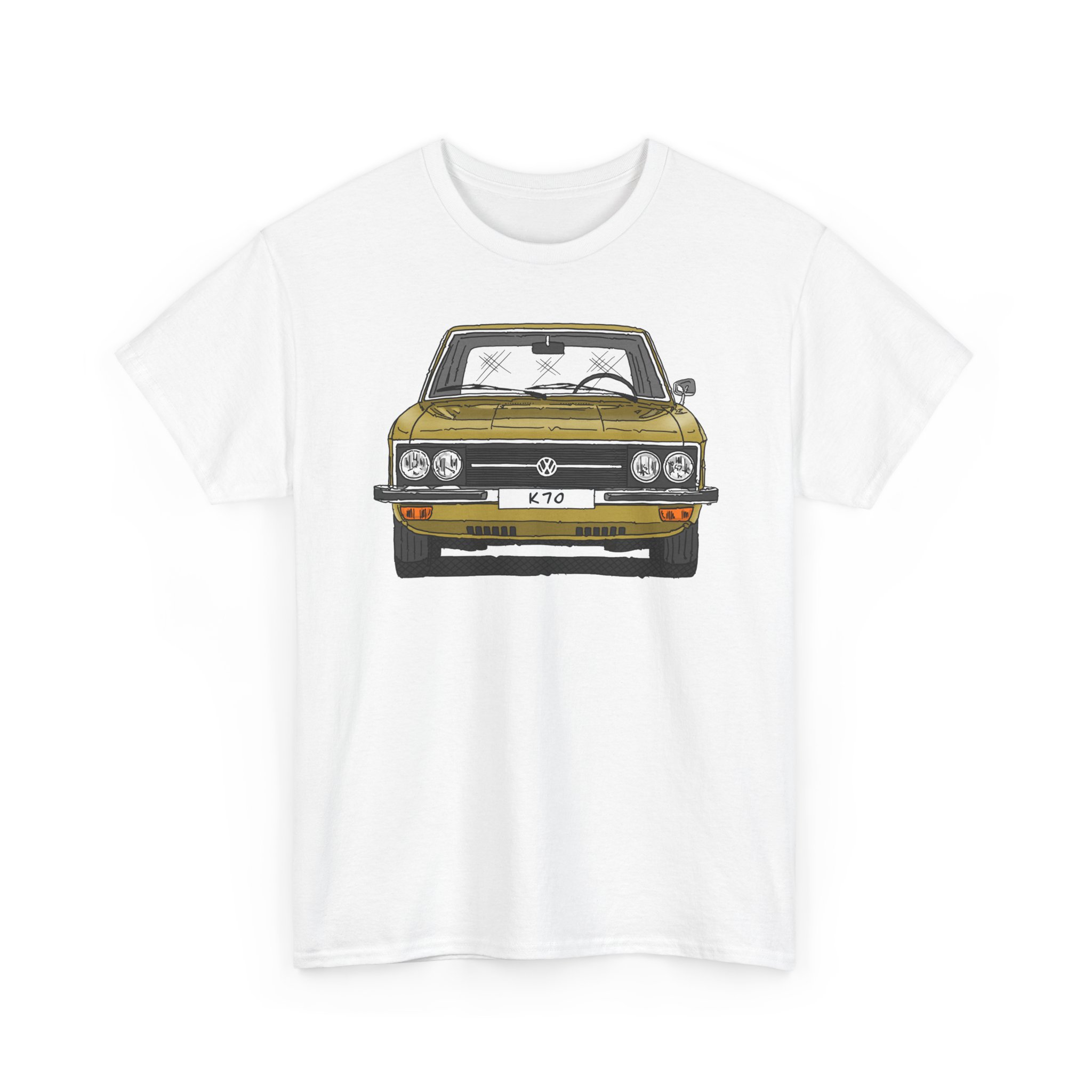 T-Shirt, VW K70, Strichzeichnung, Gold, personalisierbar mit Kennzeichen
