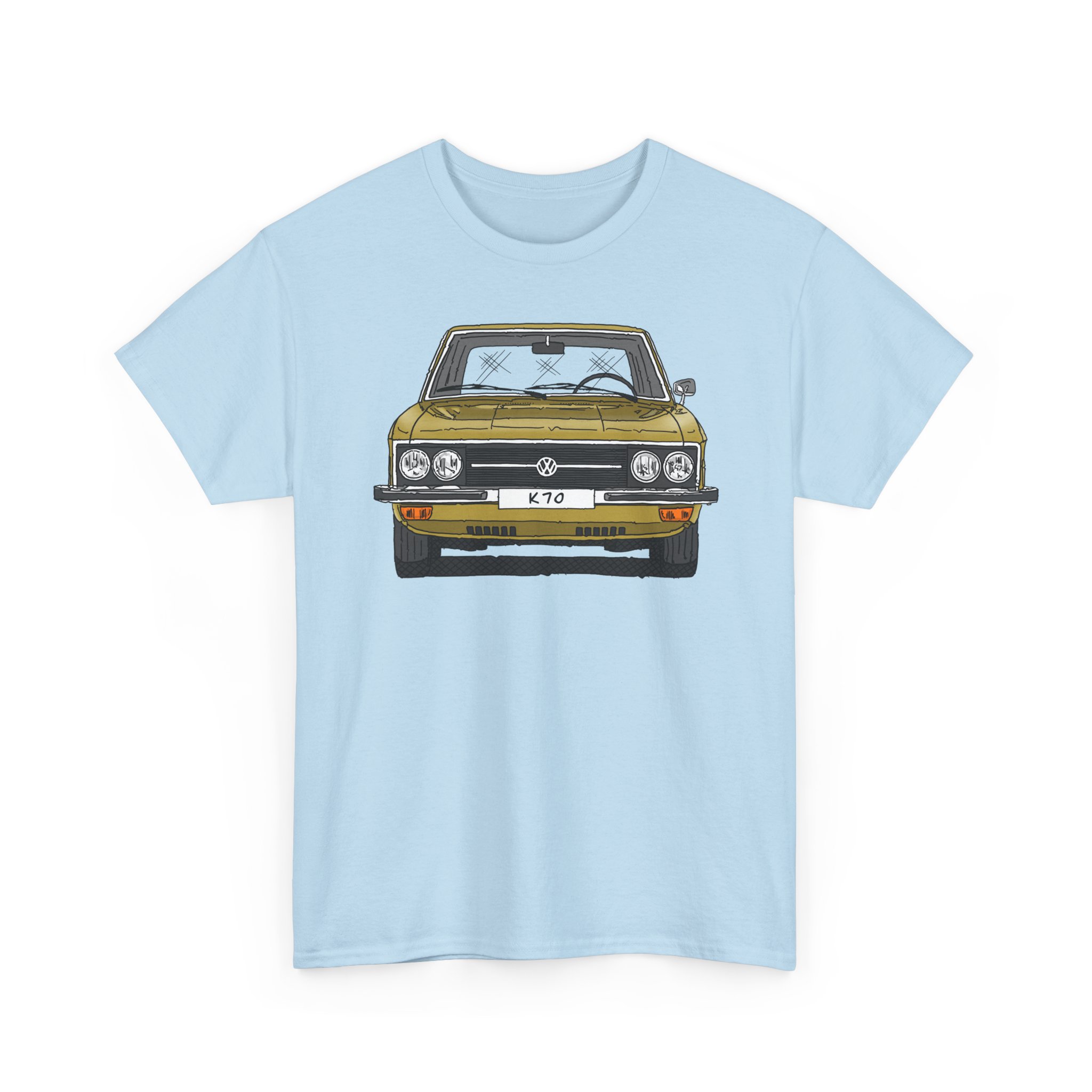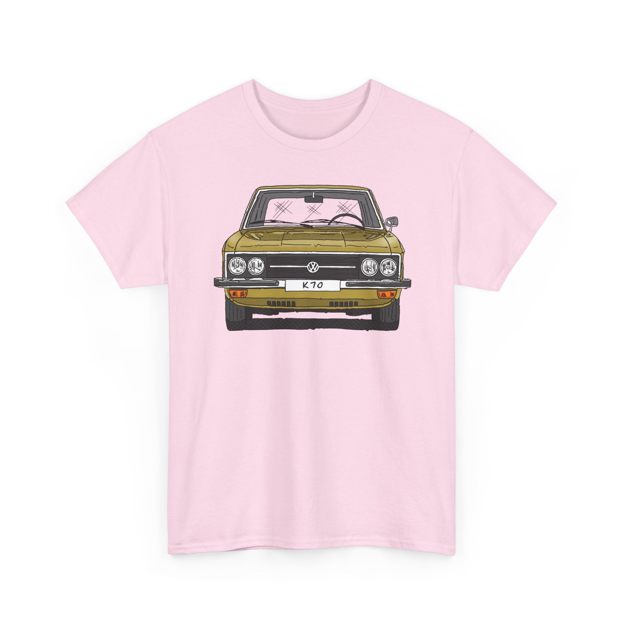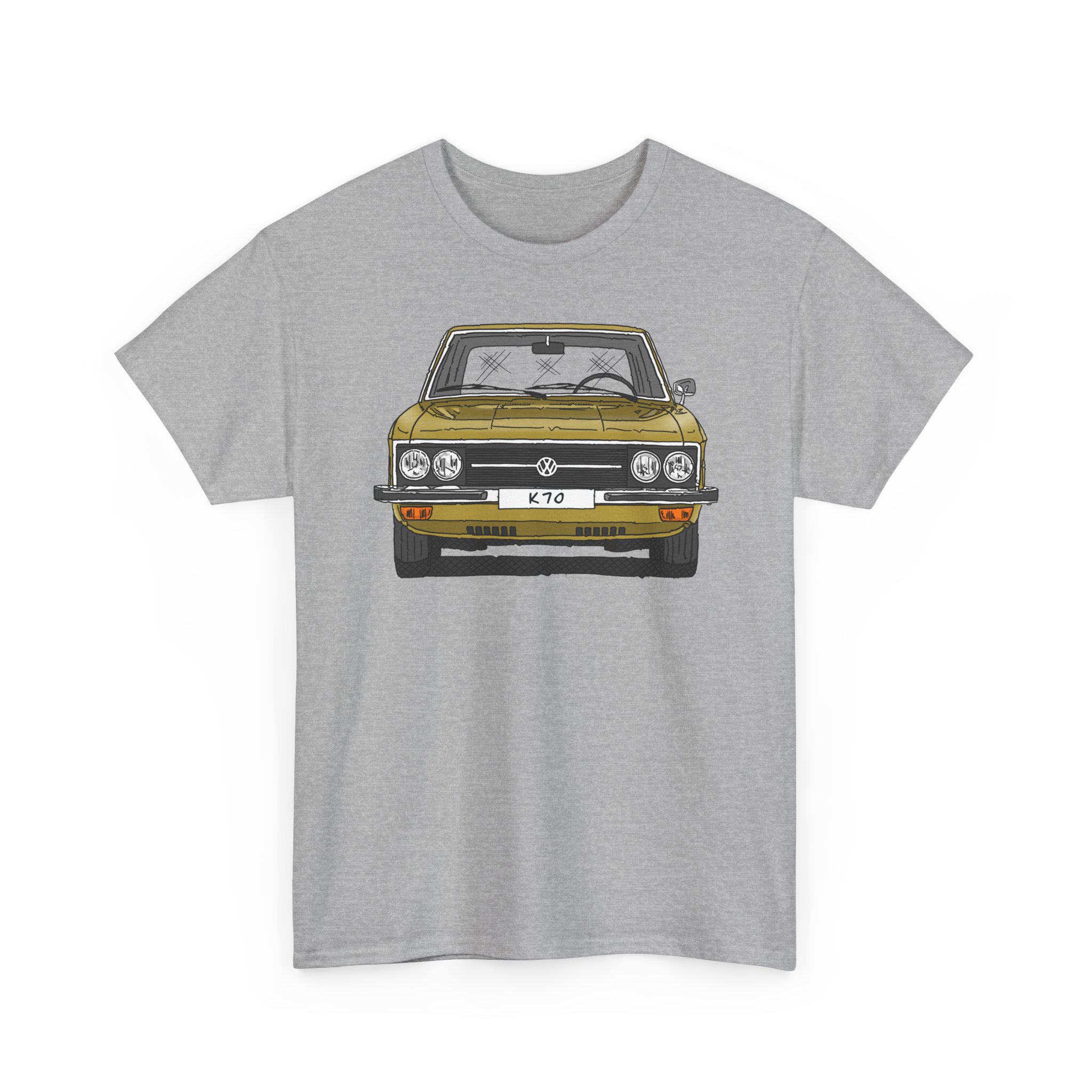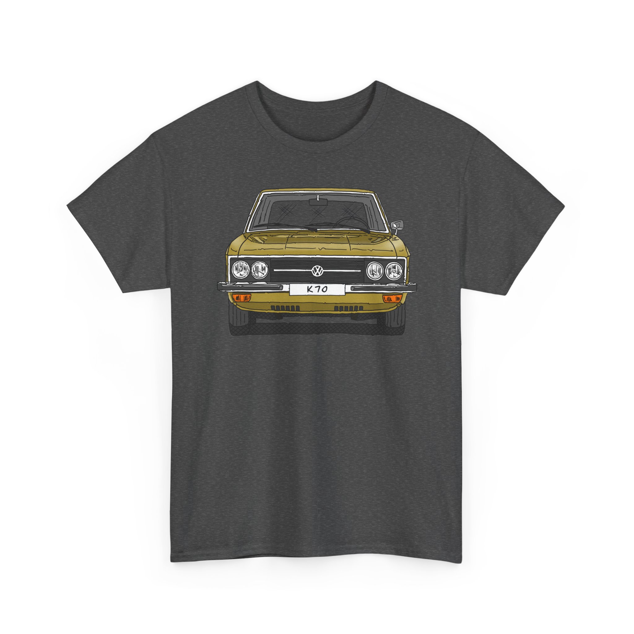 T-Shirt, VW K70, Strichzeichnung, Gold, personalisierbar mit Kennzeichen